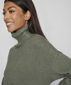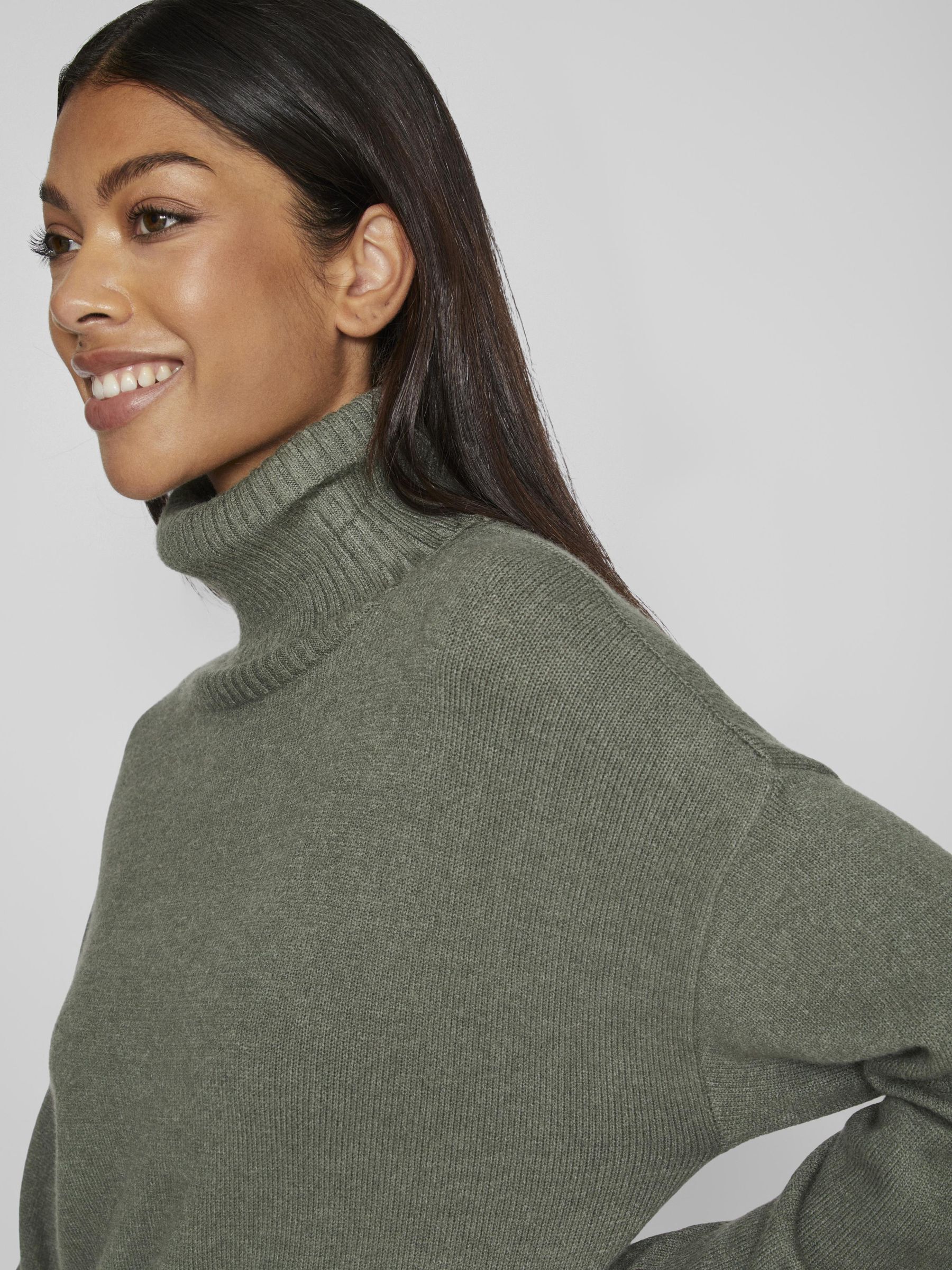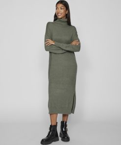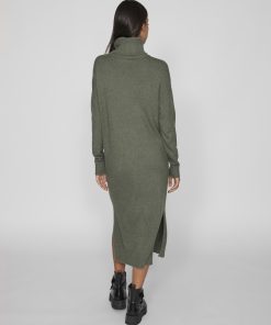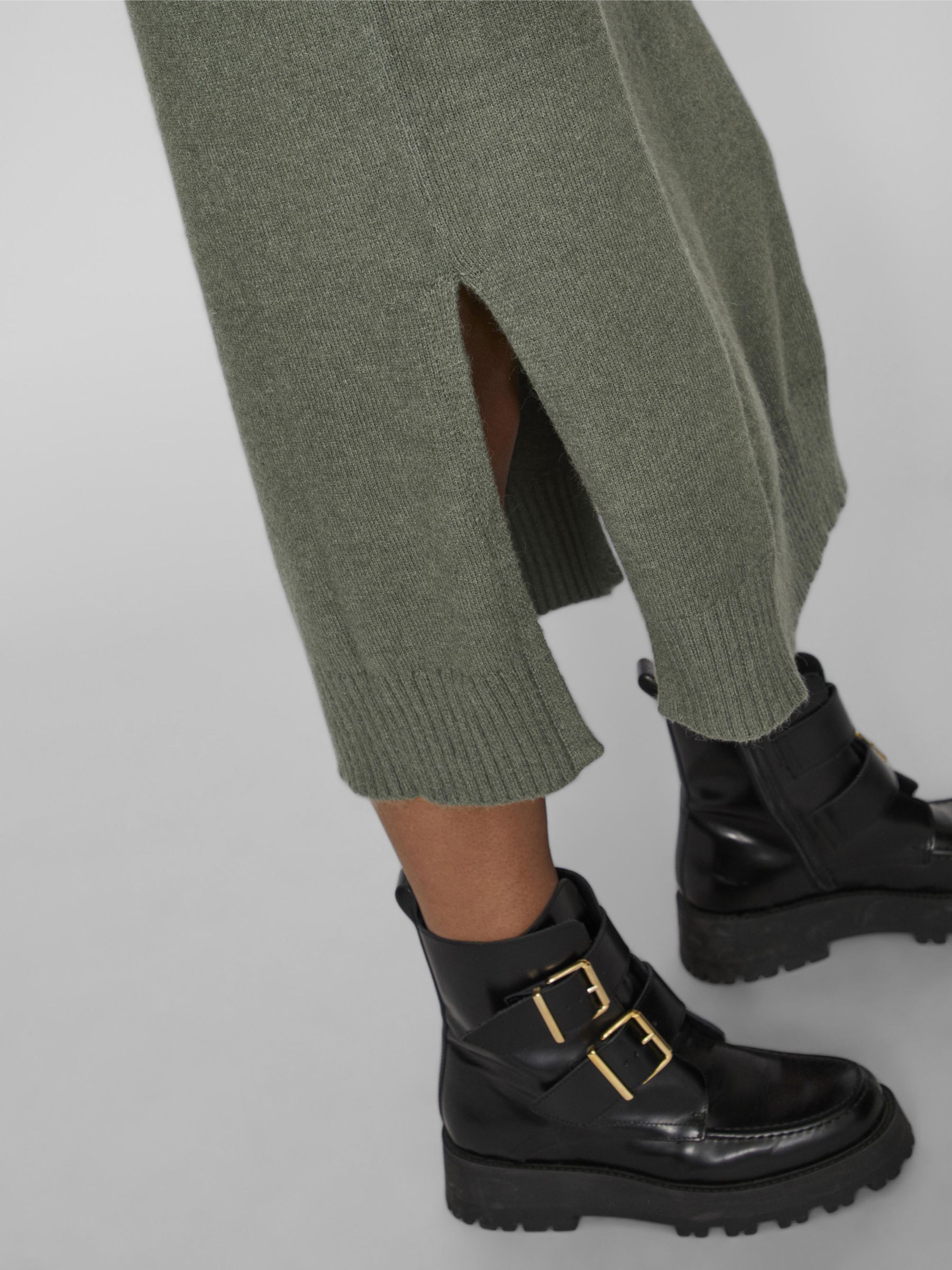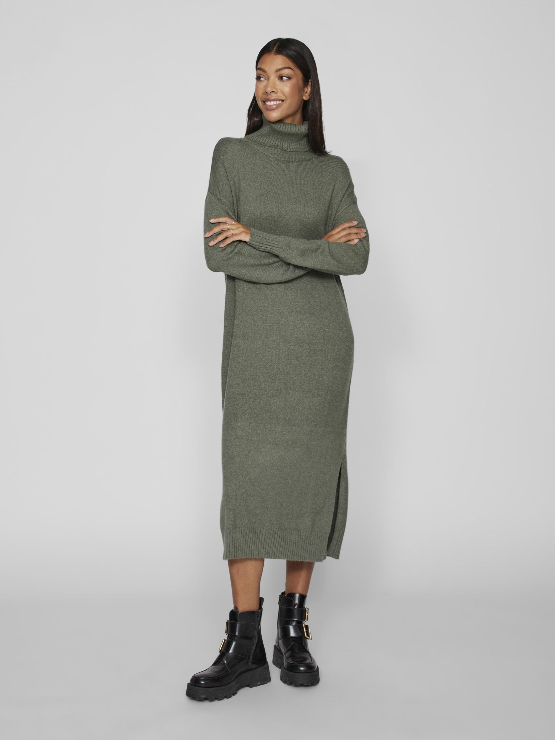 – Long-sleeved knit midi dress- Turtleneck- Dropped shoulders- Side slit details- Rib edges- Length: 115 cm in size M- Sleeve length: 73 cm in size M- Our model is 178 cm tall and wears size M