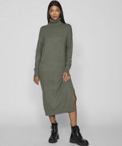 – Long-sleeved knit midi dress- Turtleneck- Dropped shoulders- Side slit details- Rib edges- Length: 115 cm in size M- Sleeve length: 73 cm in size M- Our model is 178 cm tall and wears size M