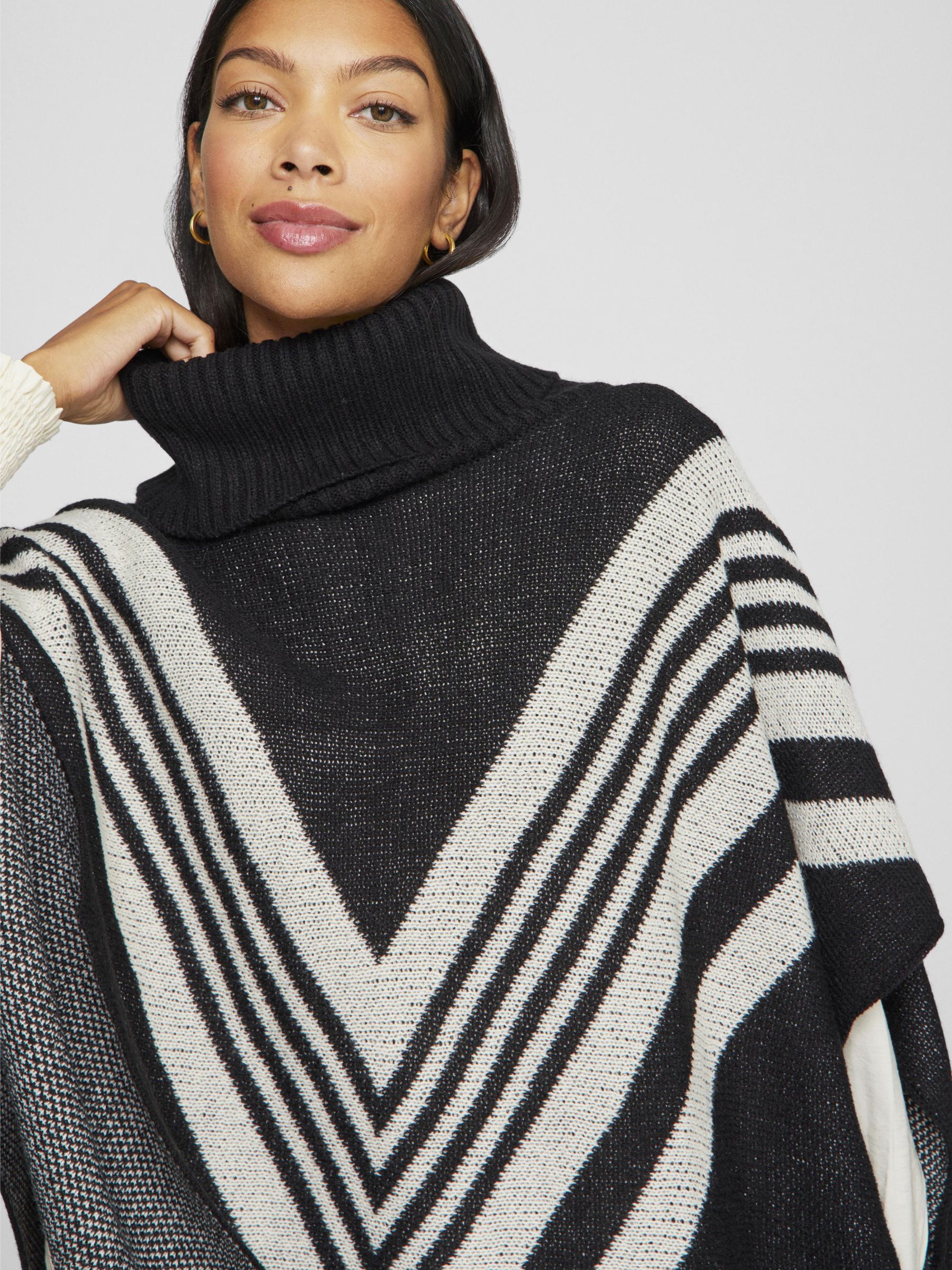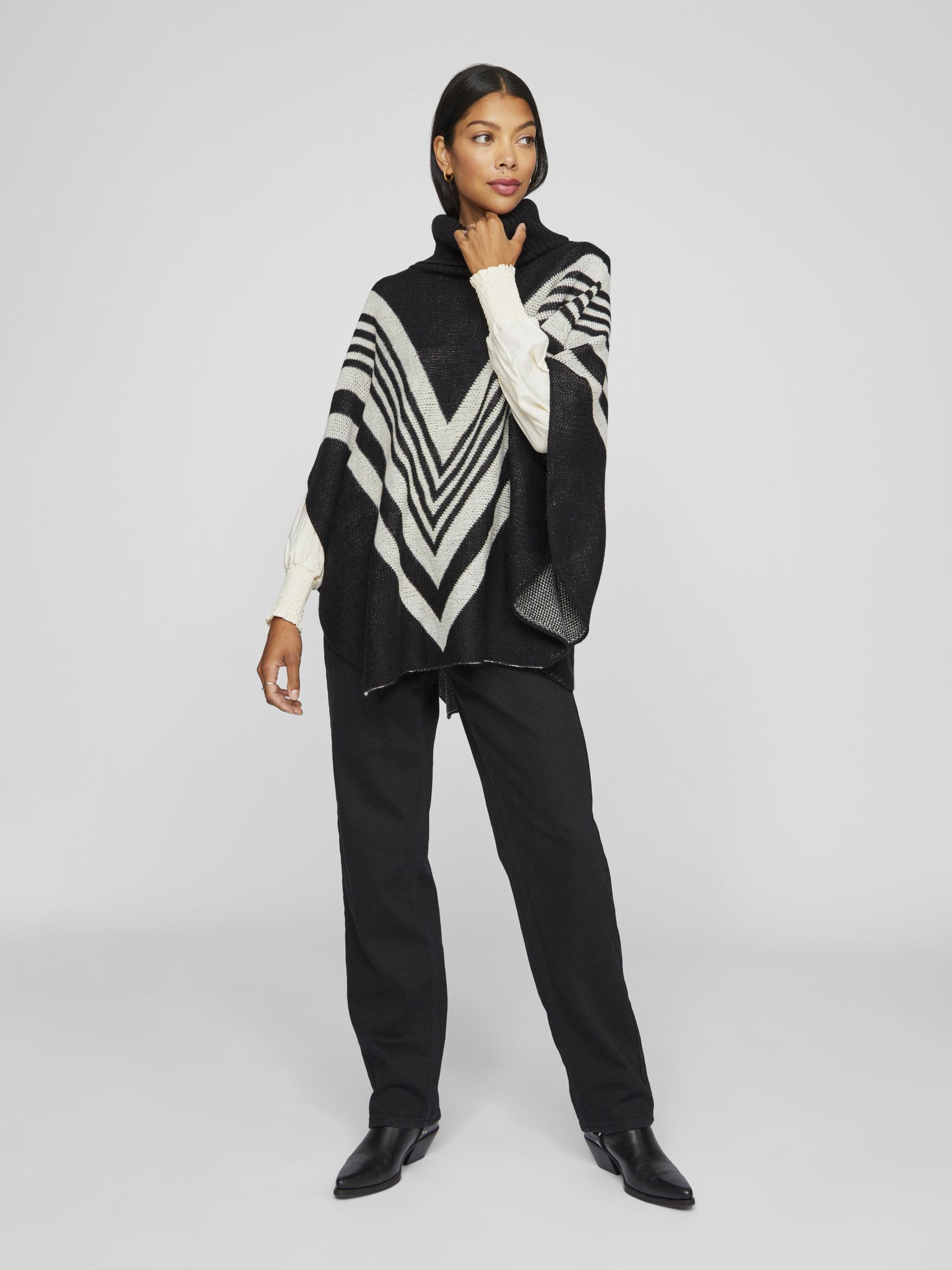 • Knitted poncho• Turtleneck• Soft knitThe main material in this product contains a minimum of 50% recycled polyester. Recycled polyester saves natural resources and reduces the amount of waste.