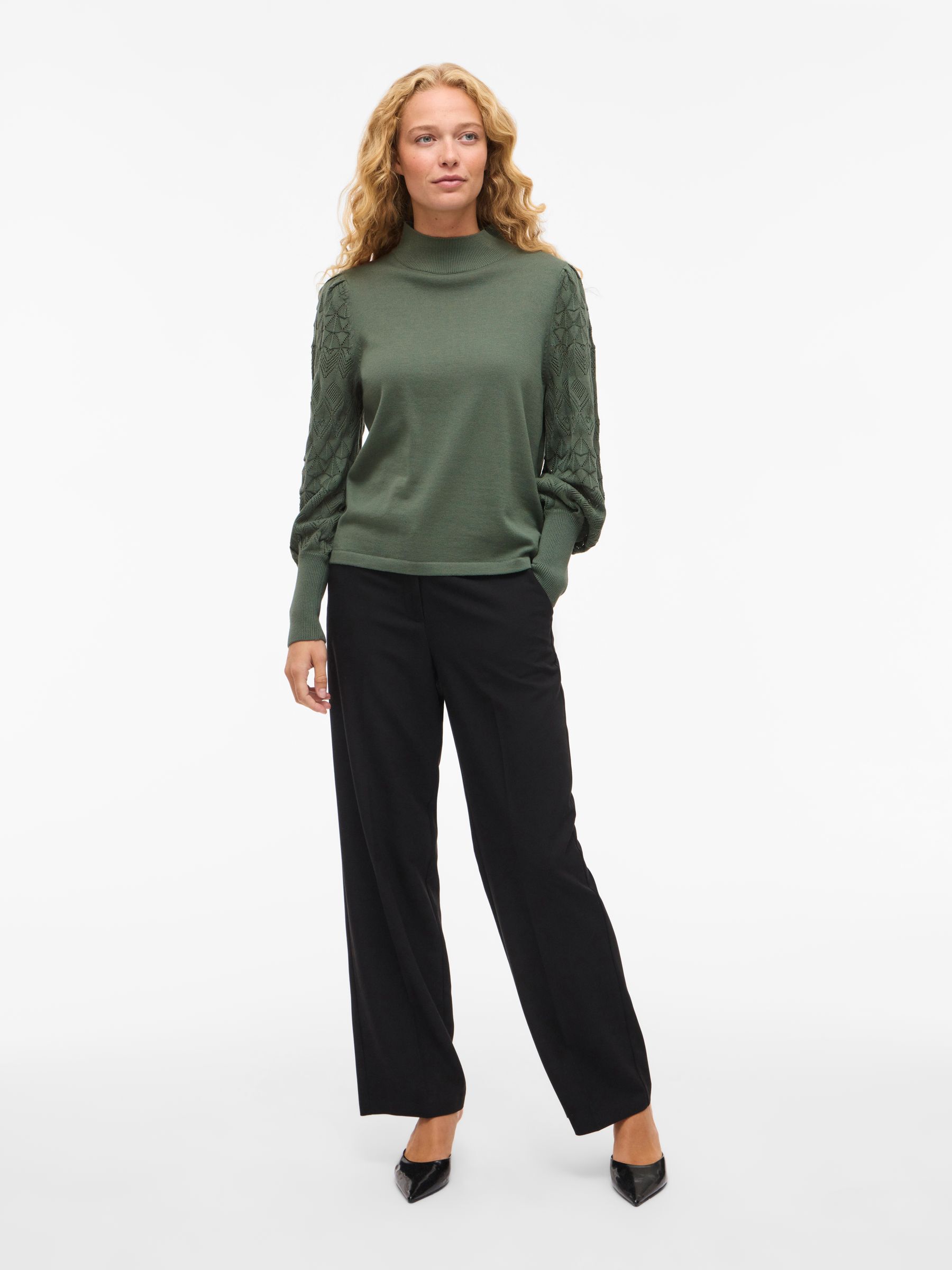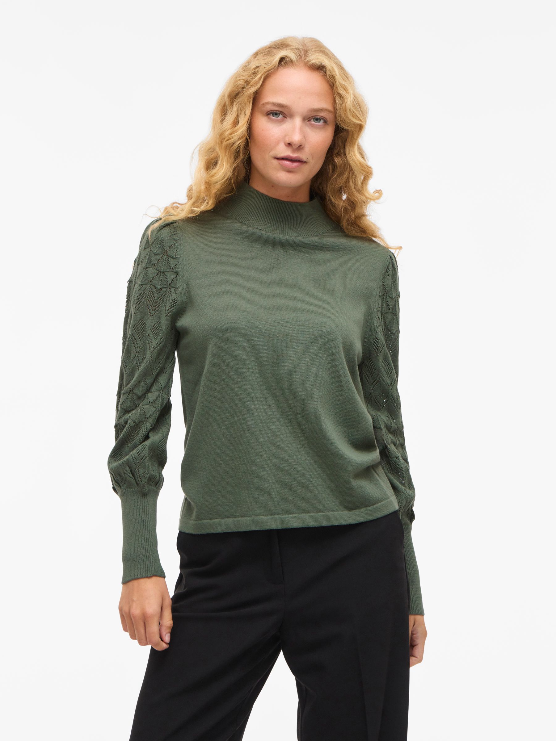 • Pointelle knitted pullover• High neck• Ribbed trim• Regular fit• Length: 60 cm in size M• Sleeve length: 66 cm in size M