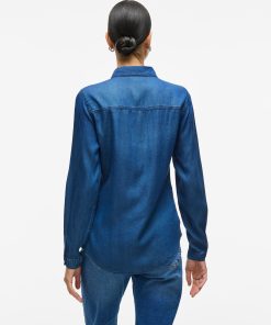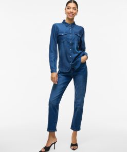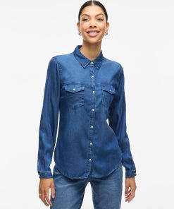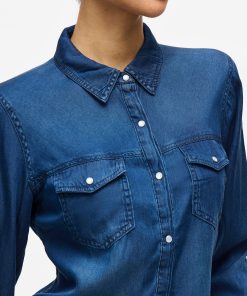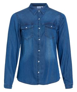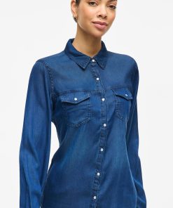 VILA Women’s Vibista Pocket Denim Shirt | Dark Blue Denim