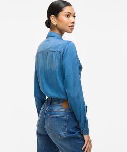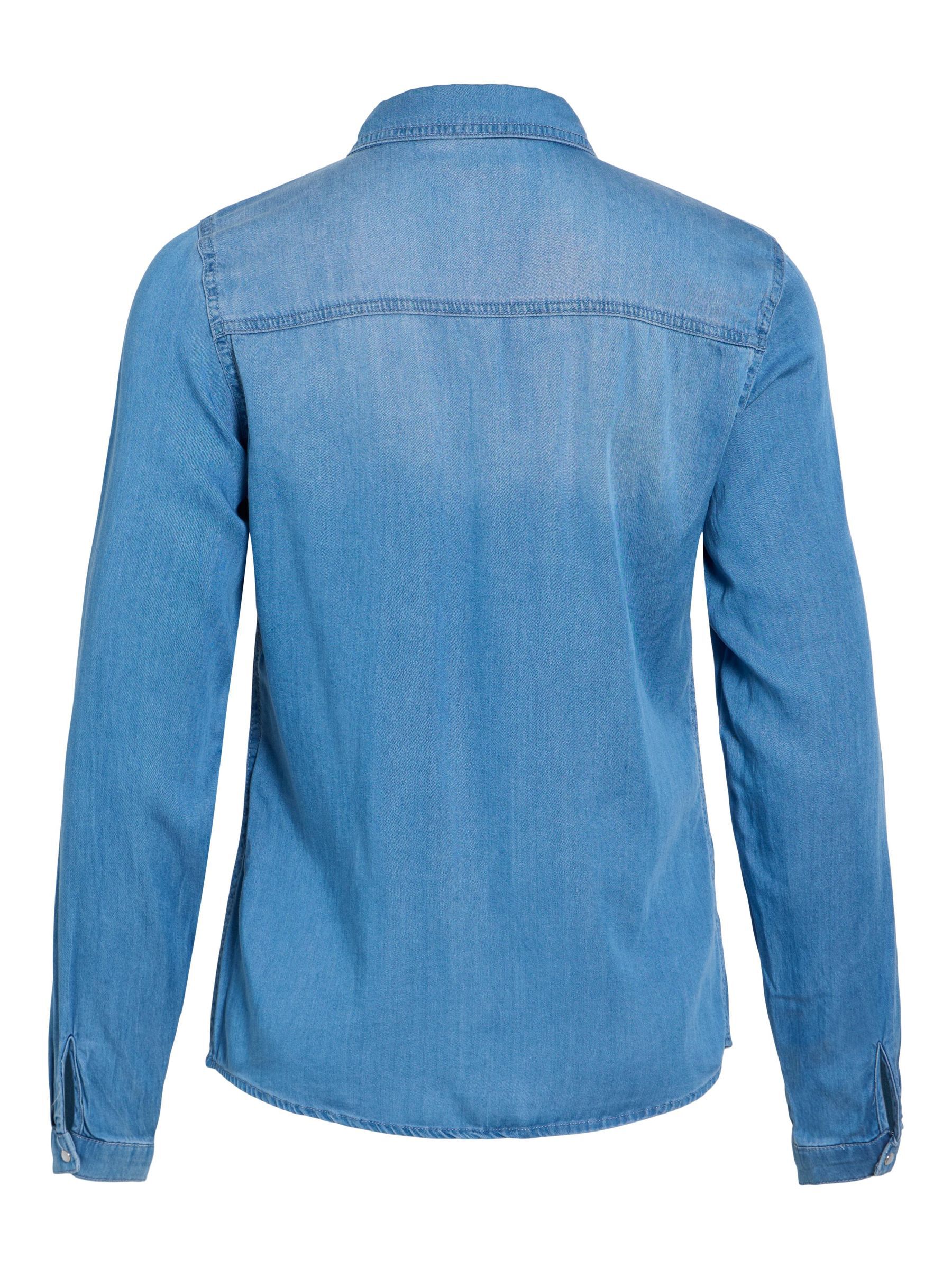 – Style name: VIBISTA- Denim shirt- Press buttons- Pockets at the chest- Long sleeves with button at the bottom- Length: 70 cm in size M- Sleeve length: 63 cm in size M- Our model is 179 cm tall and wears size M