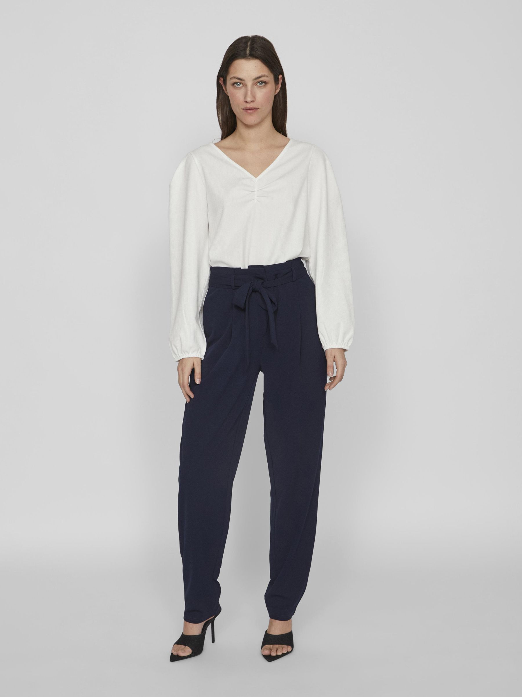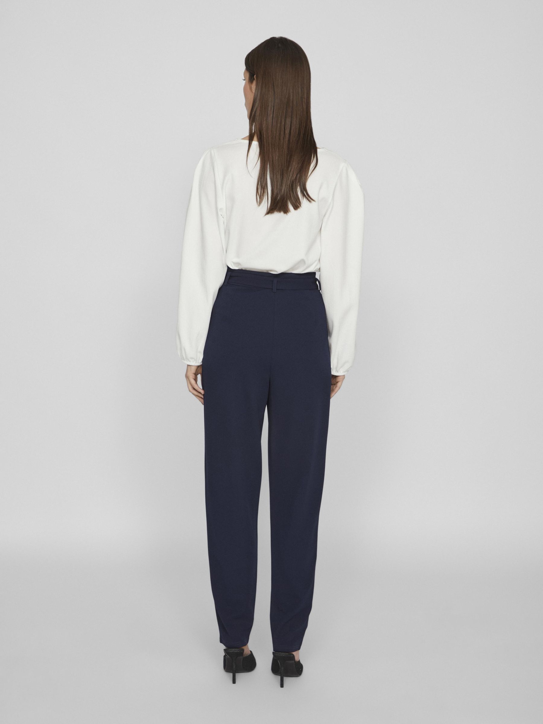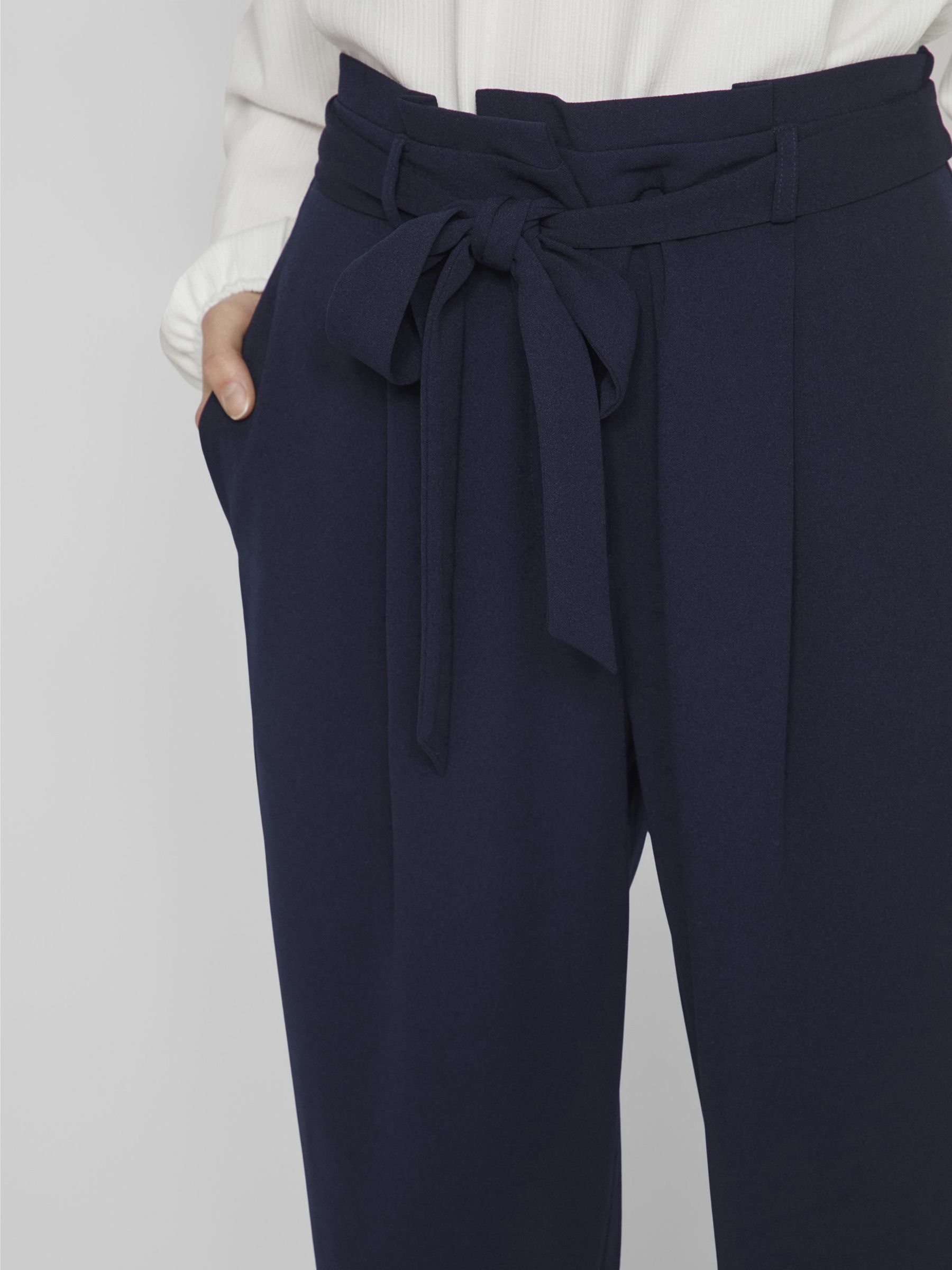 • Belted pants• High waist• Zip-up fly with hook and button fastening• Side pockets• Straight fit• Inseam: 78 cm in size M• Frontrise: 32 cm in size M