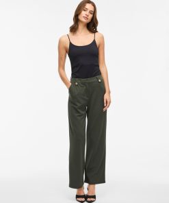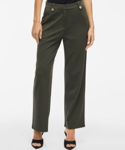• High waisted trousers• Zip-up fly with hook and button fastening• Side pockets• Decorative back pockets• Stretch-back waist• Belt loops• Wide-leg fit• Inseam: 78 cm in size M• Frontrise: 30 cm in size M