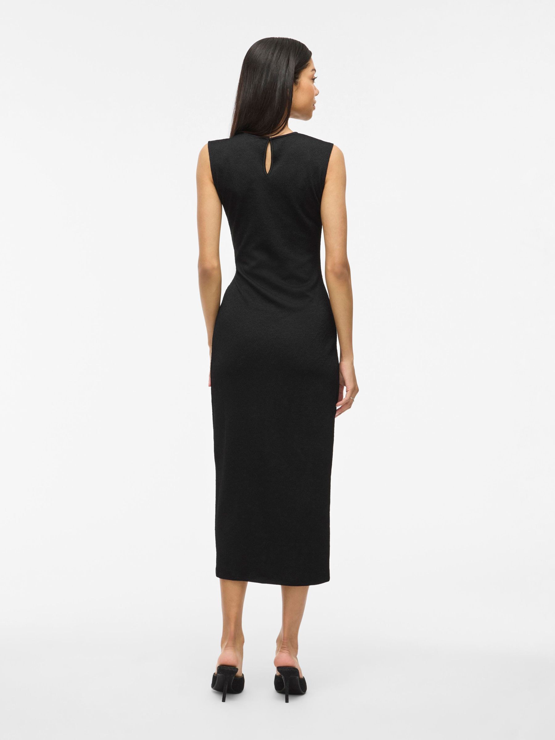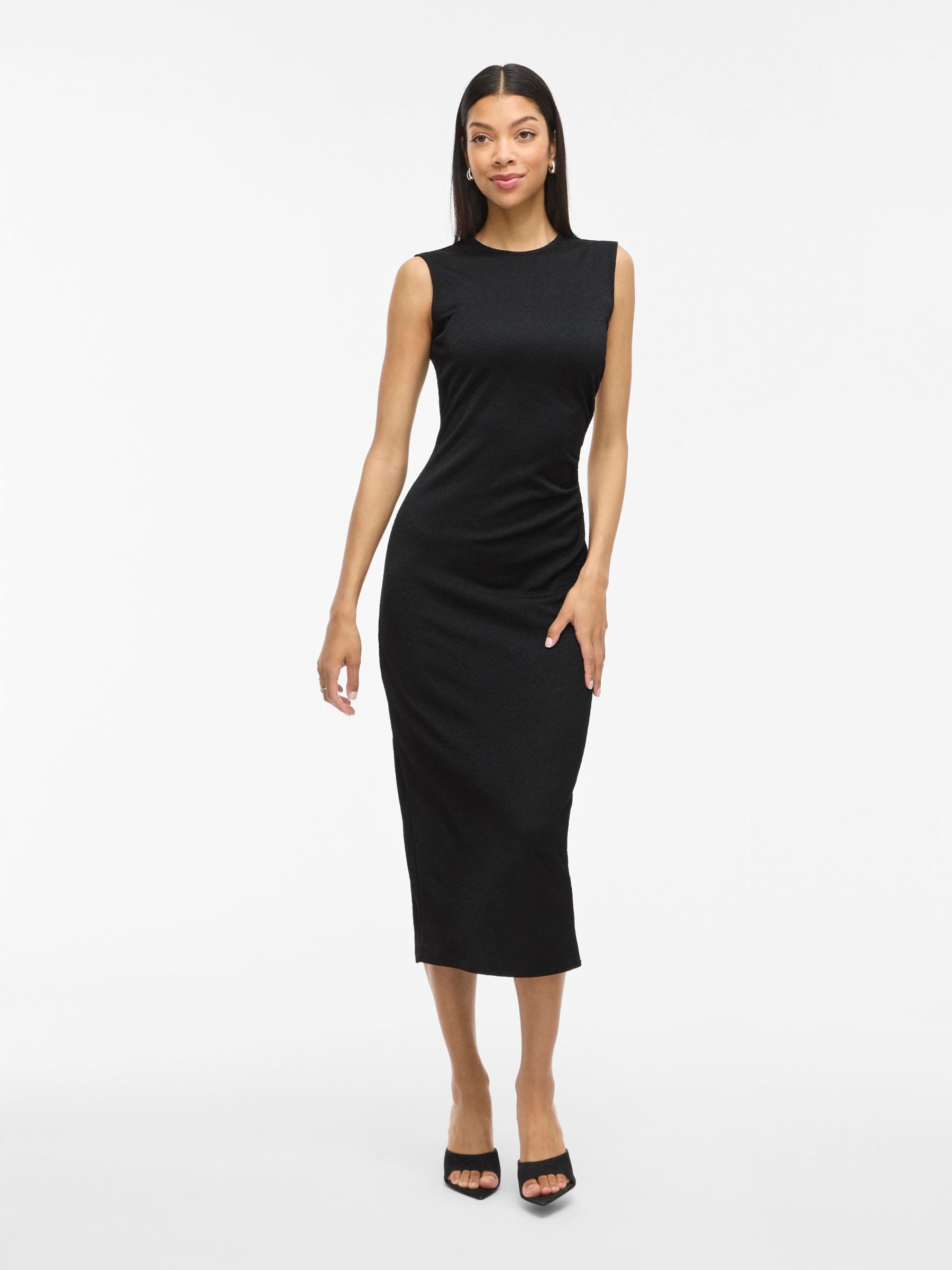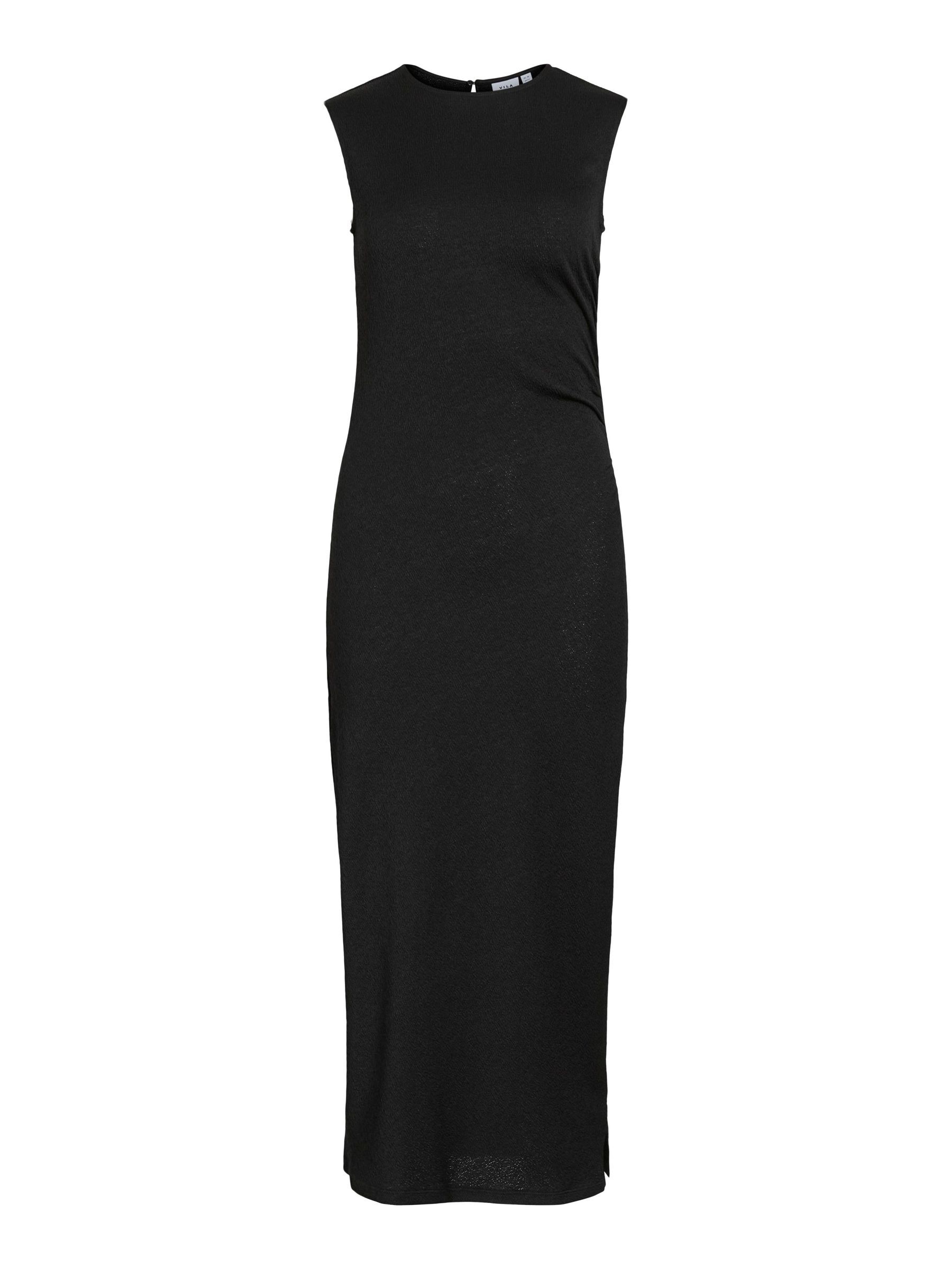 • Sleeveless midi dress• Round neckline with button-keyhole fastening• Ruched side• Textured fabric• Regular fit• Length: 130 cm in size M