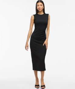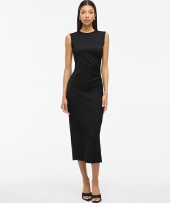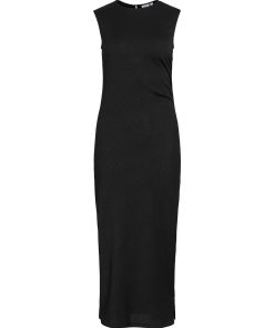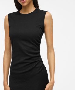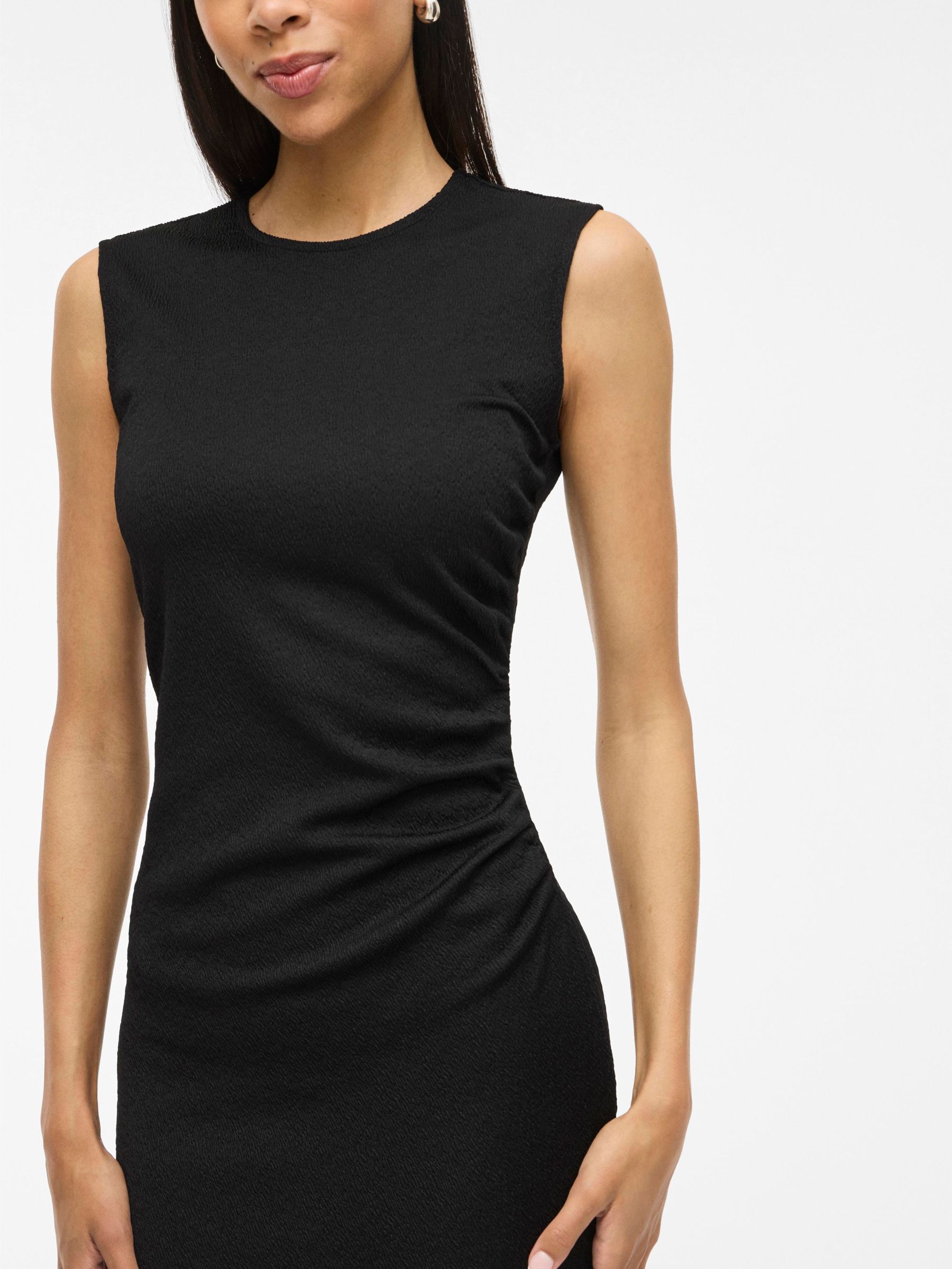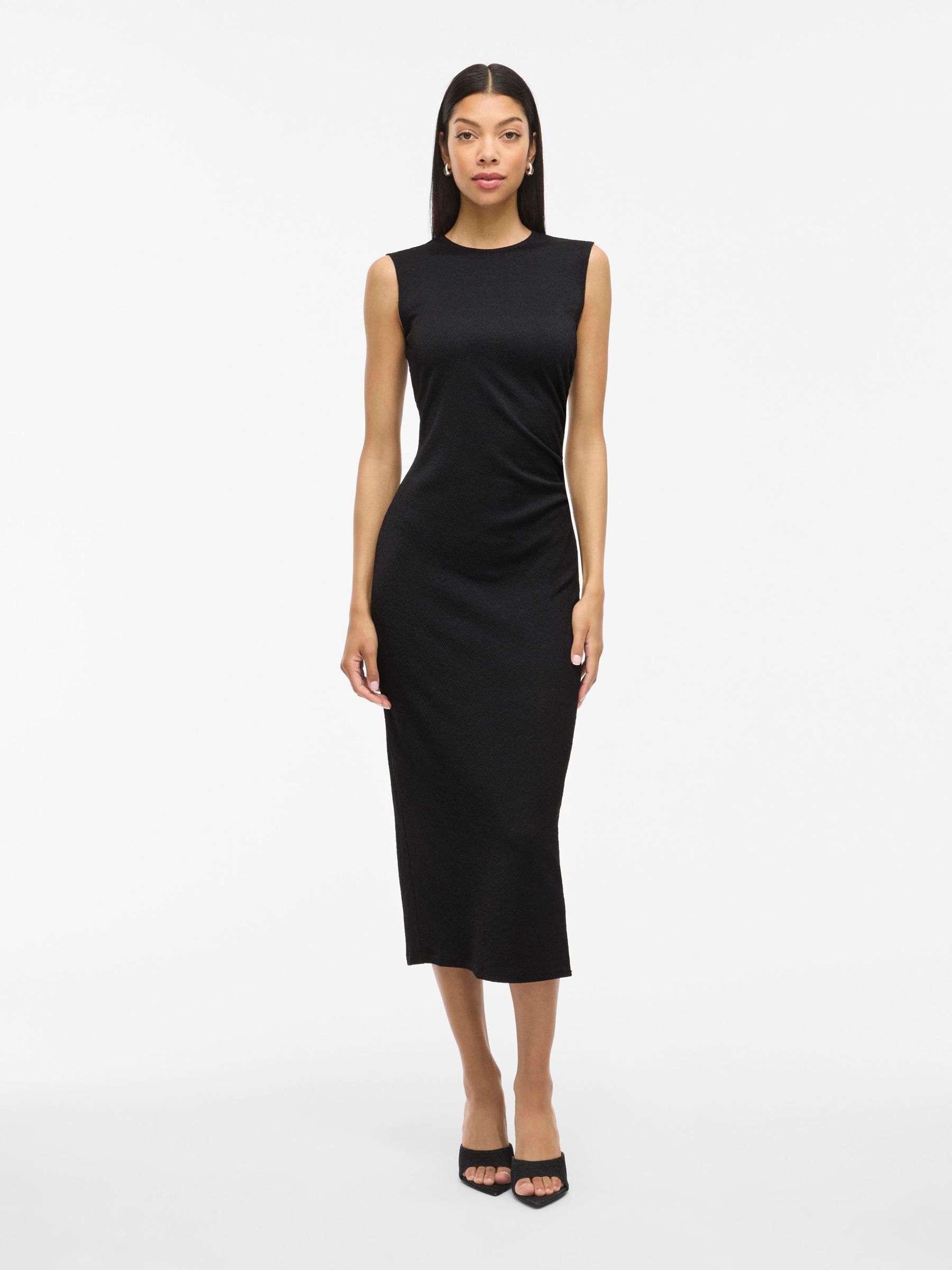 • Sleeveless midi dress• Round neckline with button-keyhole fastening• Ruched side• Textured fabric• Regular fit• Length: 130 cm in size M