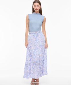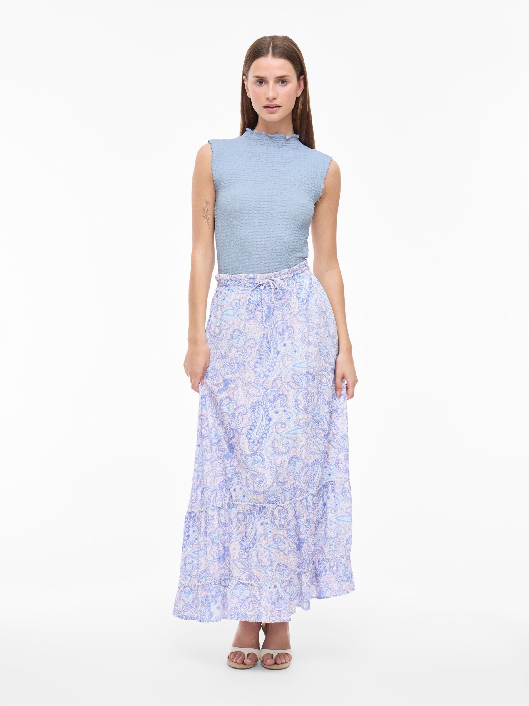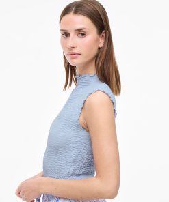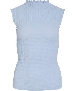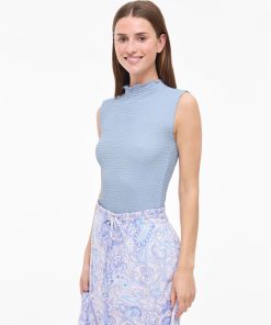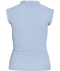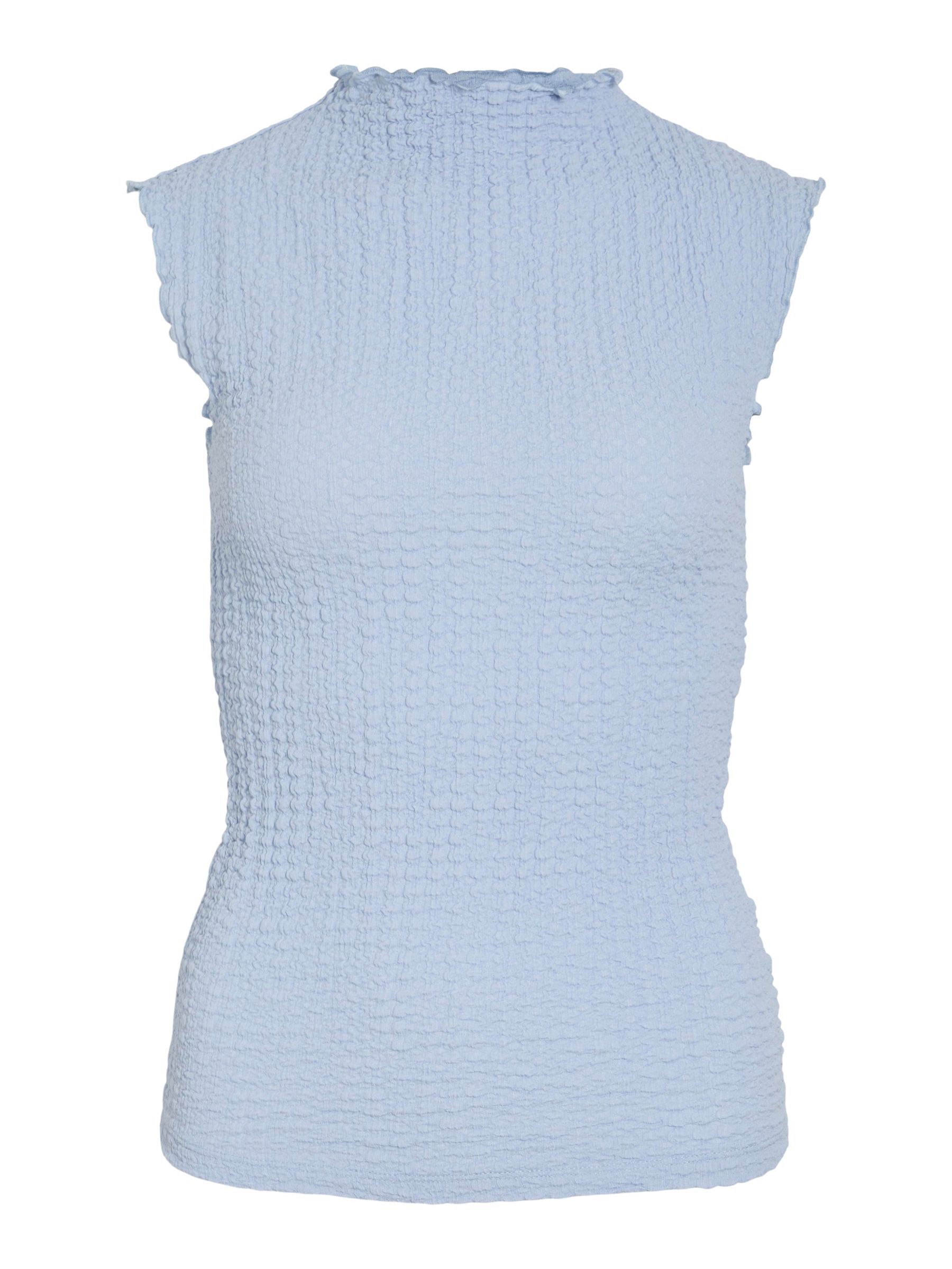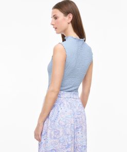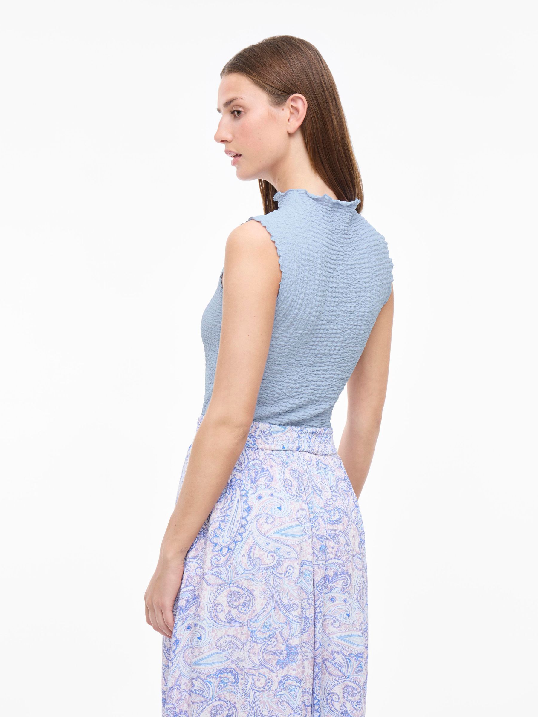 • Textured sleeveless top• High neck• Lettuce trim• Regular fit• Length: 55 cm in size M