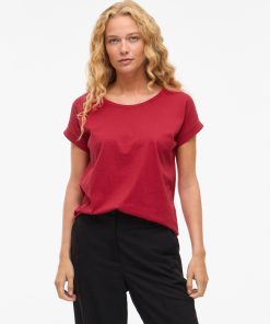 VILA Women’s Vidreamers Round Neck T-shirt | Jester Red