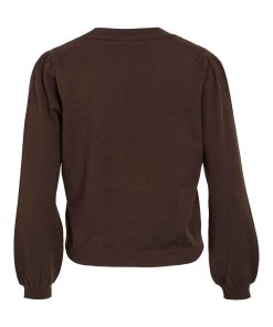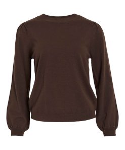VILA Women’s Viella Round Neck Knitted Pullover | Chocolate Brown