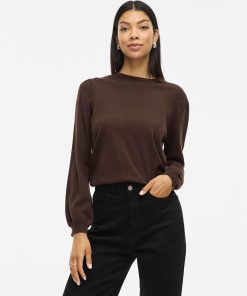VILA Women’s Viella Round Neck Knitted Pullover | Chocolate Brown