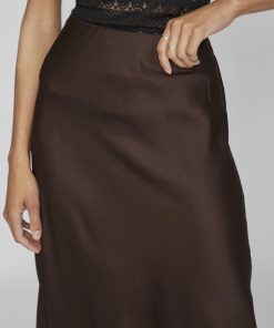 VILA Women’s Viellette High Waist Midi Skirt | Coffee Bean