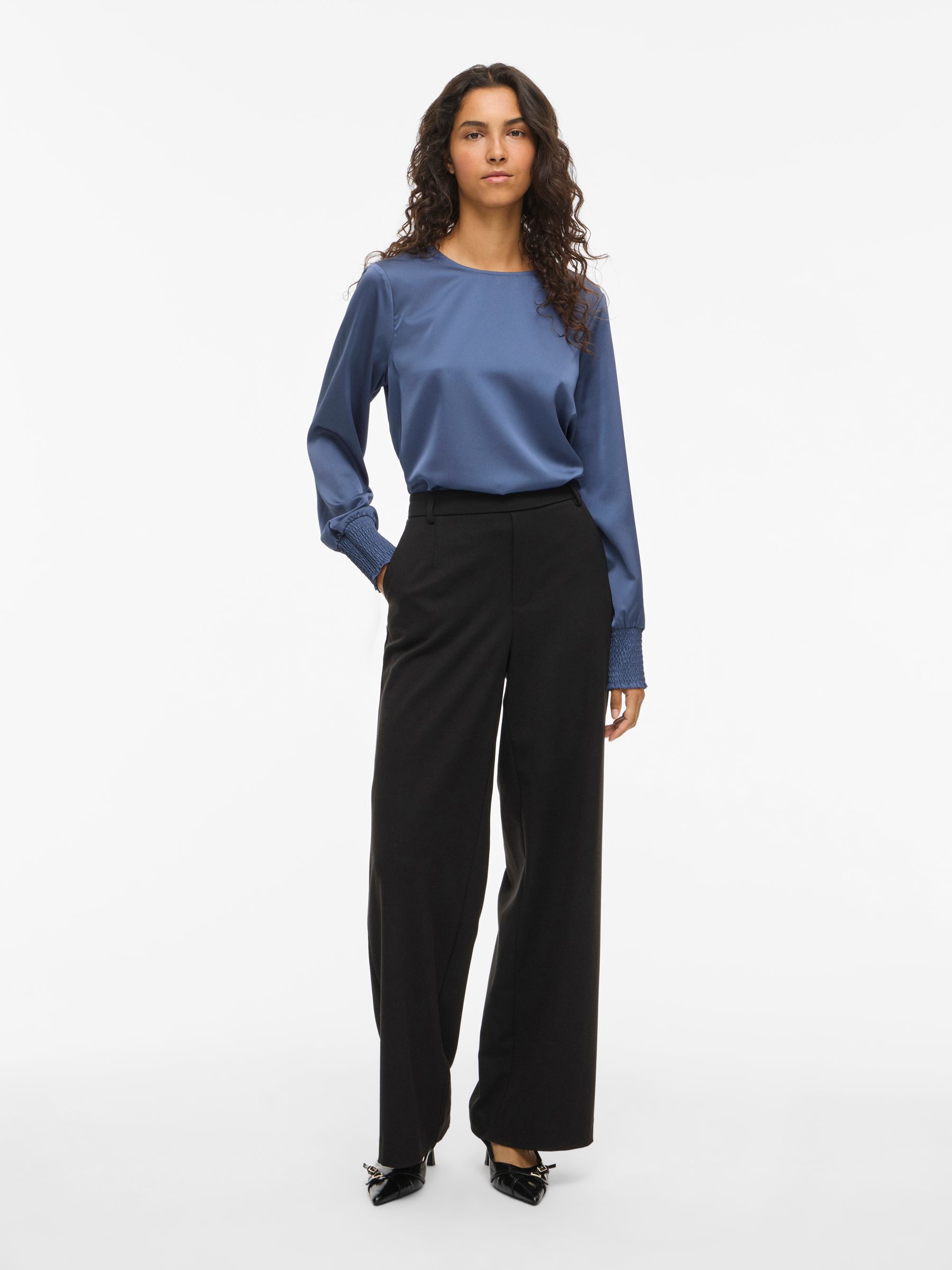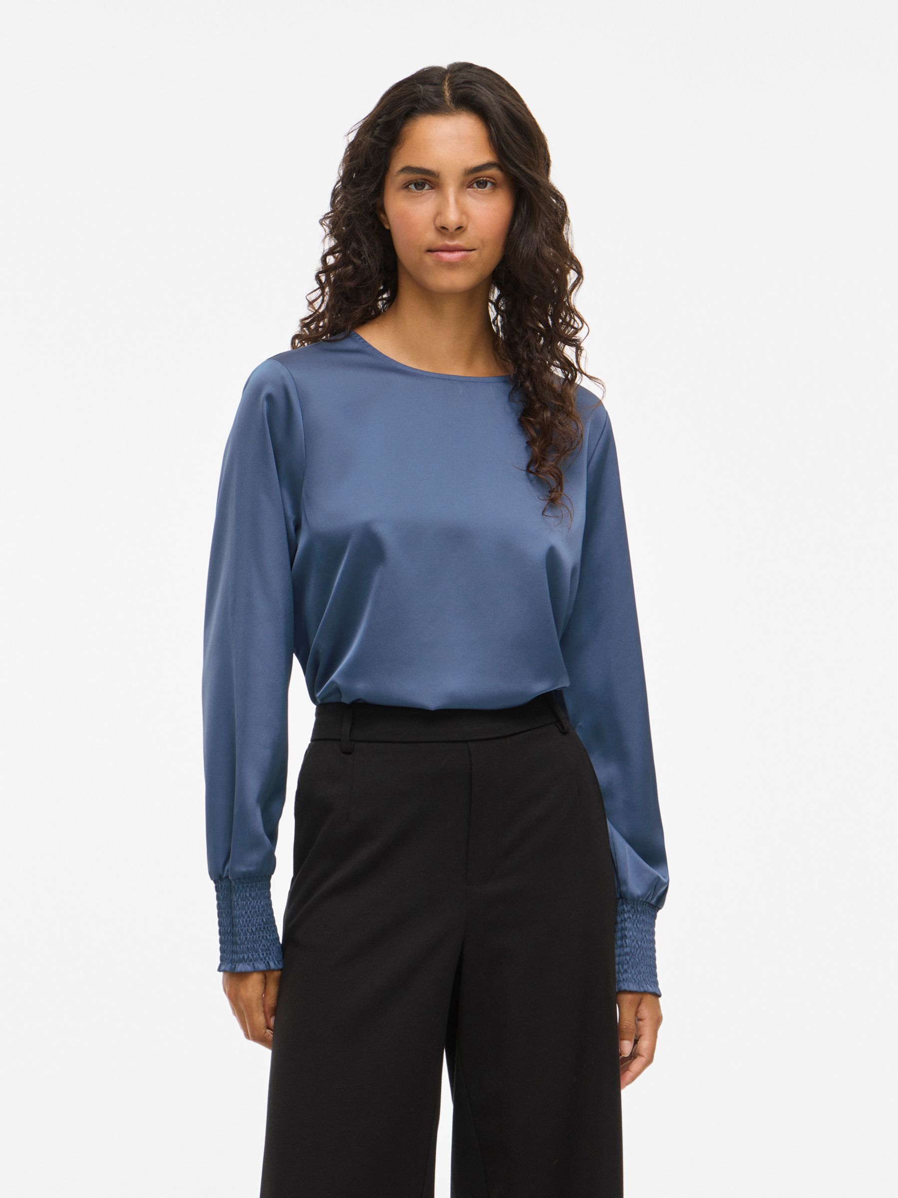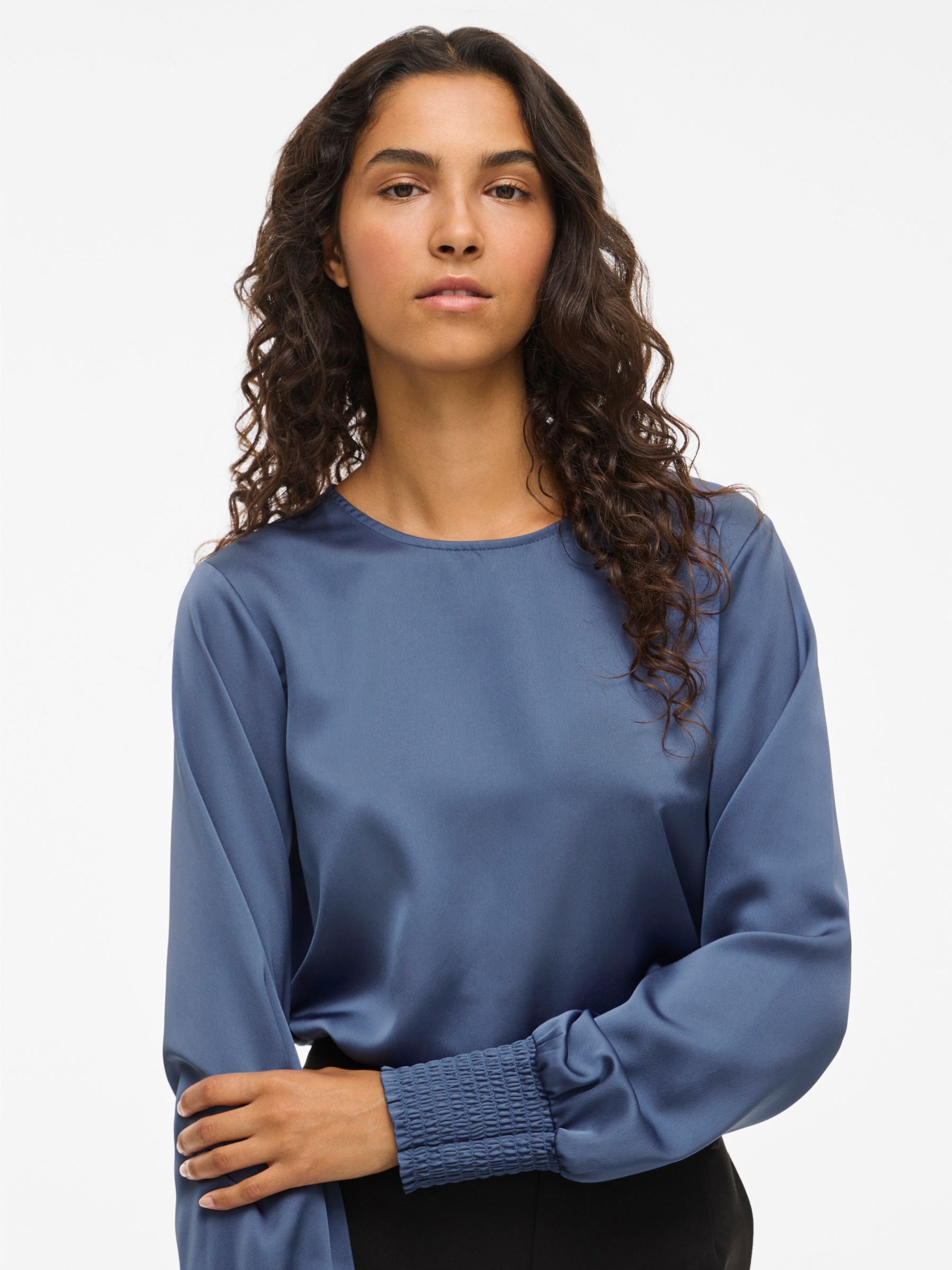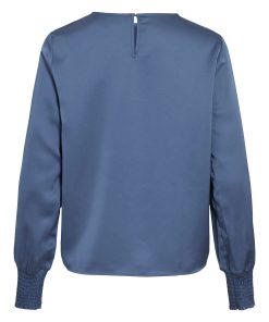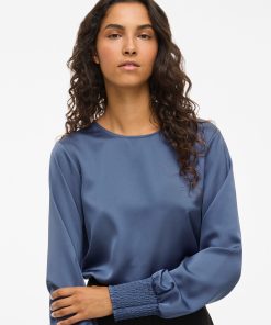 VILA Women’s Viellette Round Neck Long Sleeved Top | Bijou Blue