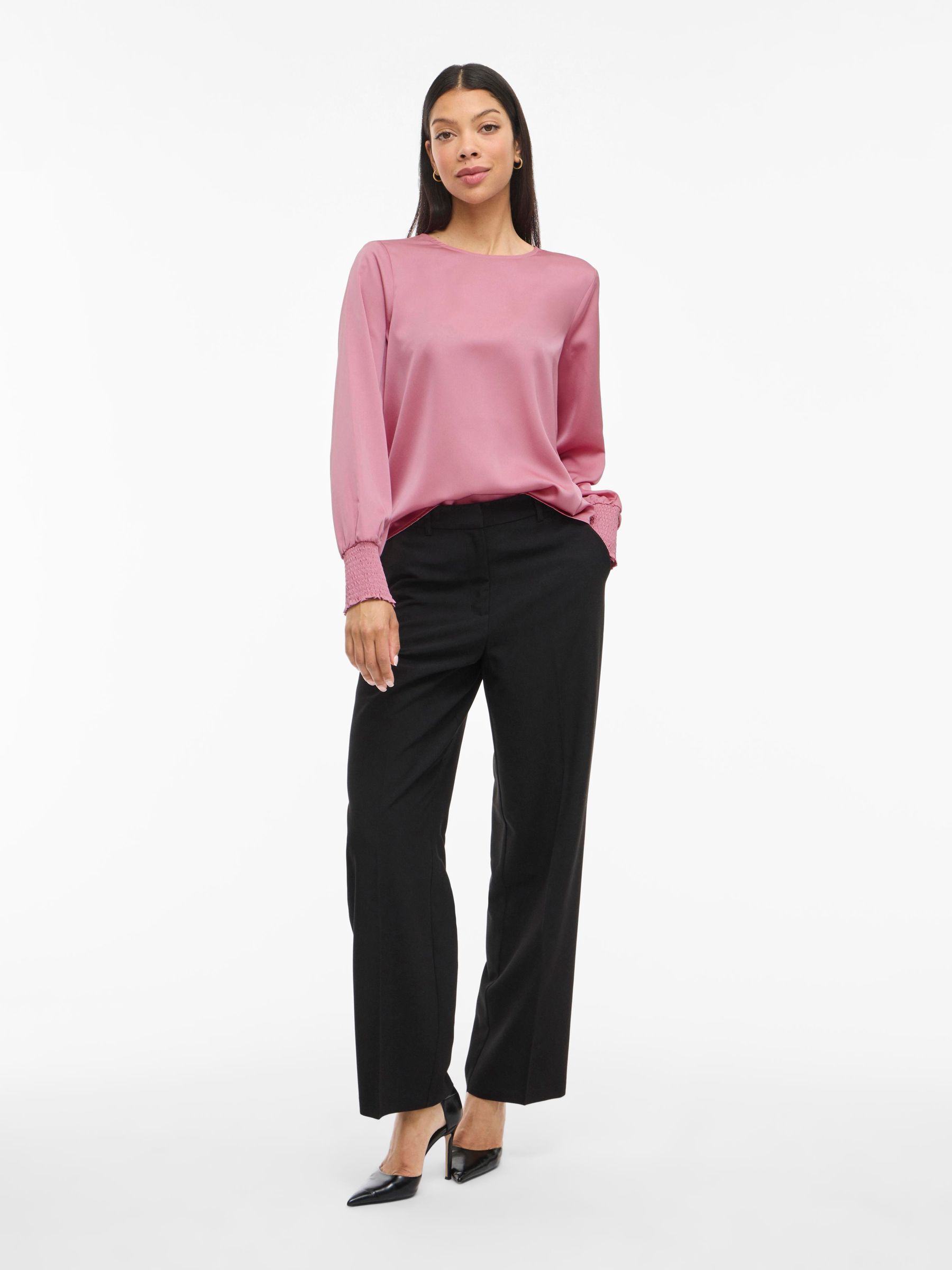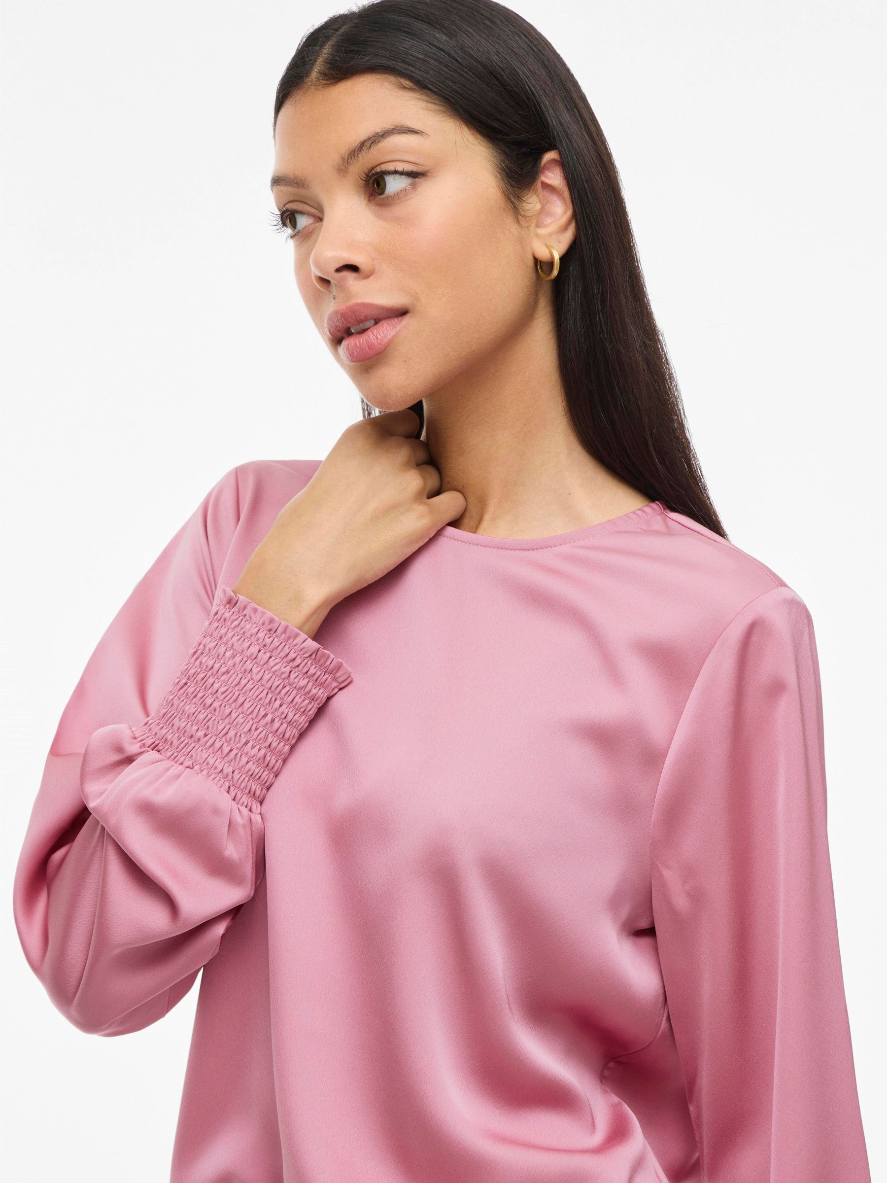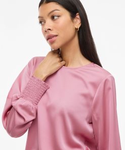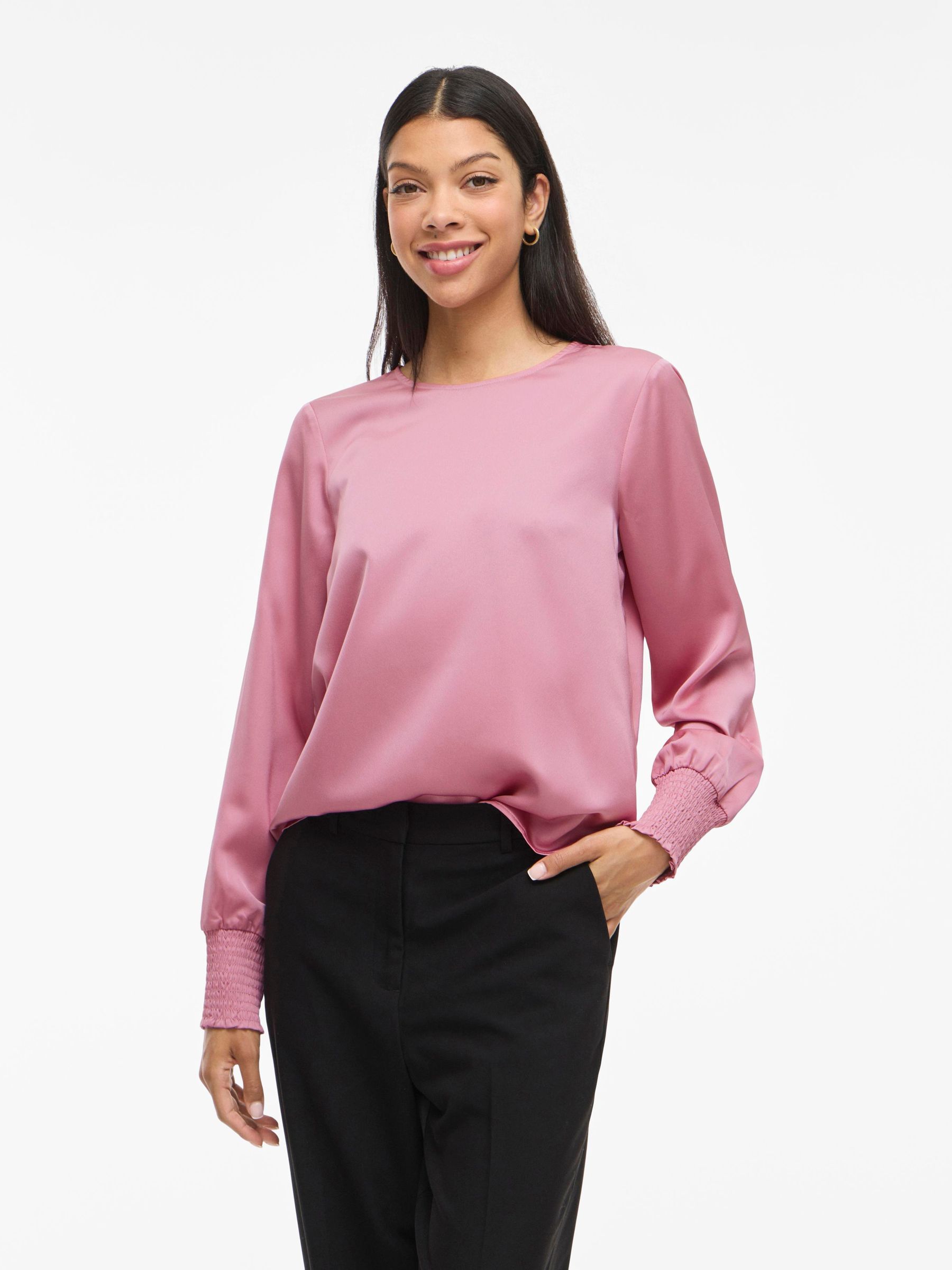 • Elegant long sleeved top• Round neck with button-keyhole fastening• Smock cuffs• Elegant, shiny fabric• Regular fit• Length: 64 cm in size 38• Sleeve length: 65 cm in size 38