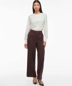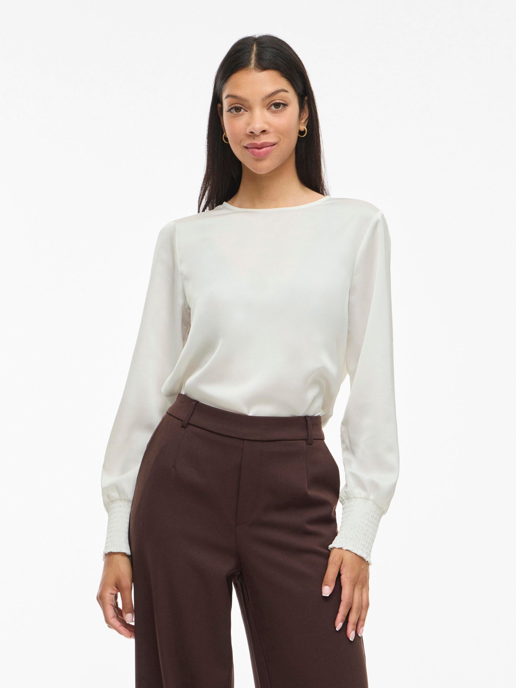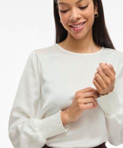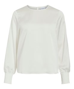 VILA Women’s Viellette Round Neck Long Sleeved Top | Snow White