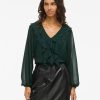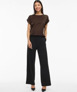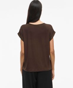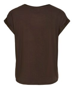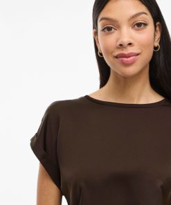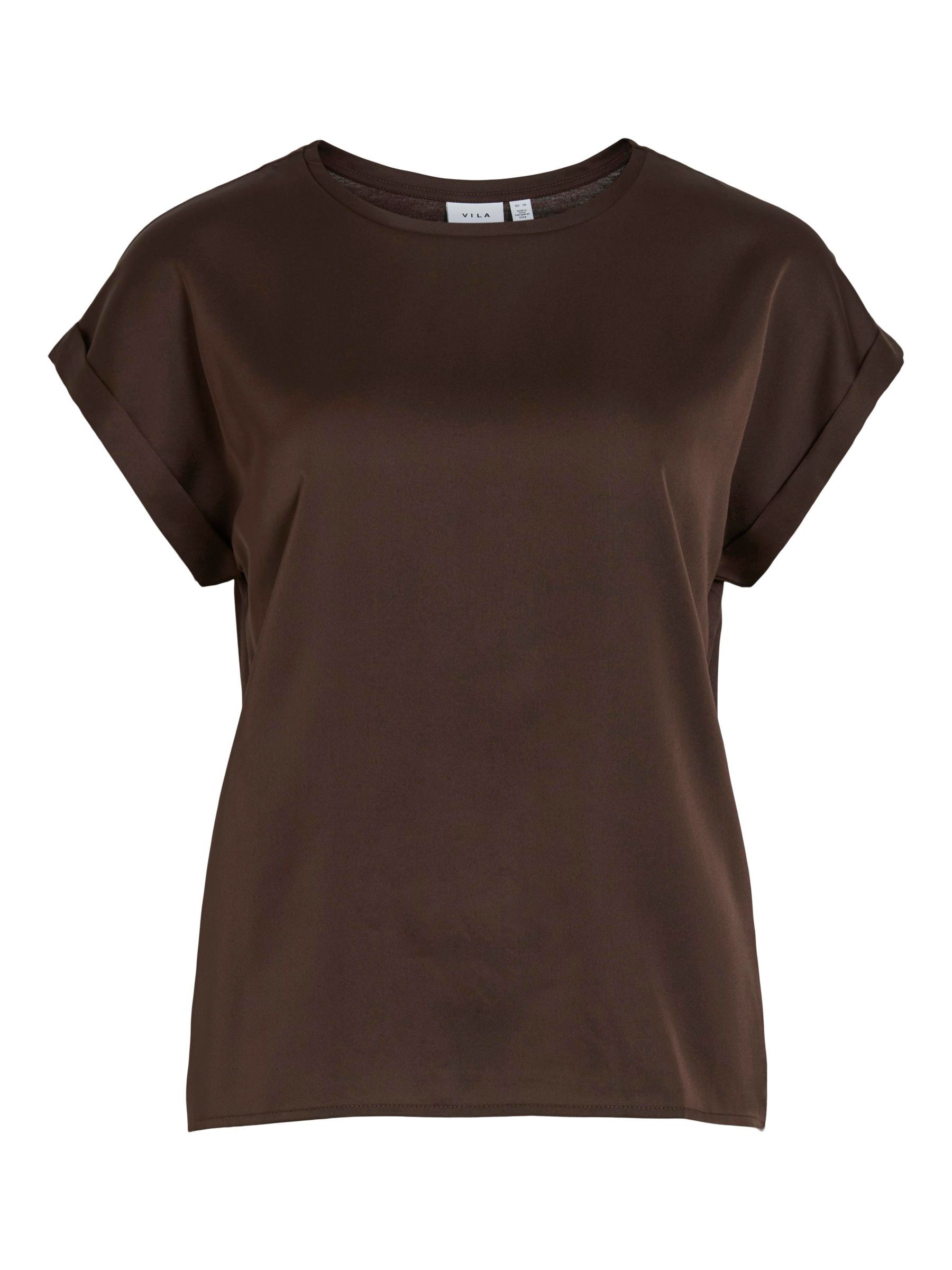 – Short sleeved, round neck top- Satin-look – Light material- Non-stretchable material- Length: 61 cm in size 38 – Sleeve length: 11 cm in size 38- Our model is 178 cm tall and wears size 38