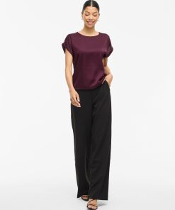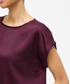 – Short sleeved, round neck top- Satin-look – Light material- Non-stretchable material- Length: 61 cm in size 38 – Sleeve length: 11 cm in size 38- Our model is 178 cm tall and wears size 38