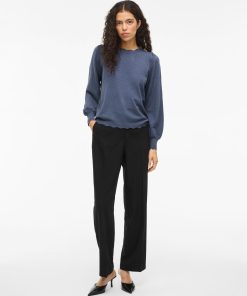 VILA Women’s Viemi Round Neck Knitted Pullover | Vintage Indigo