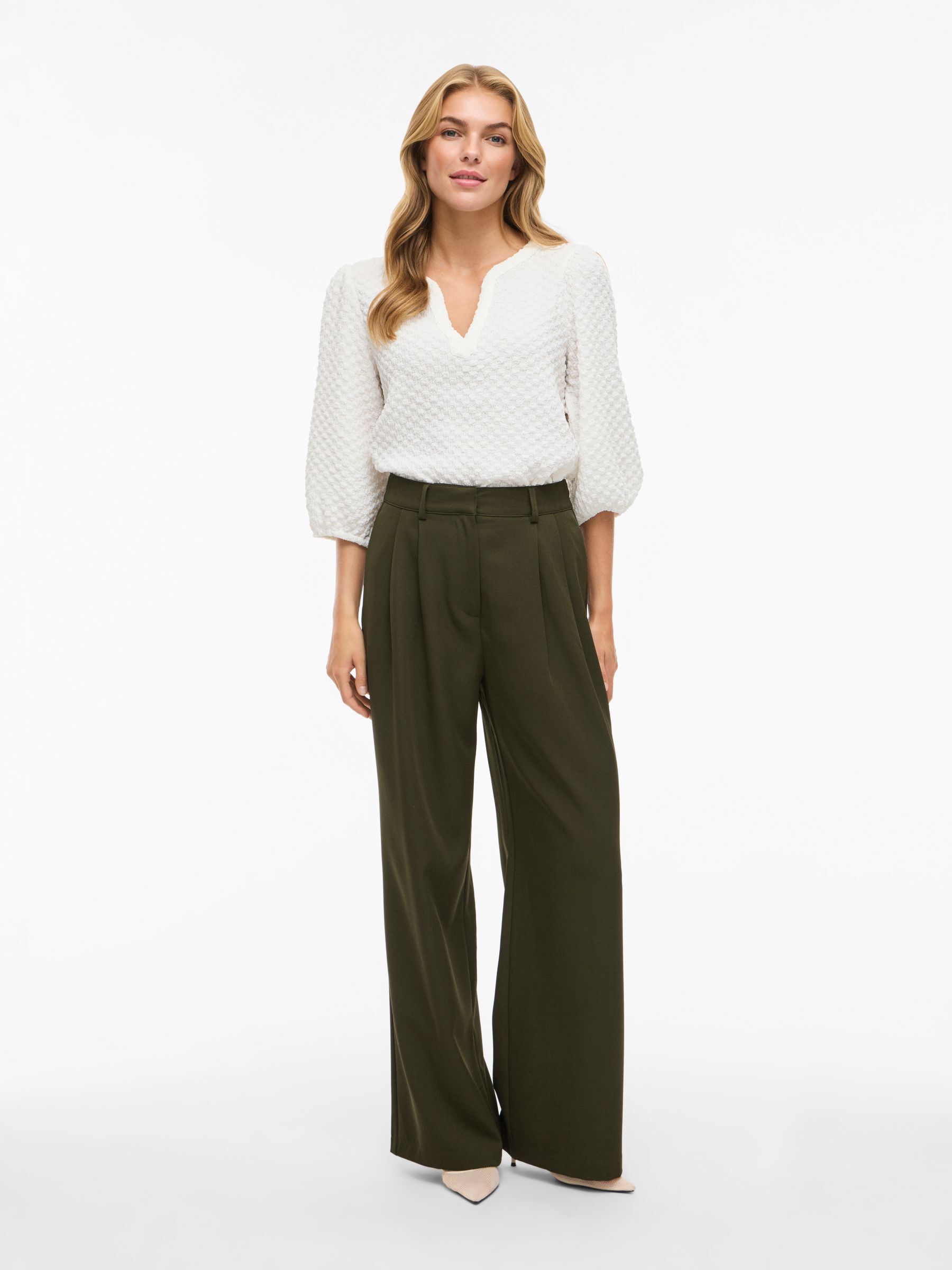 • High waisted trousers• Zip-up fly with hook and button fastening• Side pockets• Belt loops• Wide fit• Inseam: 80 cm in size 38• Frontrise: 33 cm in size 38