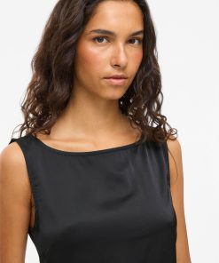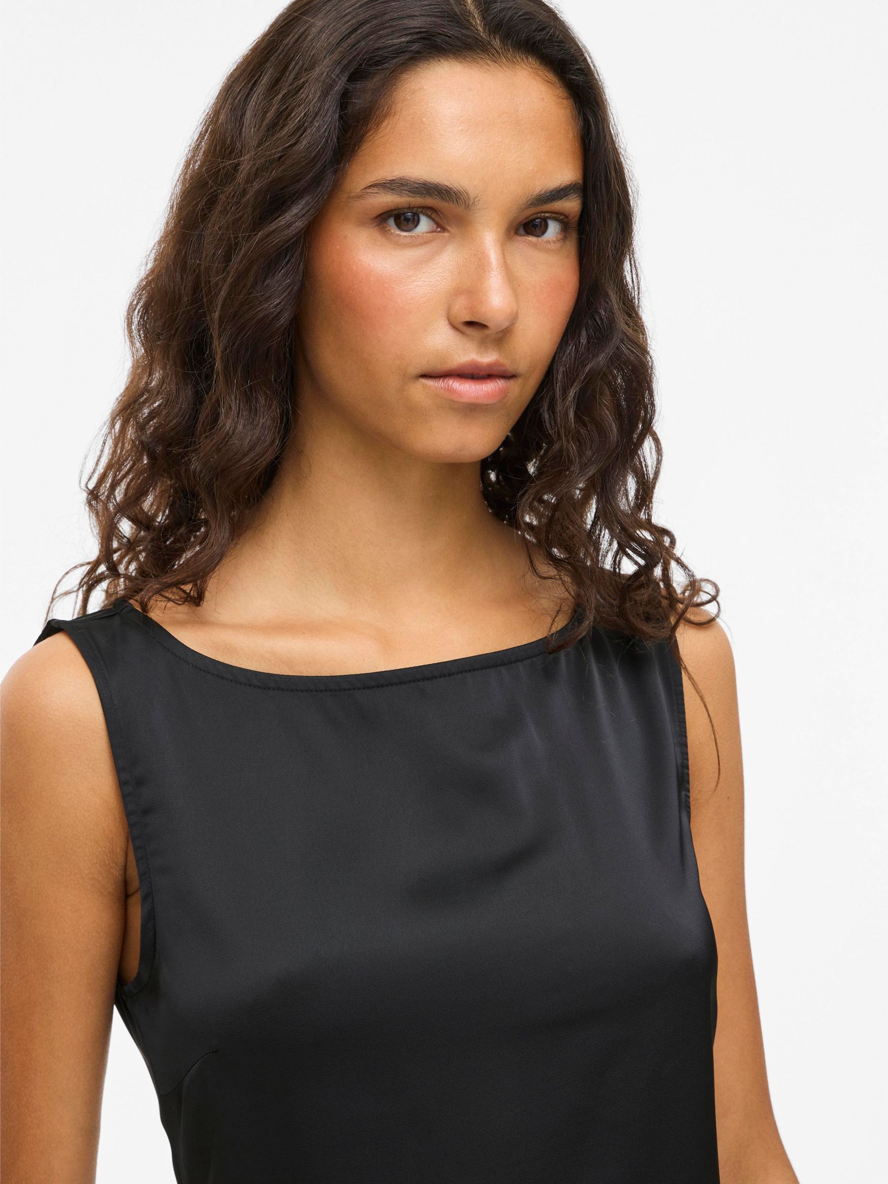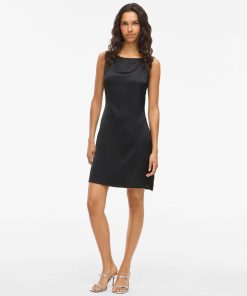 • Sleeveless short dress• Round neckline• Concealed side zip fastening• Satin-look• Regular fit• Length: 88 cm in size 38