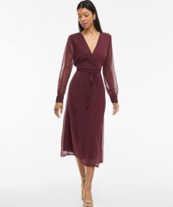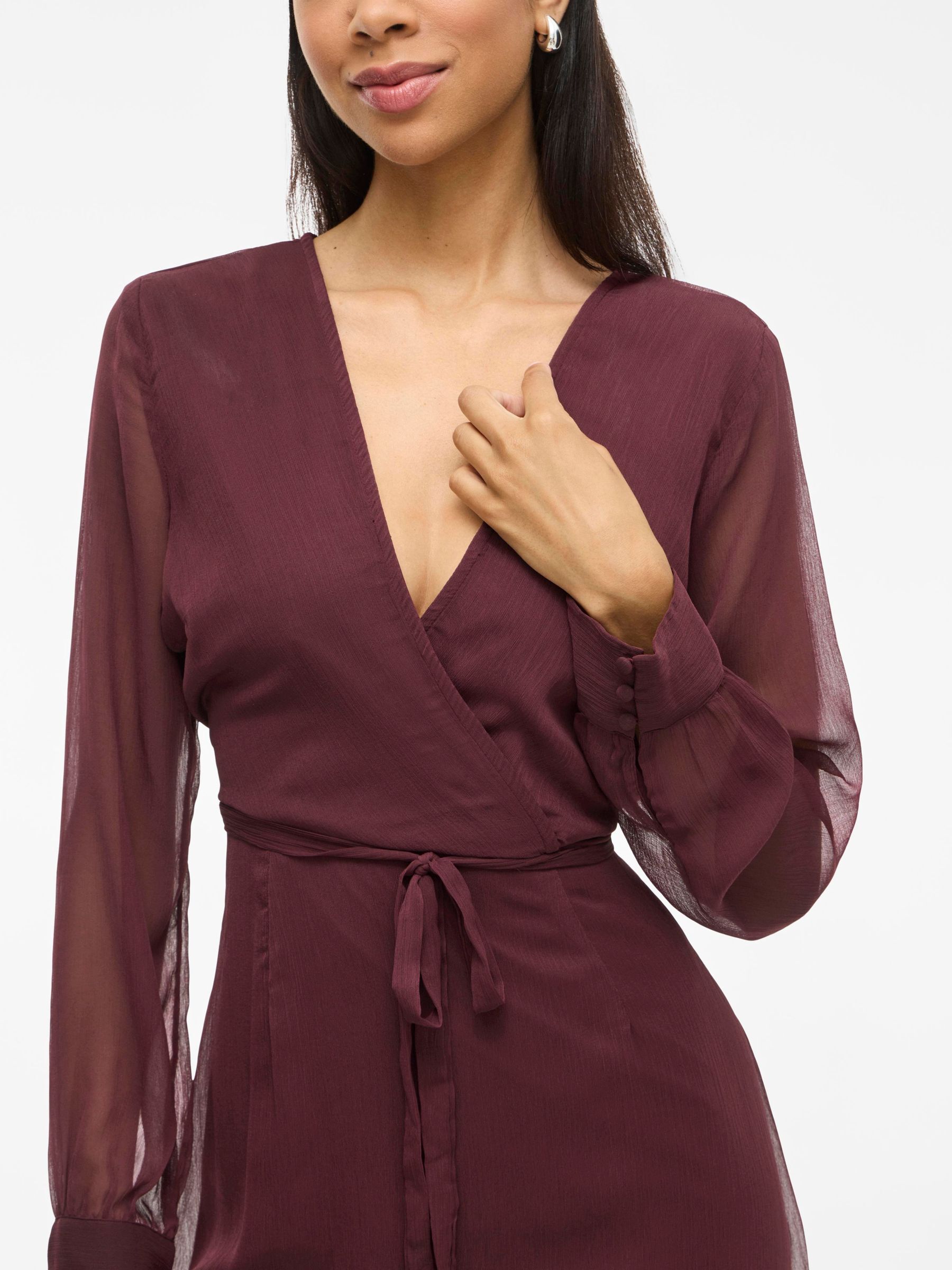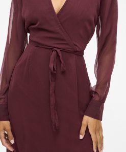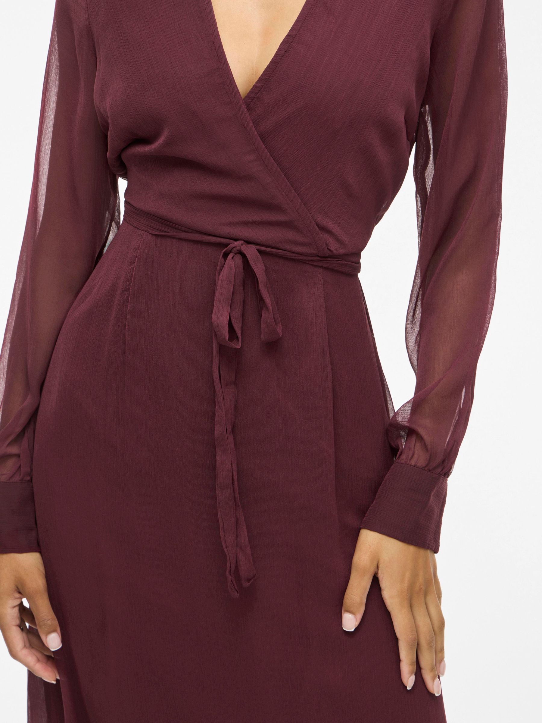 • Long sleeved, midi dress• Wrap dress• V-neck with removable stitch• Tie waist• Two layers• See-through material at the sleeves• Length: 130 cm in size 38