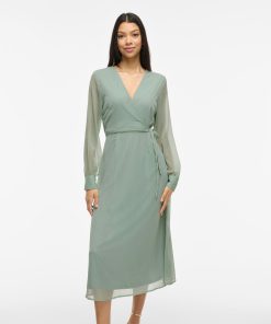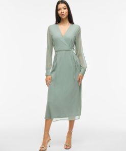 VILA Women’s Vifalia Long Sleeved Midi Dress | Green Milieu
