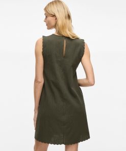 • Sleeveless short dress• Round neck with button-keyhole fastening• Scallop edge• Regular fit• Length: 90 cm in size 38