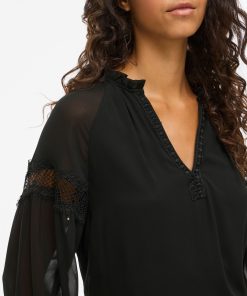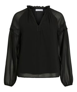 VILA Women’s Vigalo V-neck Long Sleeved Top | Black