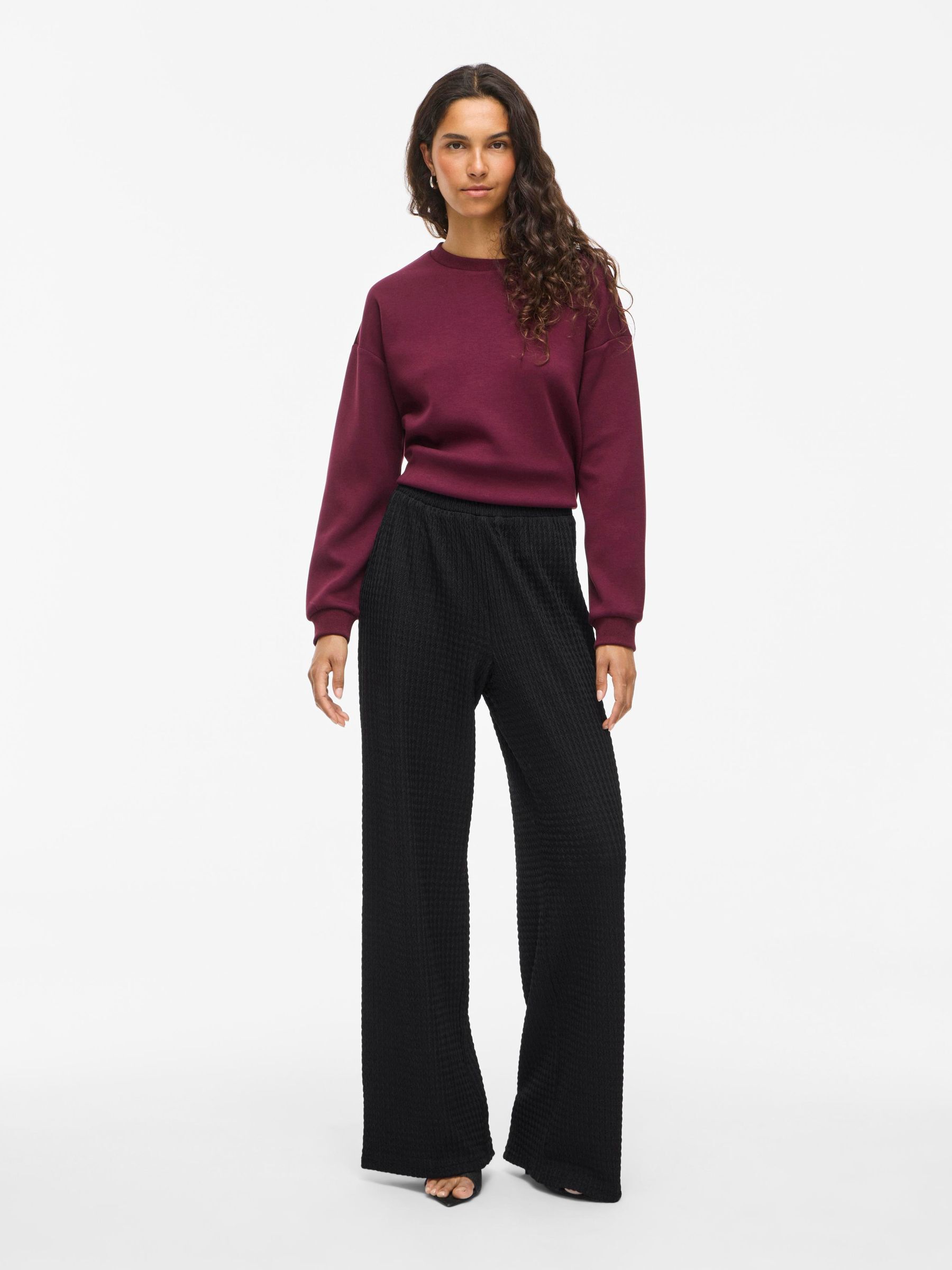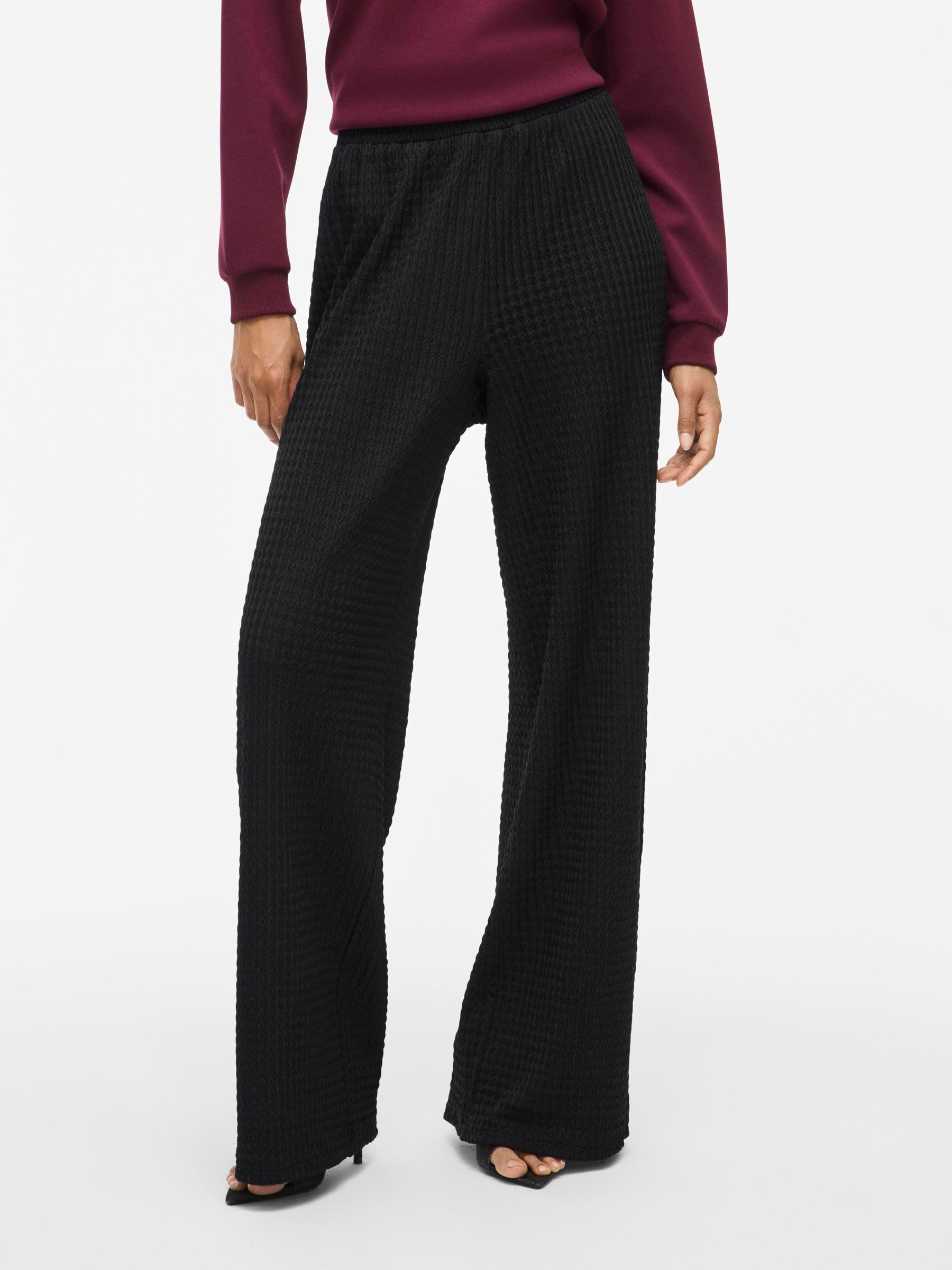 • Mid-waist trousers• Elastic waistband• Textured fabric• Wide-leg fit• Inseam: 82 cm in size M• Frontrise: 29 cm in size M