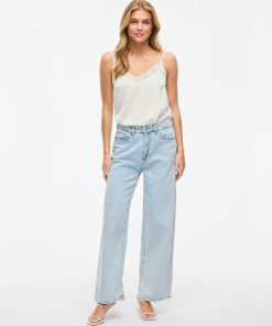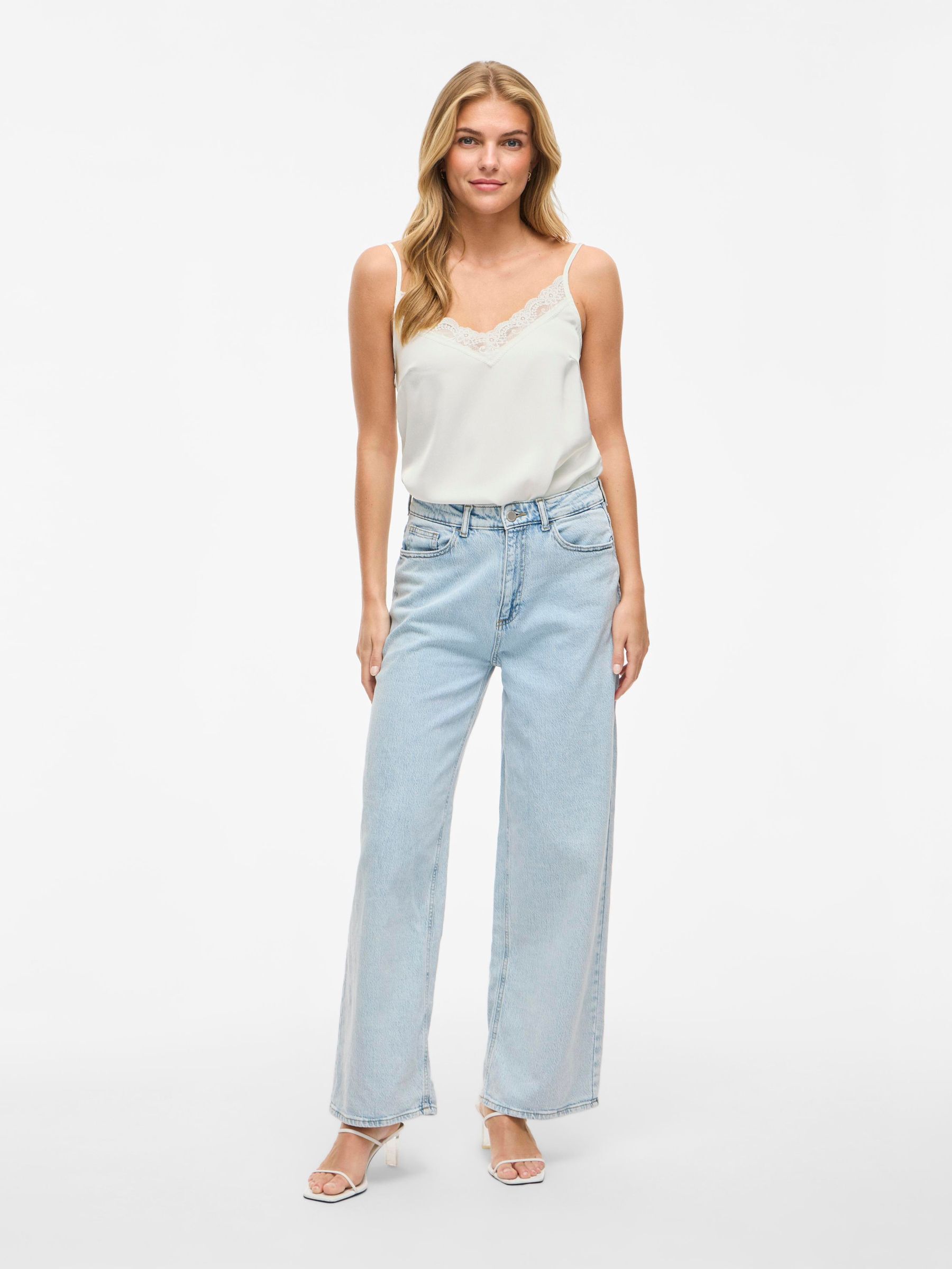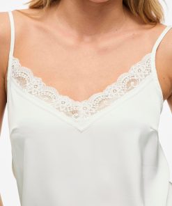 • Singlet strap top• V-neck• Lace trim• Adjustable straps• Elegant shiny fabric• Regular fit• Length: 59 cm in size 38