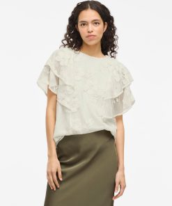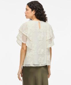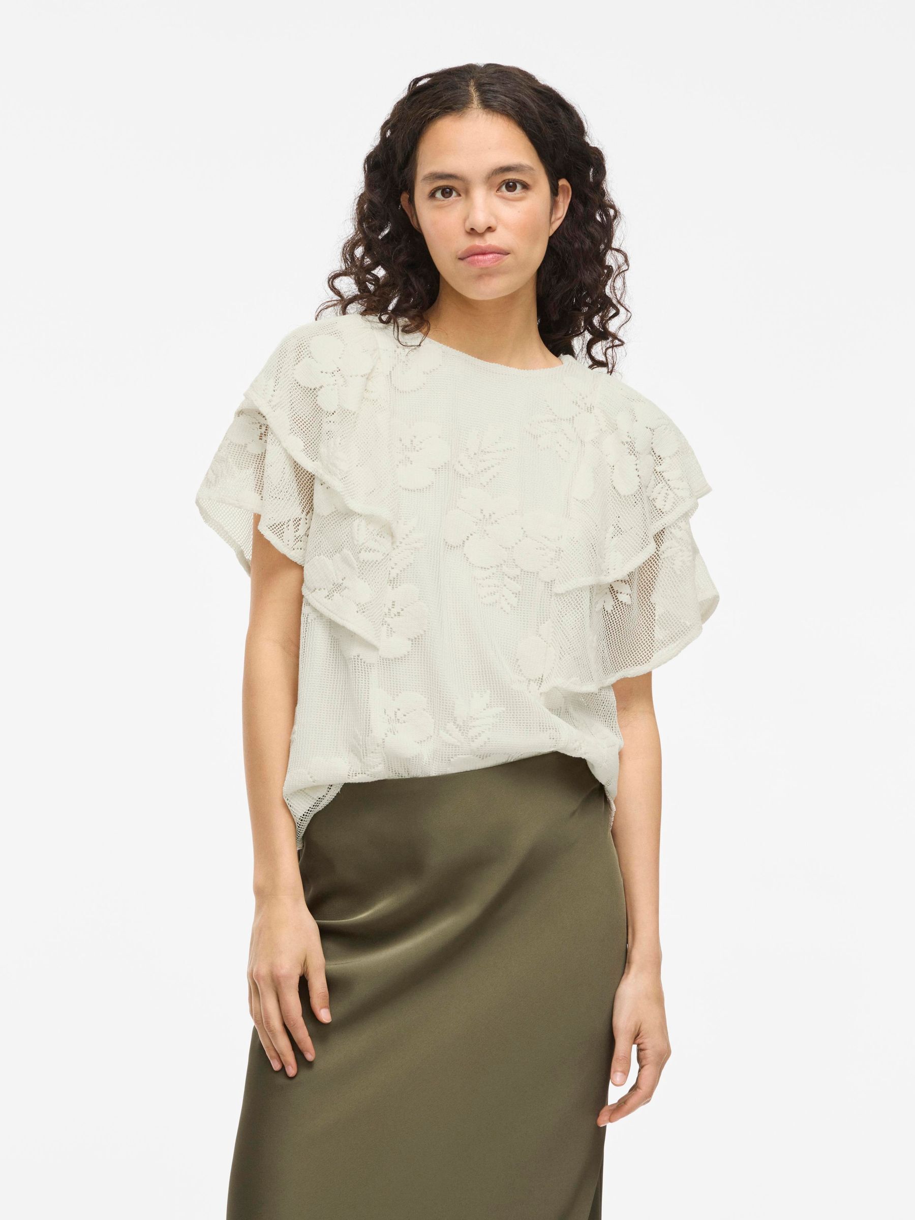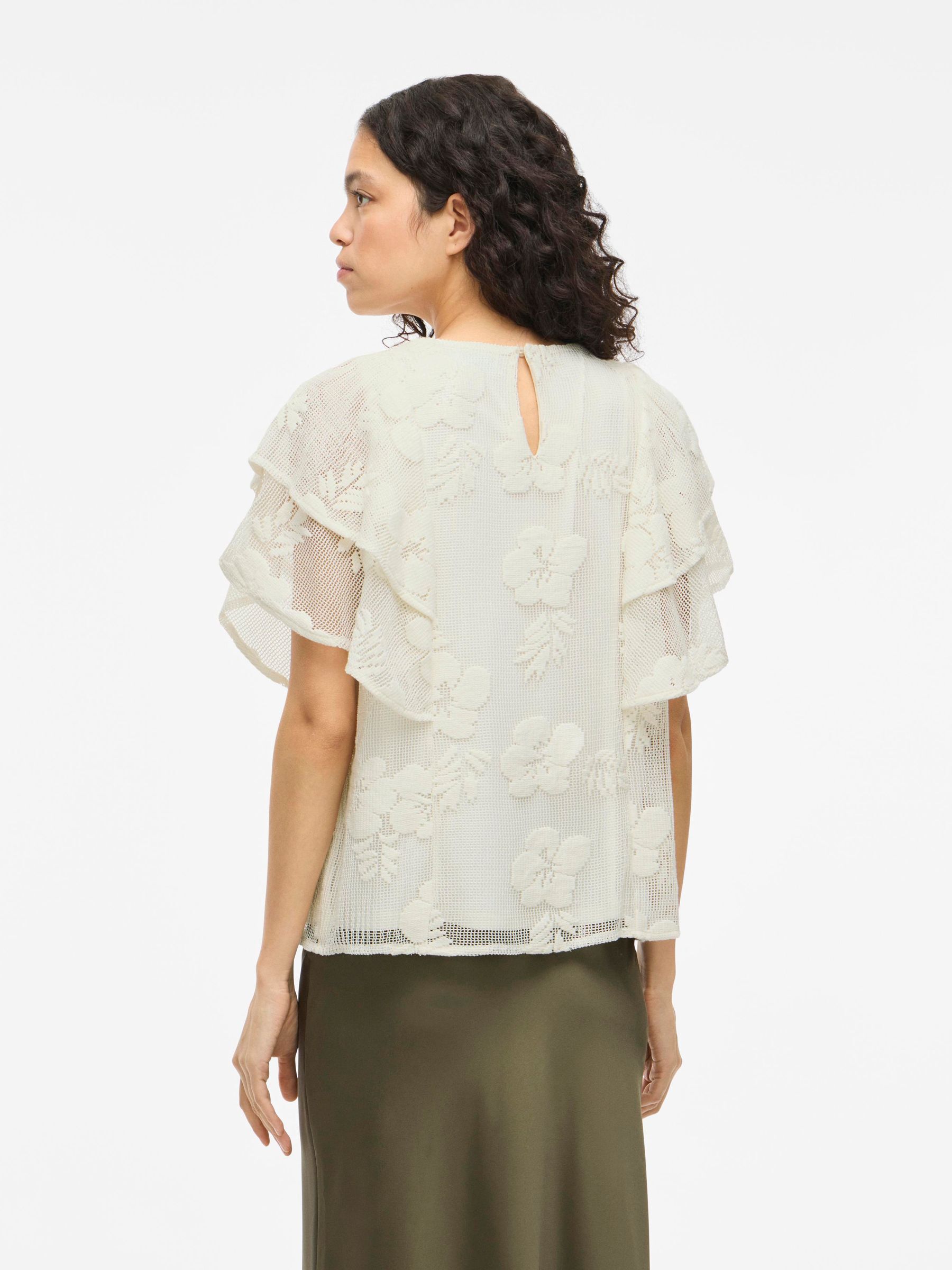 • Cap sleeve lace top• Round neck with button-keyhole fastening• Lined body with sheer overlay• Regular fit• Length: 62 cm in size M