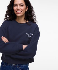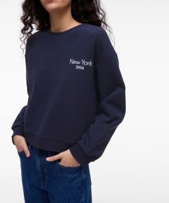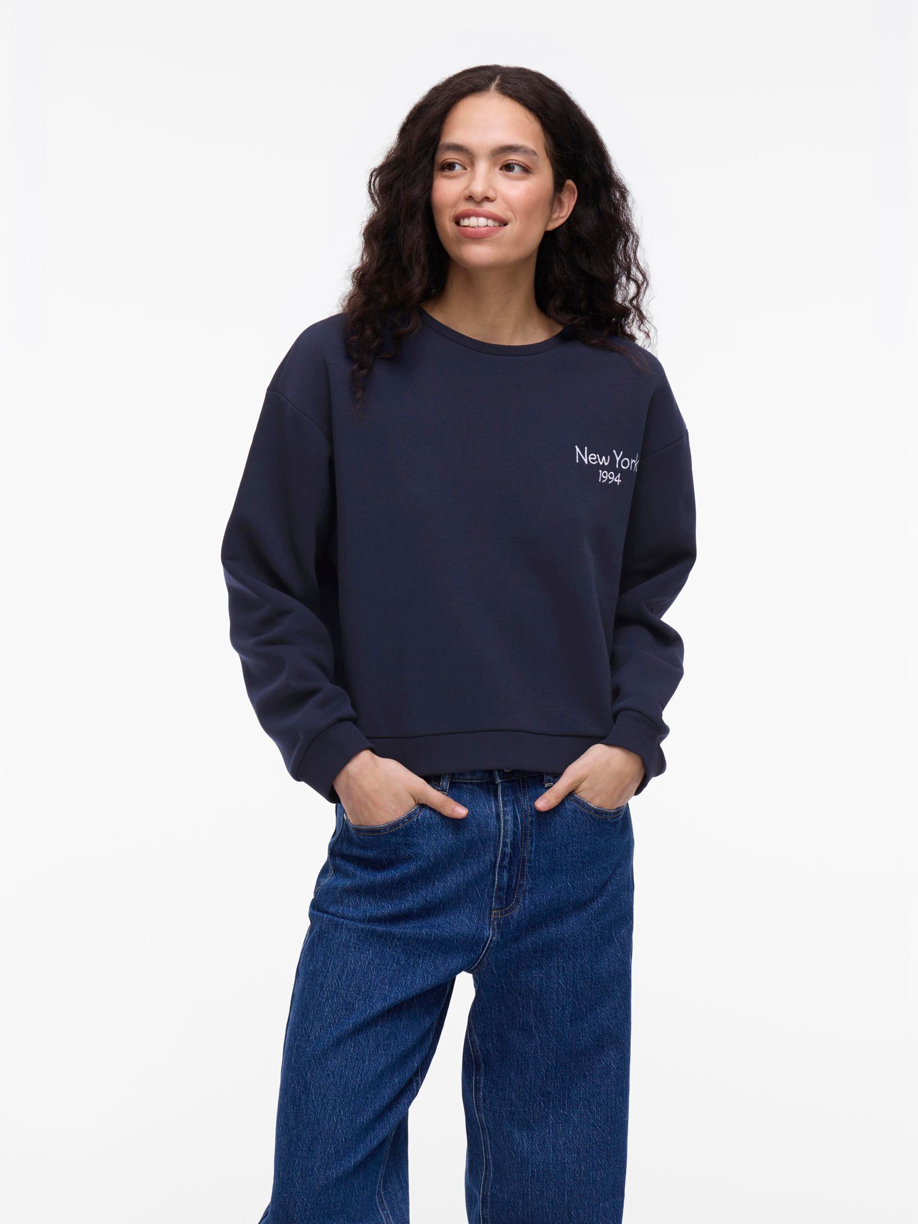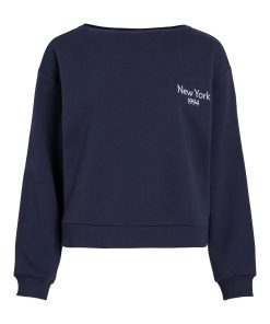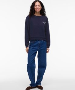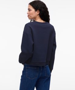 VILA Women’s Vihollie Round Neck Long Sleeved Sweatshirt | Navy Blazer