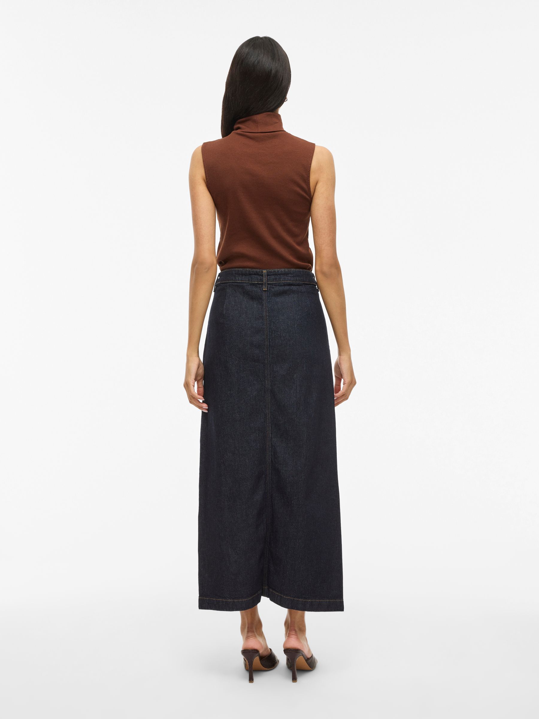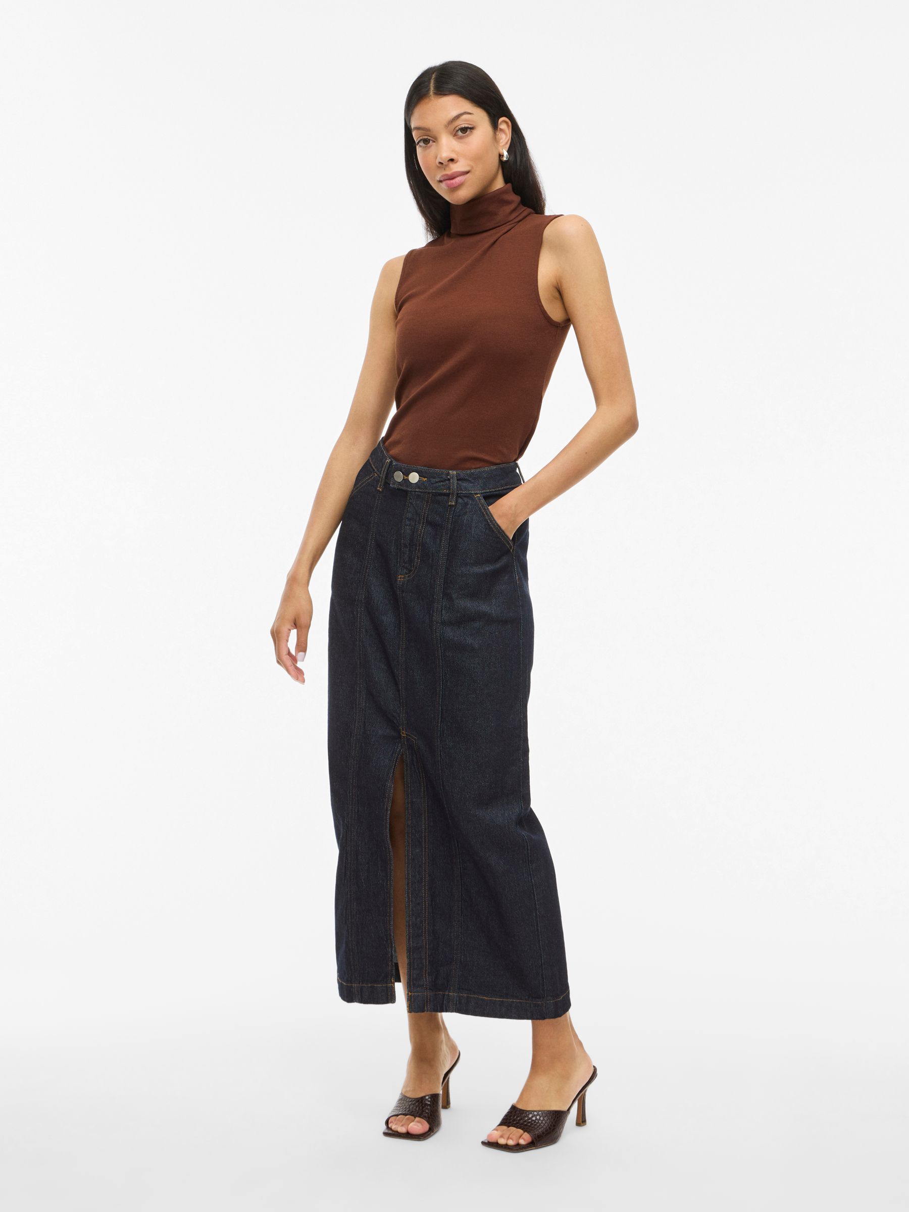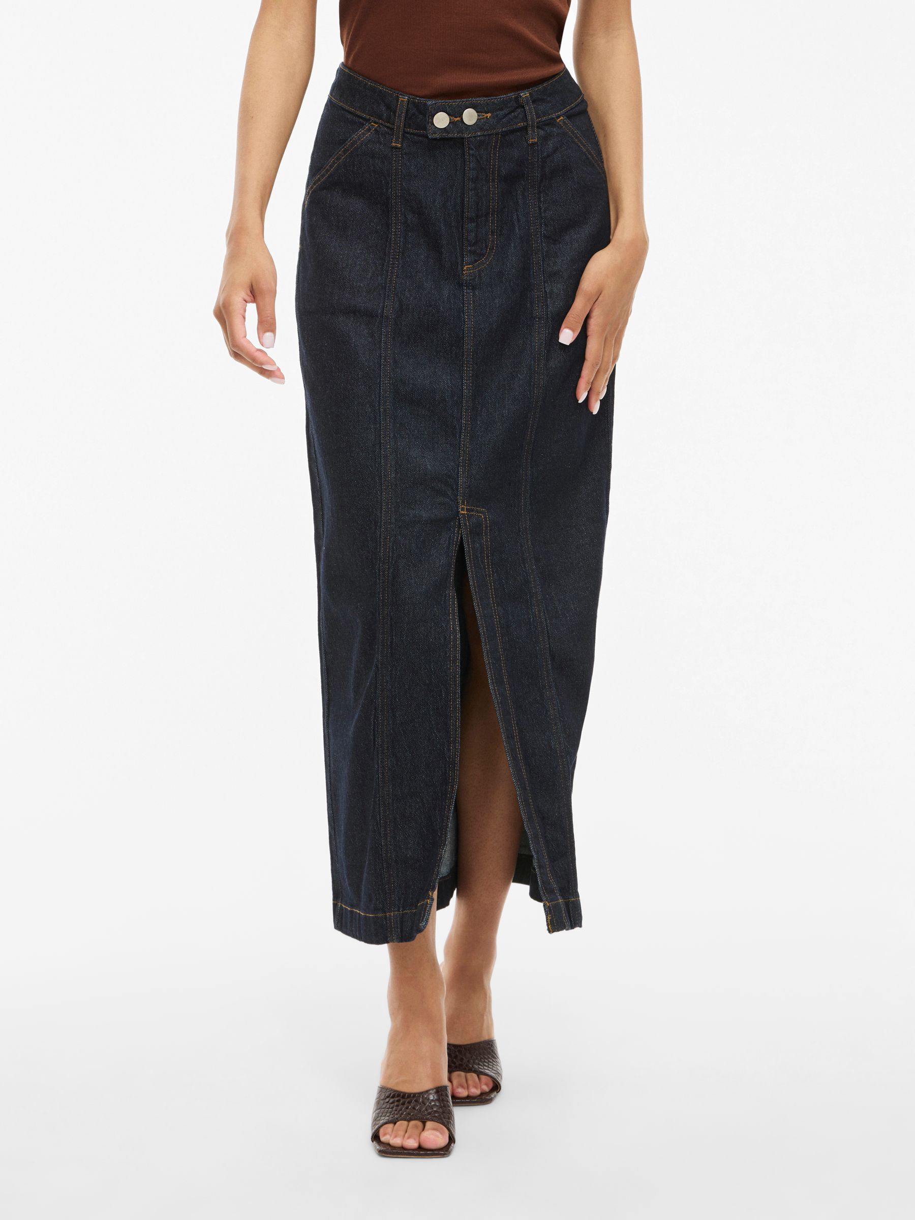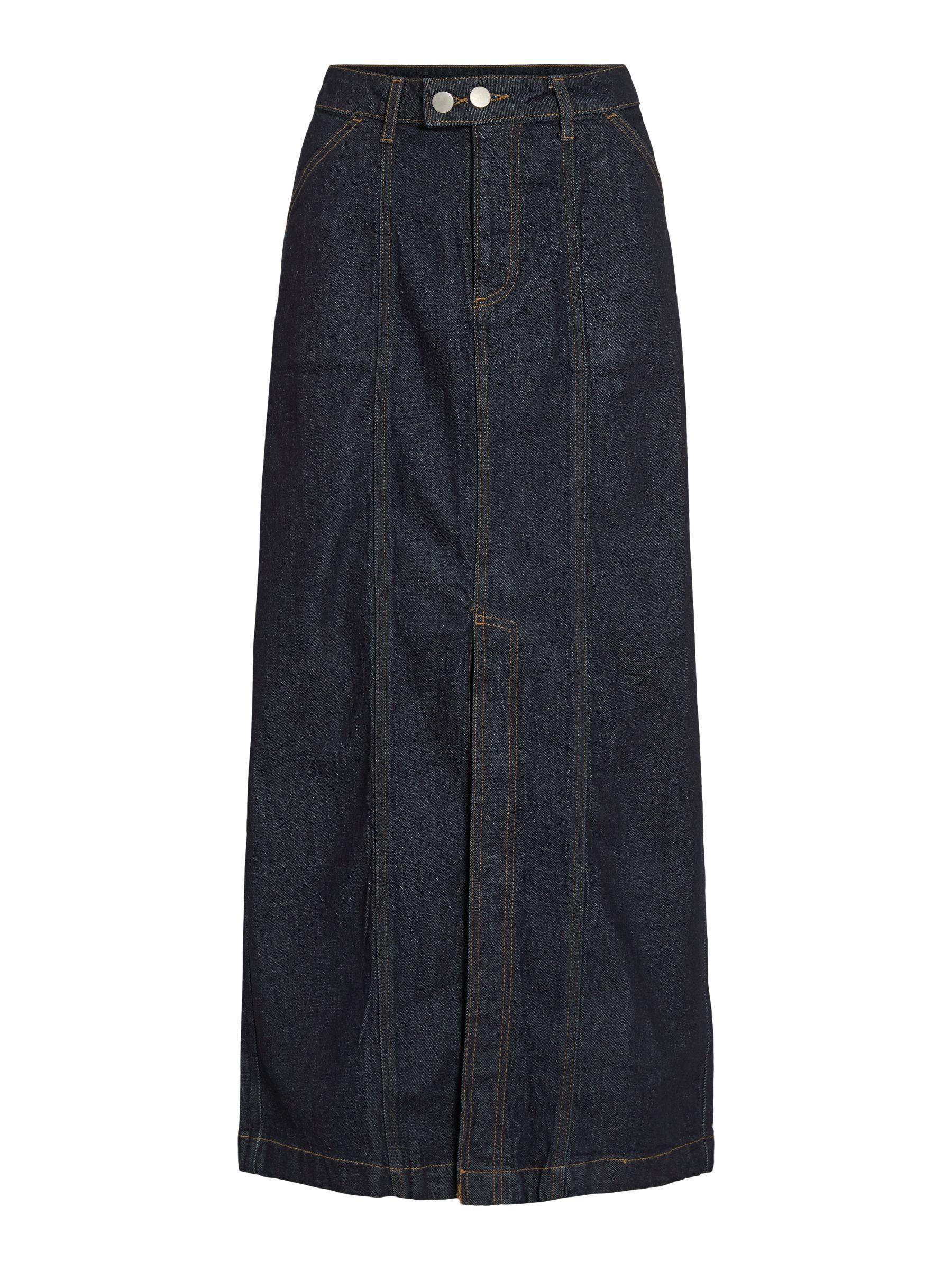 • Maxi denim skirt• Mid-waist• Zip and button fastening• Front slit detail• Front pockets• Belt loops• Regular fit• Length: 92 cm in size 38