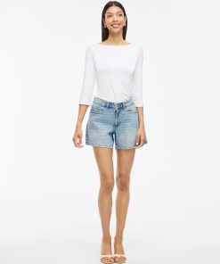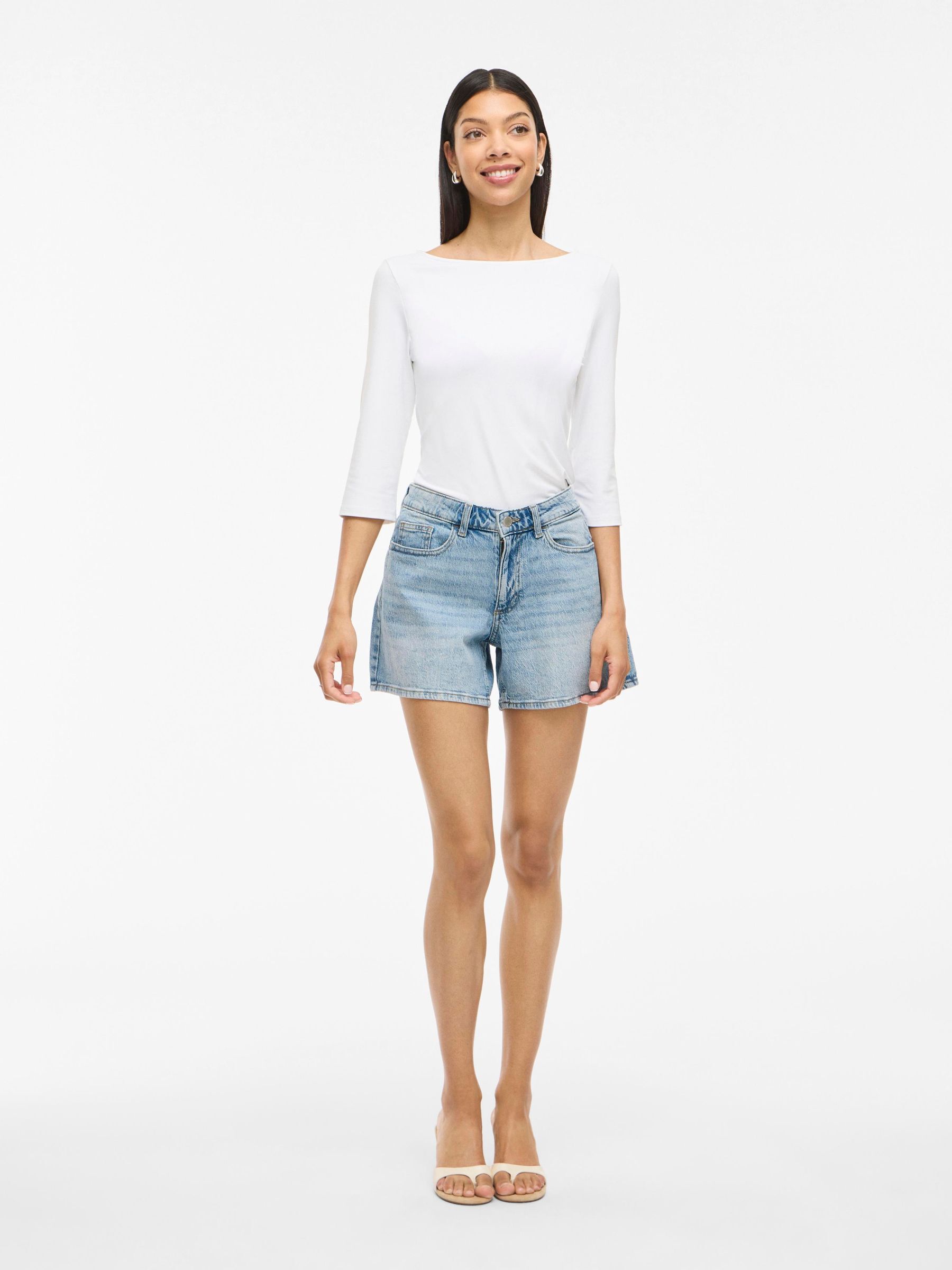 • Mid-waist denim shorts• Zip and button fastening• Belt loops• Front and back pockets• Regular fit• Inseam: 13 cm in size 38• Frontrise: 26 cm in size 38
