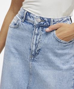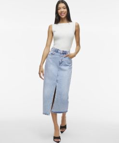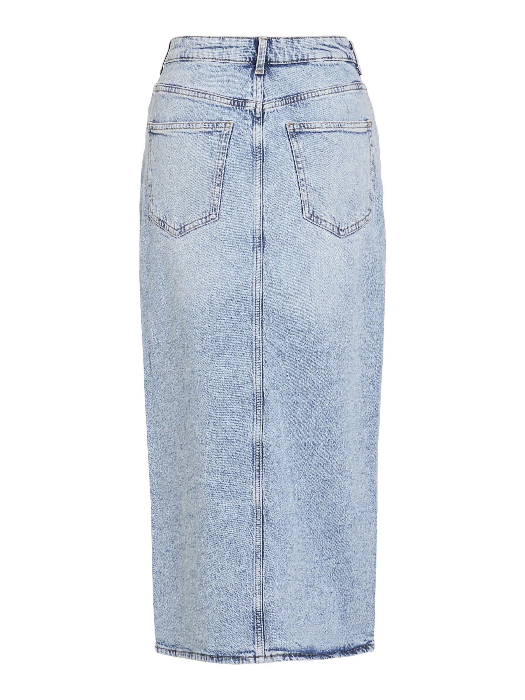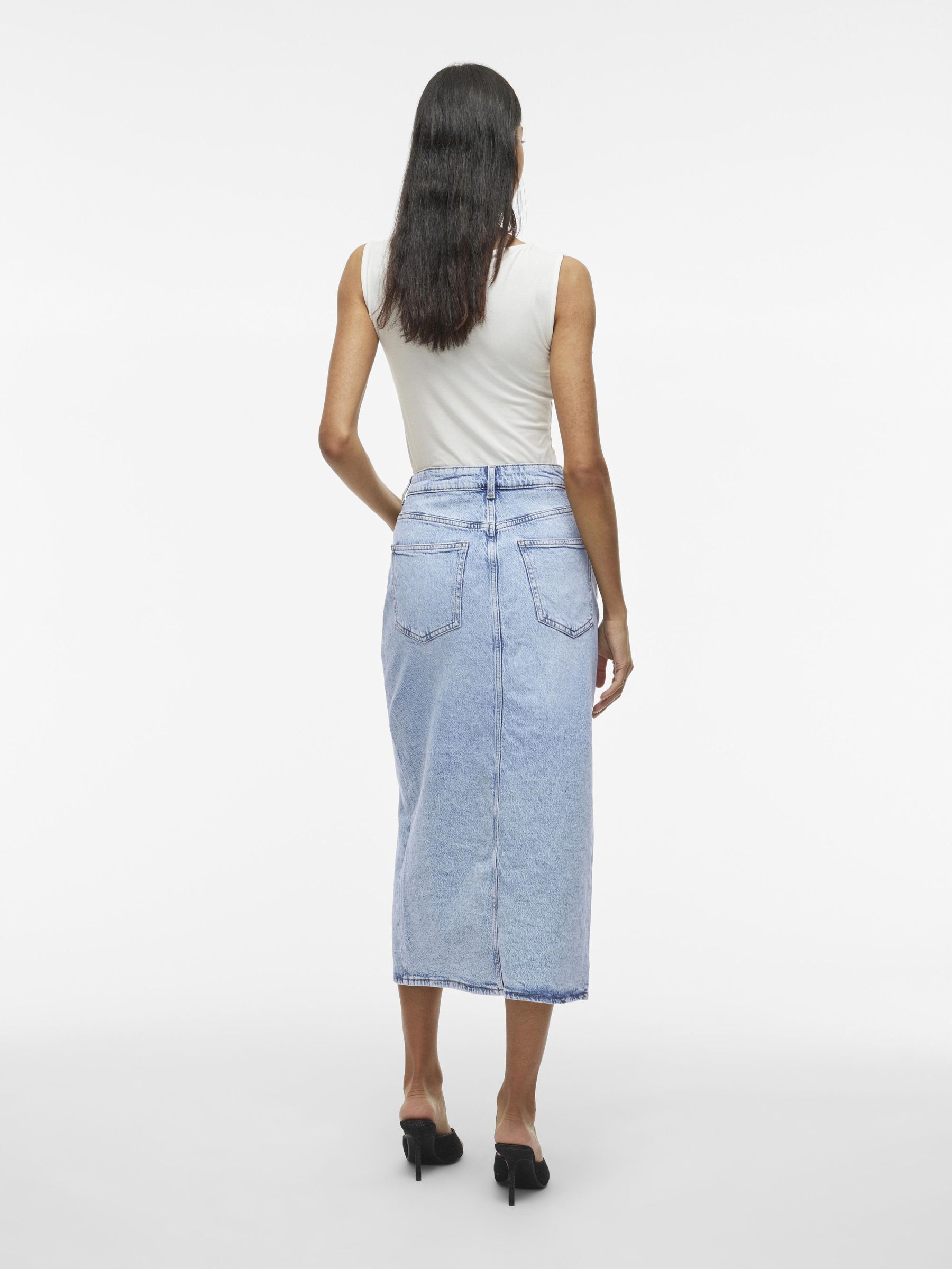 • High waist, midi denim skirt• Front slit detail• Zip-up fly with button fastening• Front and back pockets• Belt loops• Regular fit• Length: 86 cm in size 38