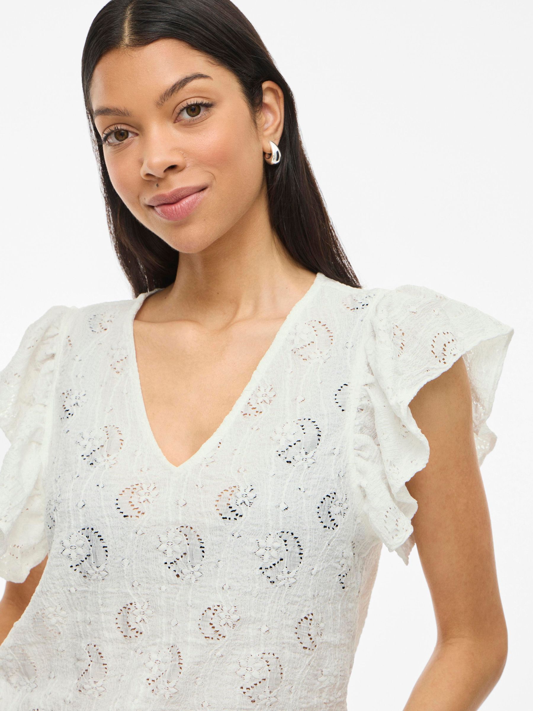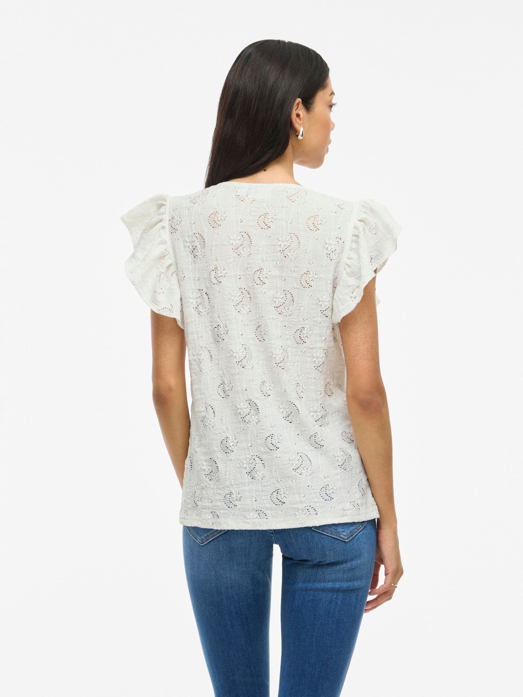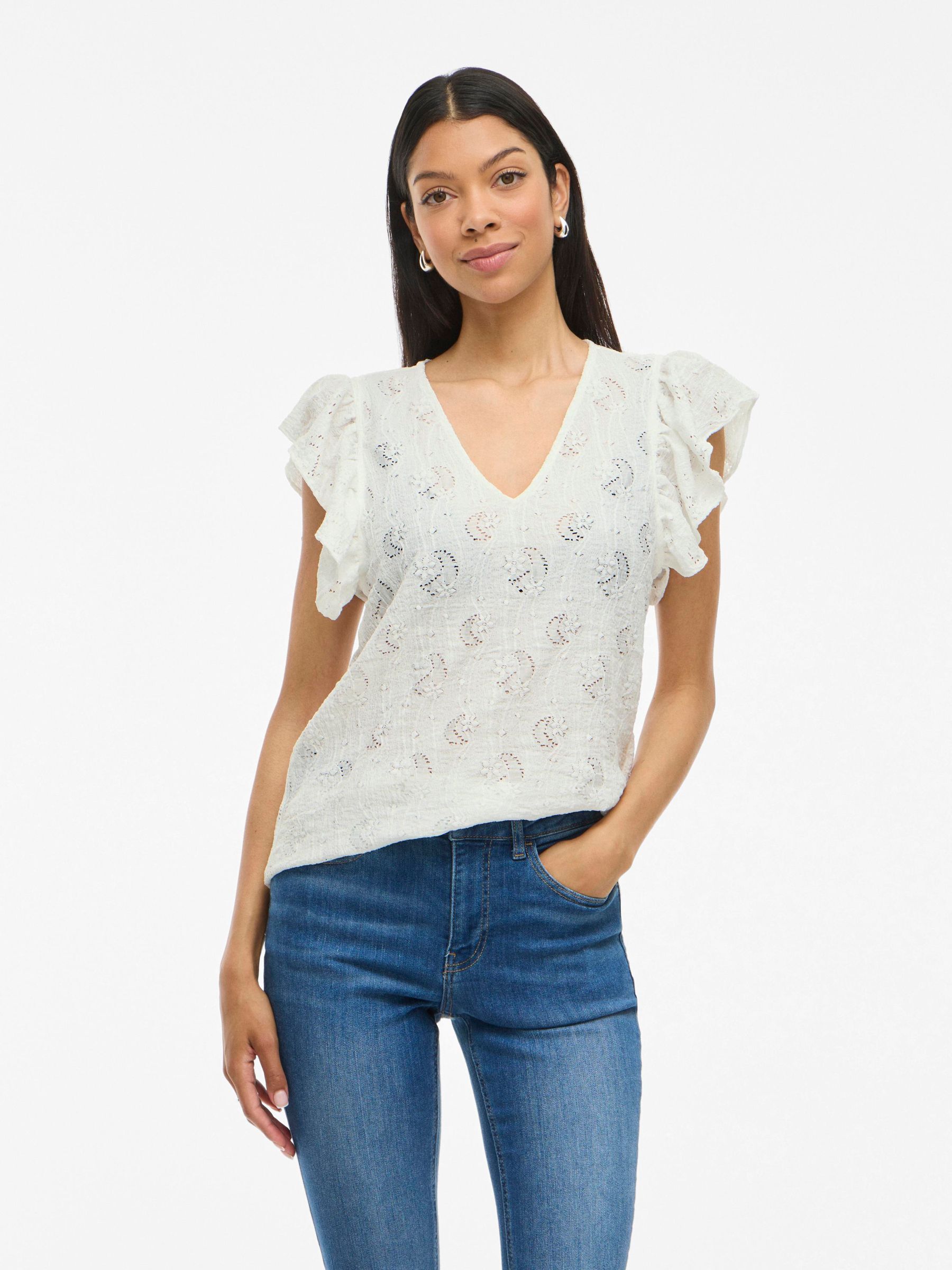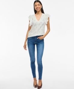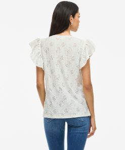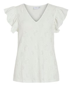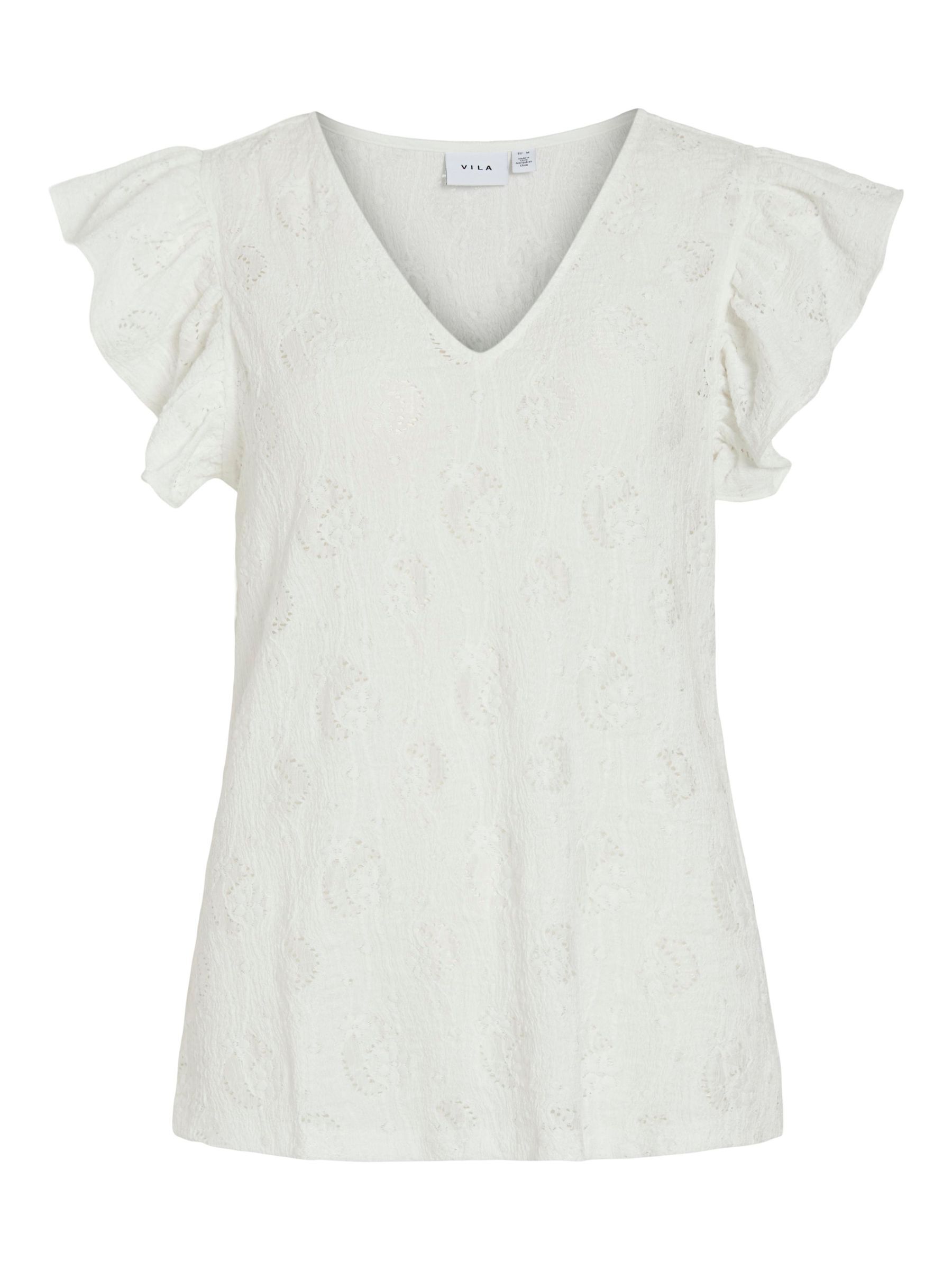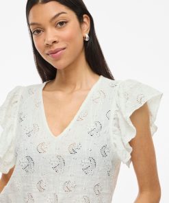 VILA Women’s Vikarla V-neck Cap Sleeve Top | Cloud Dancer