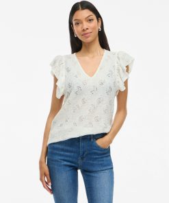 VILA Women’s Vikarla V-neck Cap Sleeve Top | Cloud Dancer