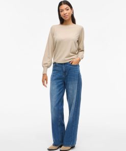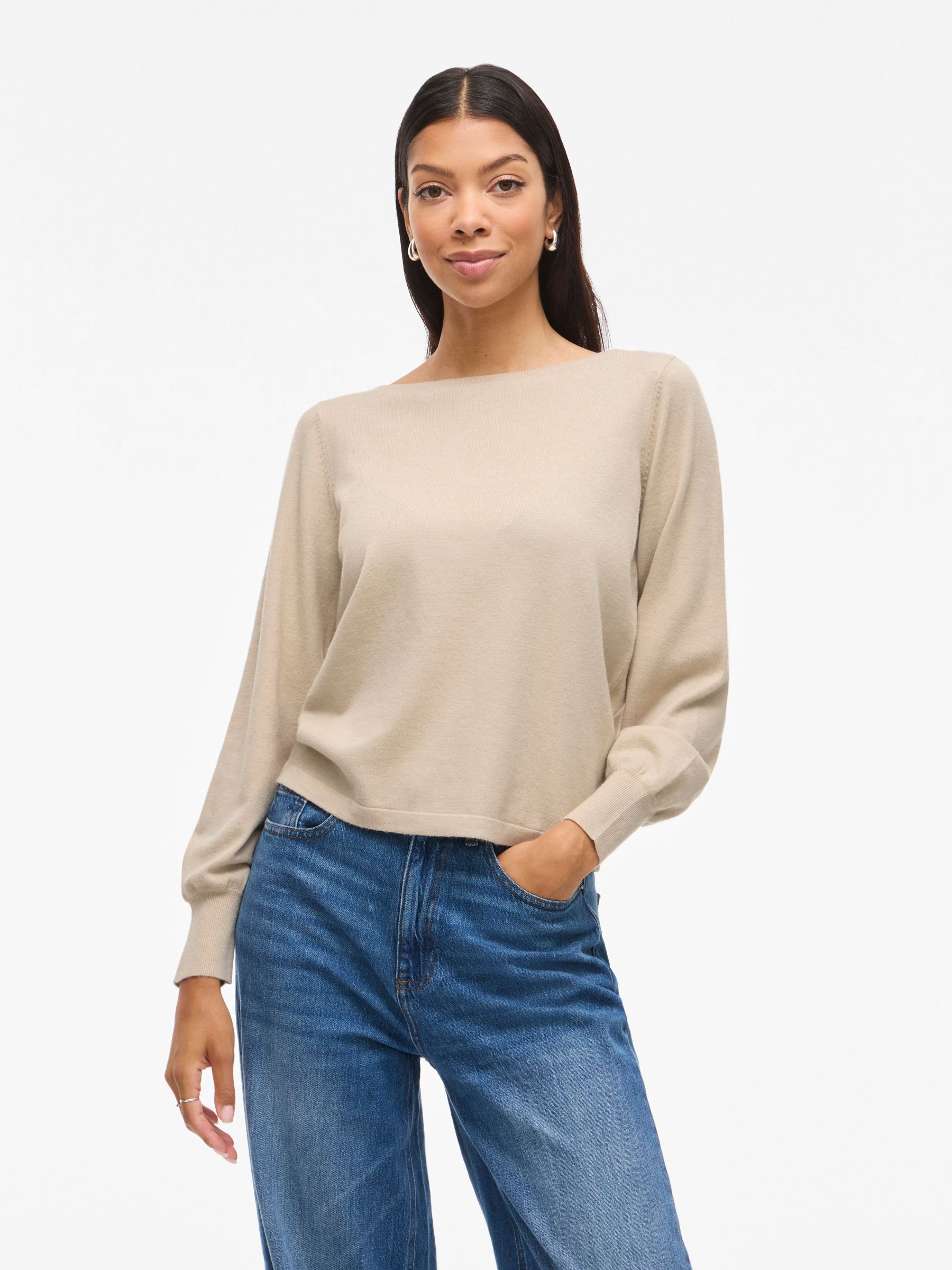VILA Women’s Vikerry Boatneck Knitted Pullover | Feather Gray