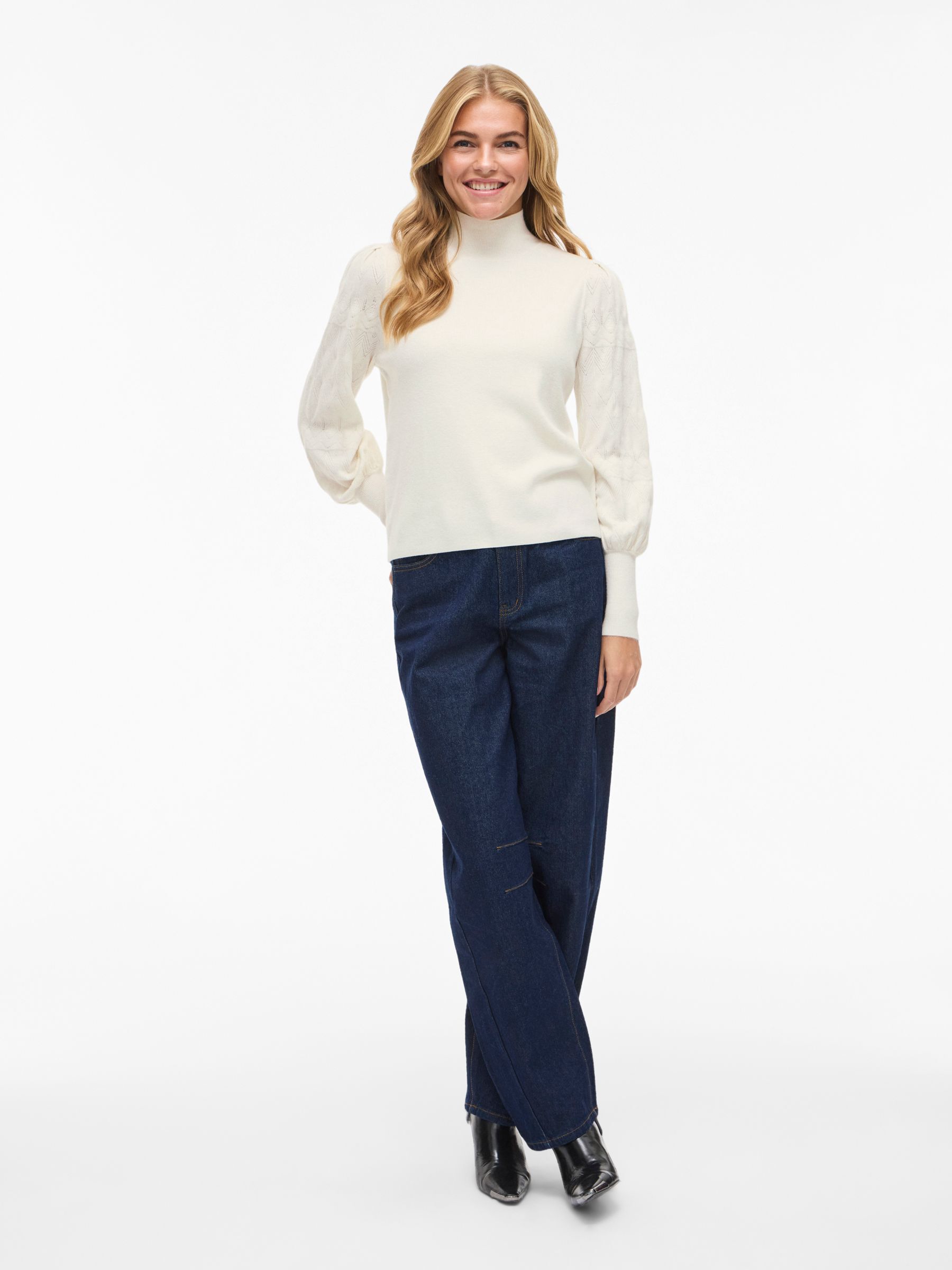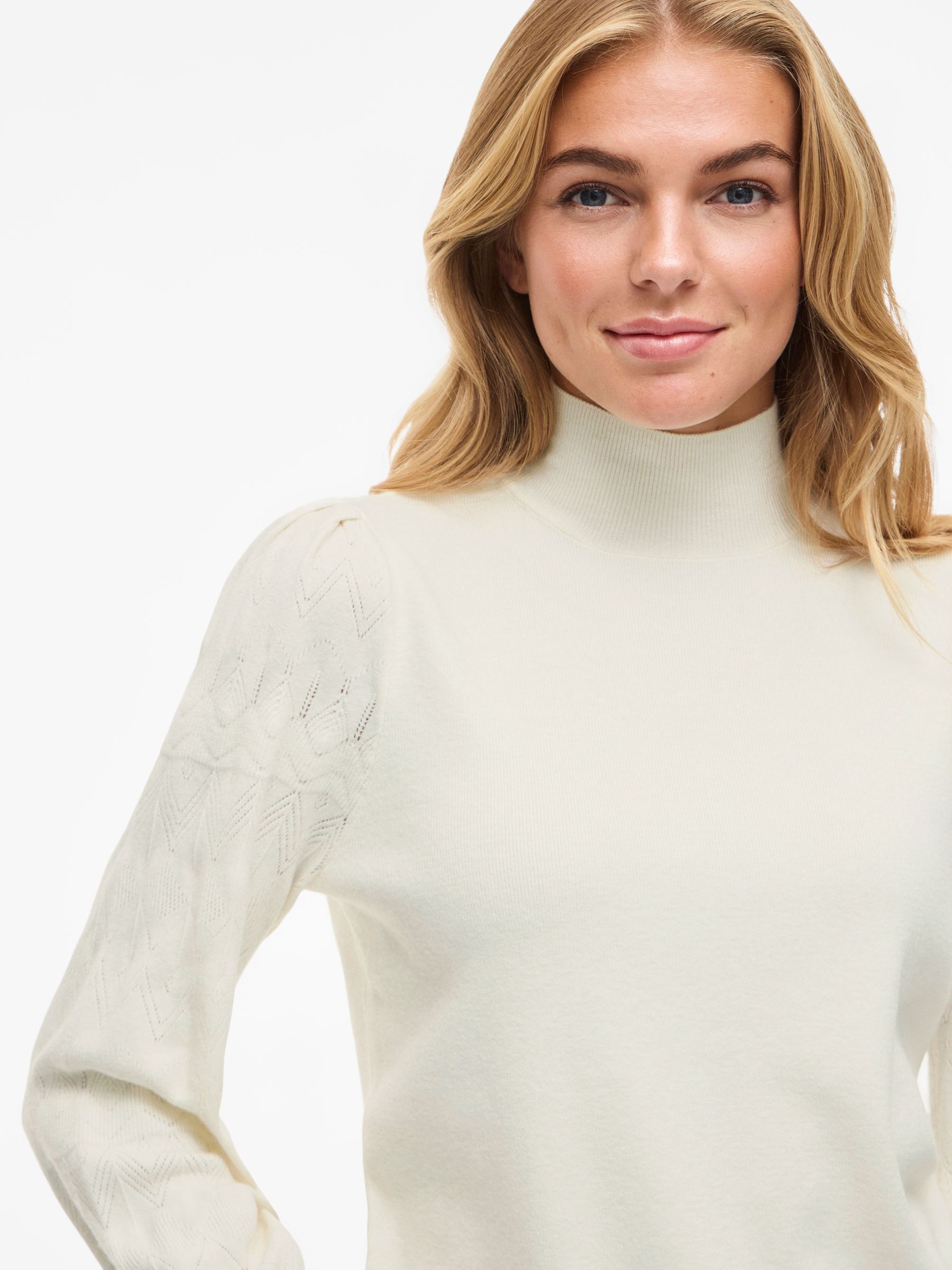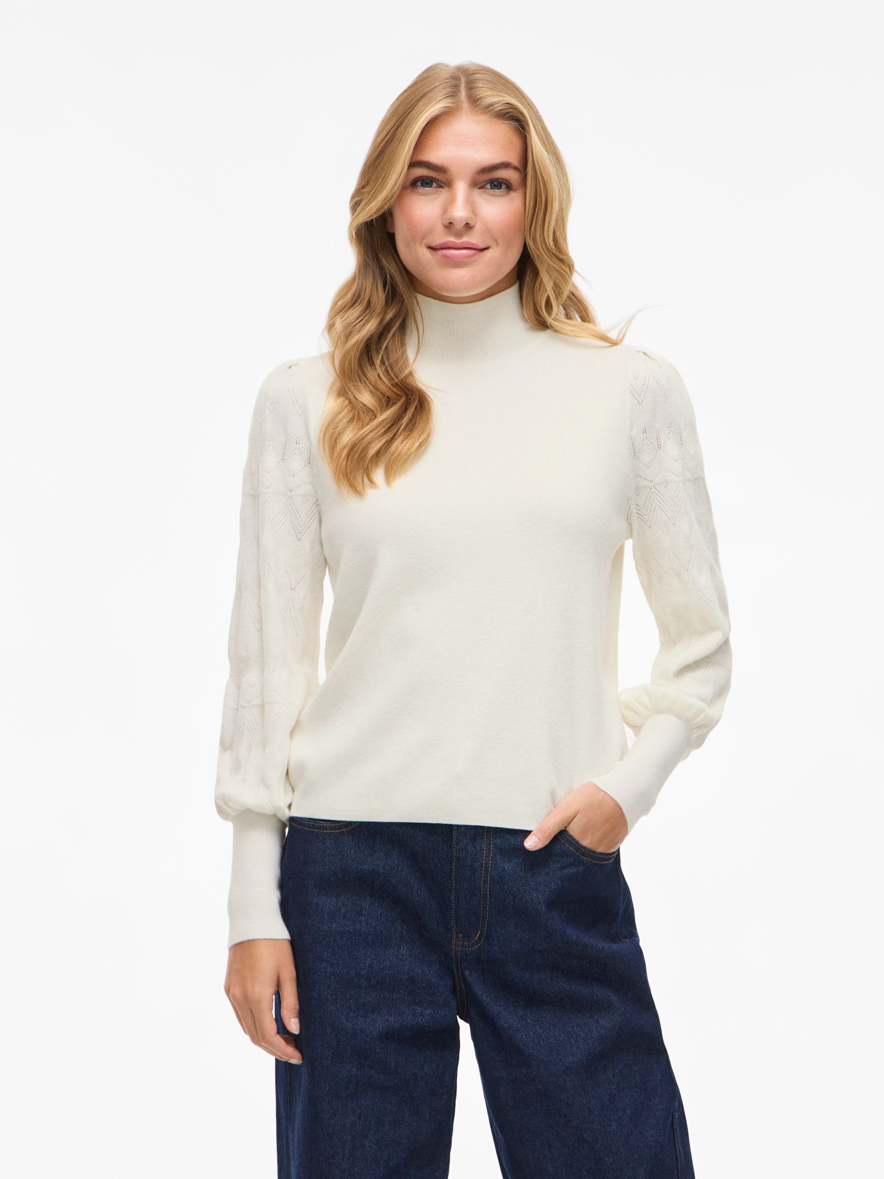 • Pointelle knitted pullover• High neck• Ribbed trims• Soft, stretchy knit• Regular fit• Length: 57 cm in size M• Sleeve length: 62 cm in size M