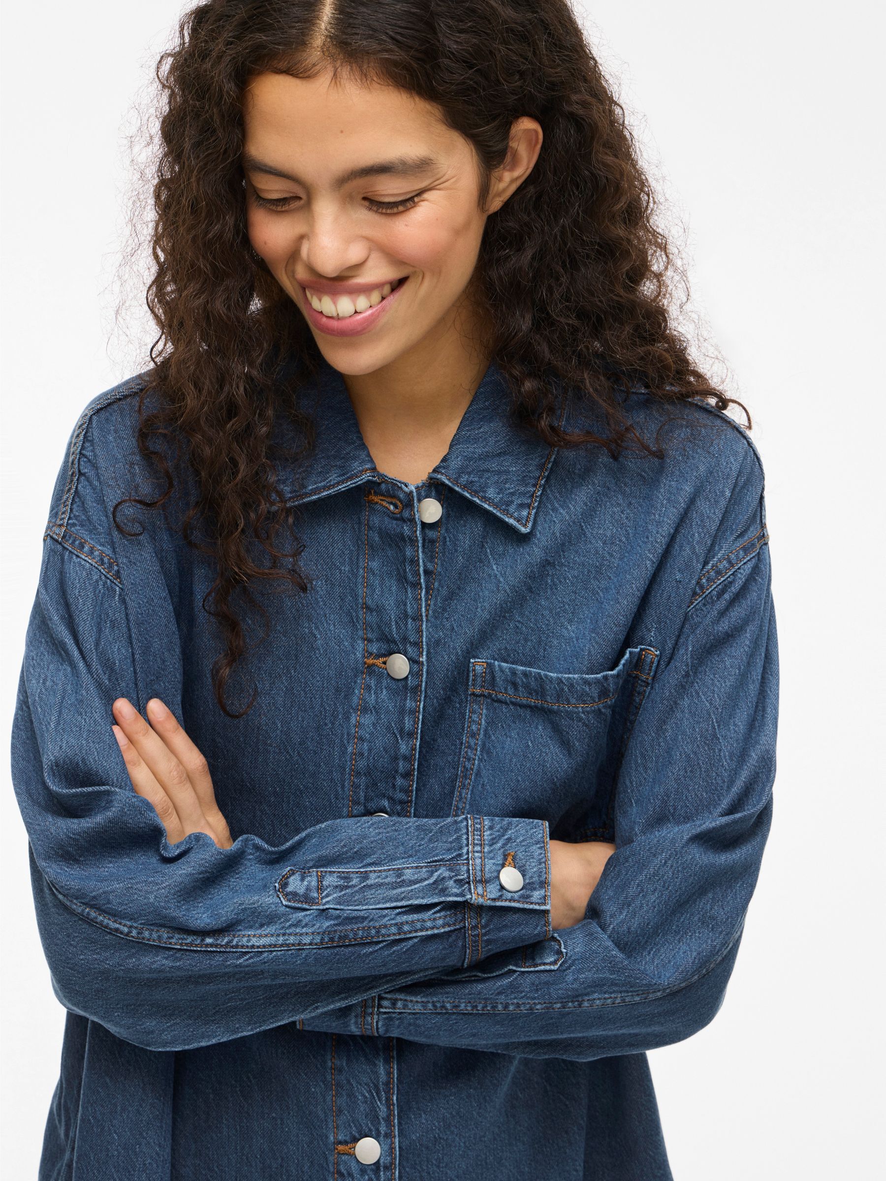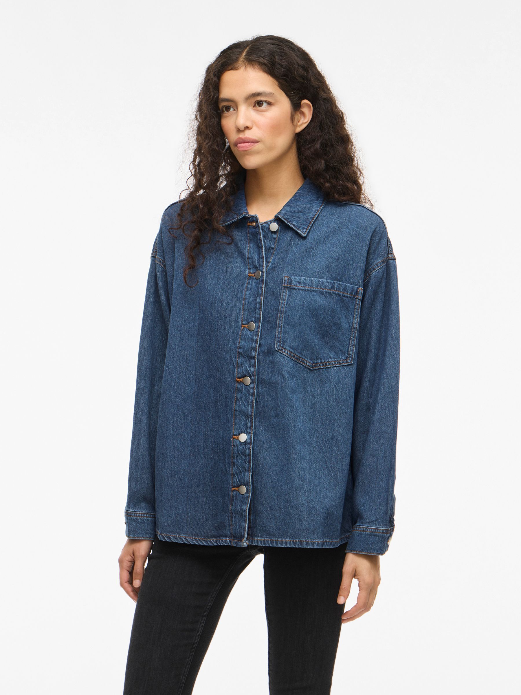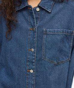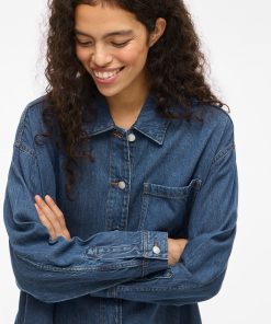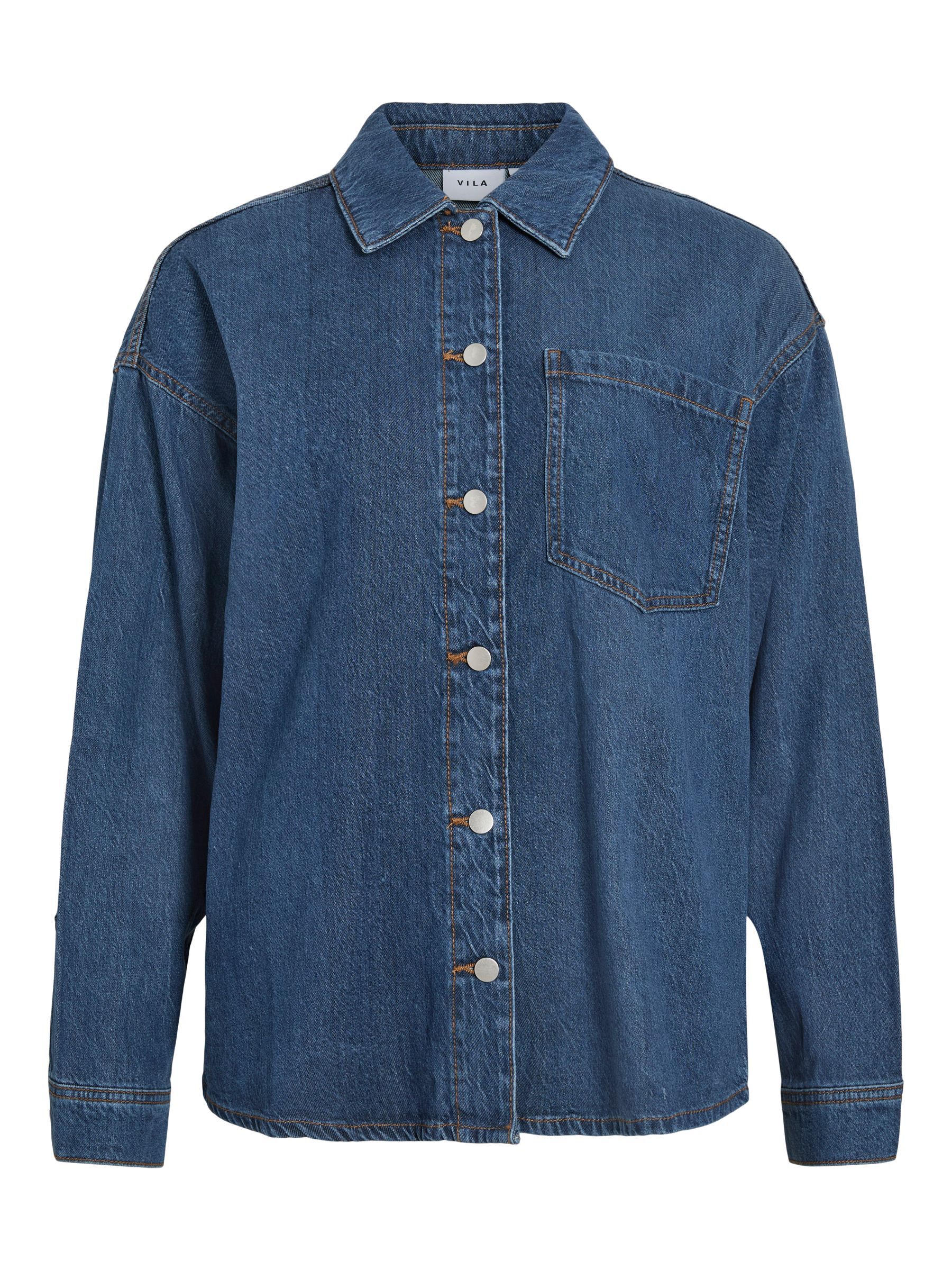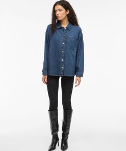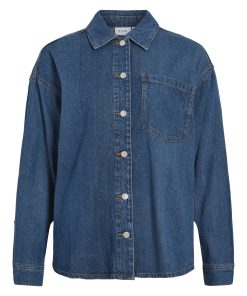 VILA Women’s Vikiki Denim Shirt | Medium Blue Denim