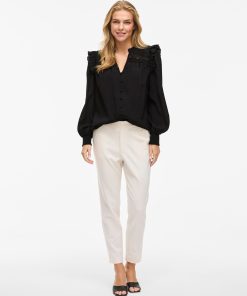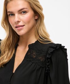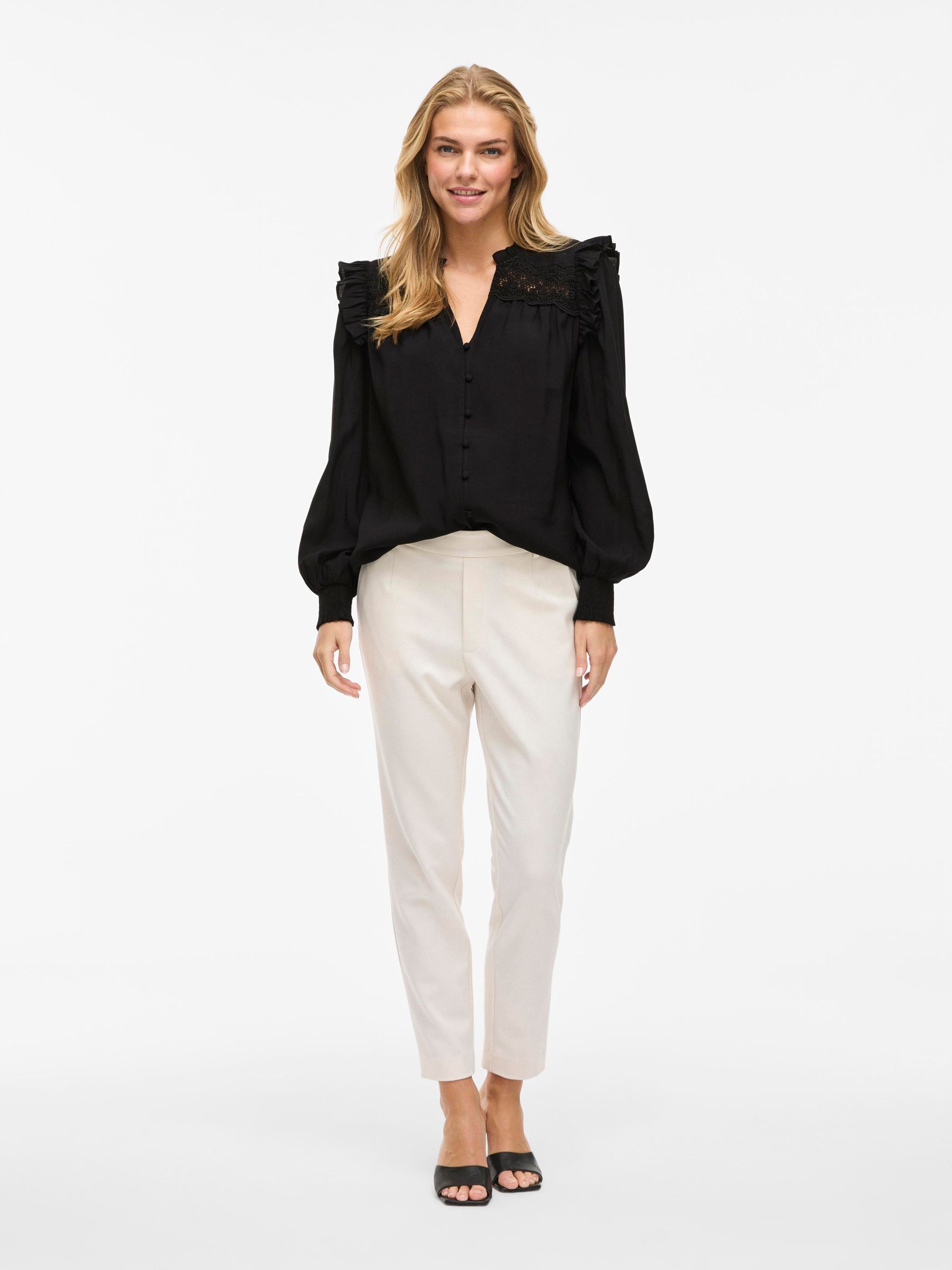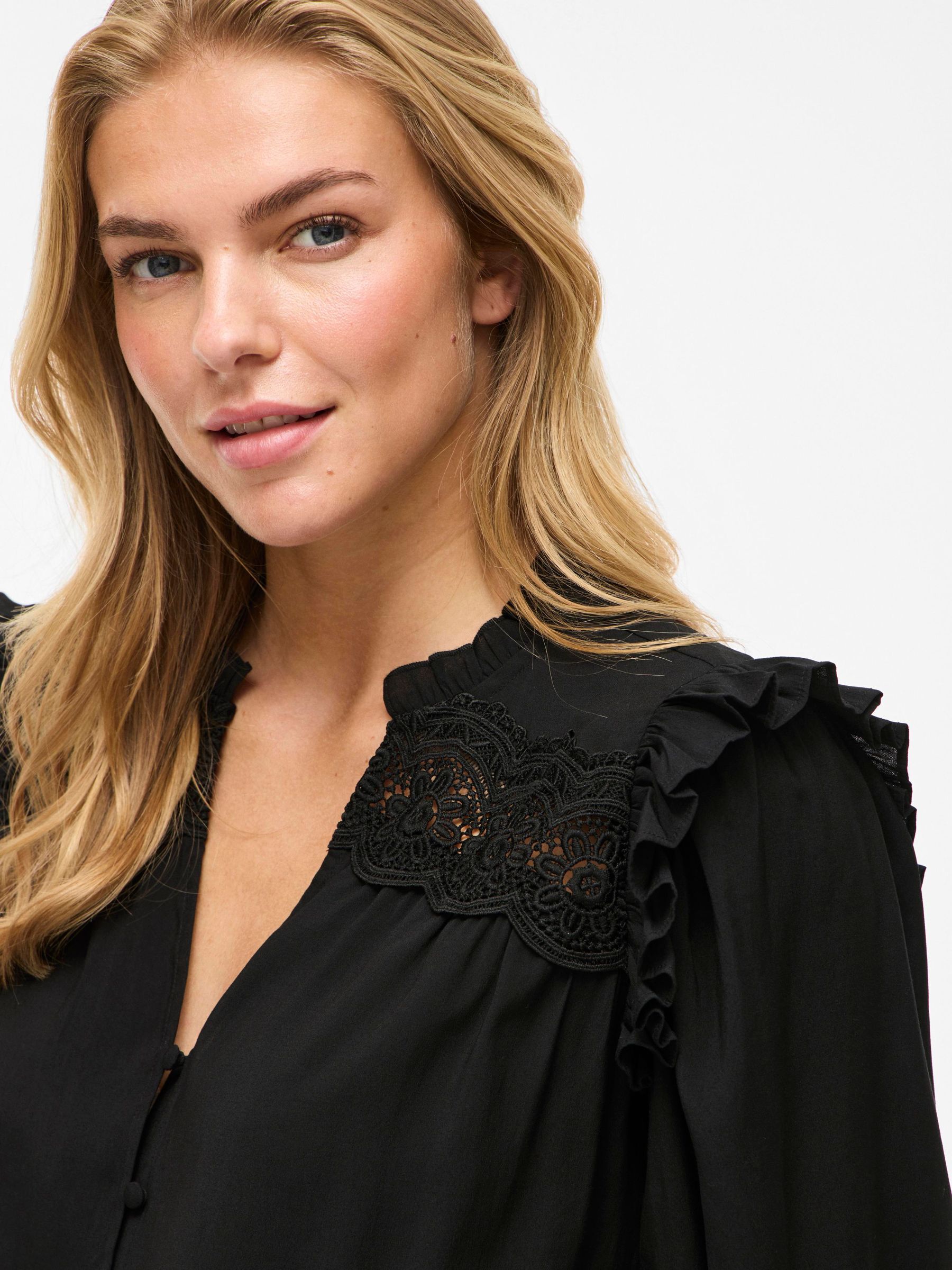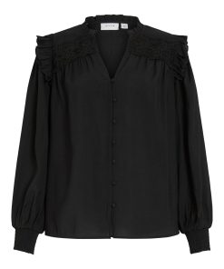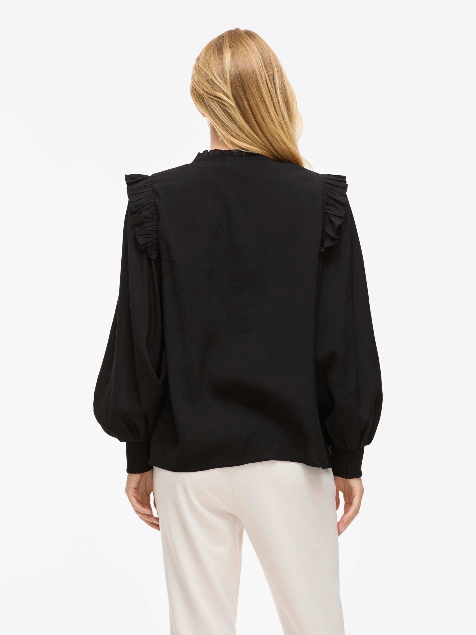 • Long sleeved shirt with ruffle details• Split neck• Front button fastening• Light, non-stretchable fabric• Regular fit• Length: 68 cm in size 38• Sleeve length: 10 cm in size 38