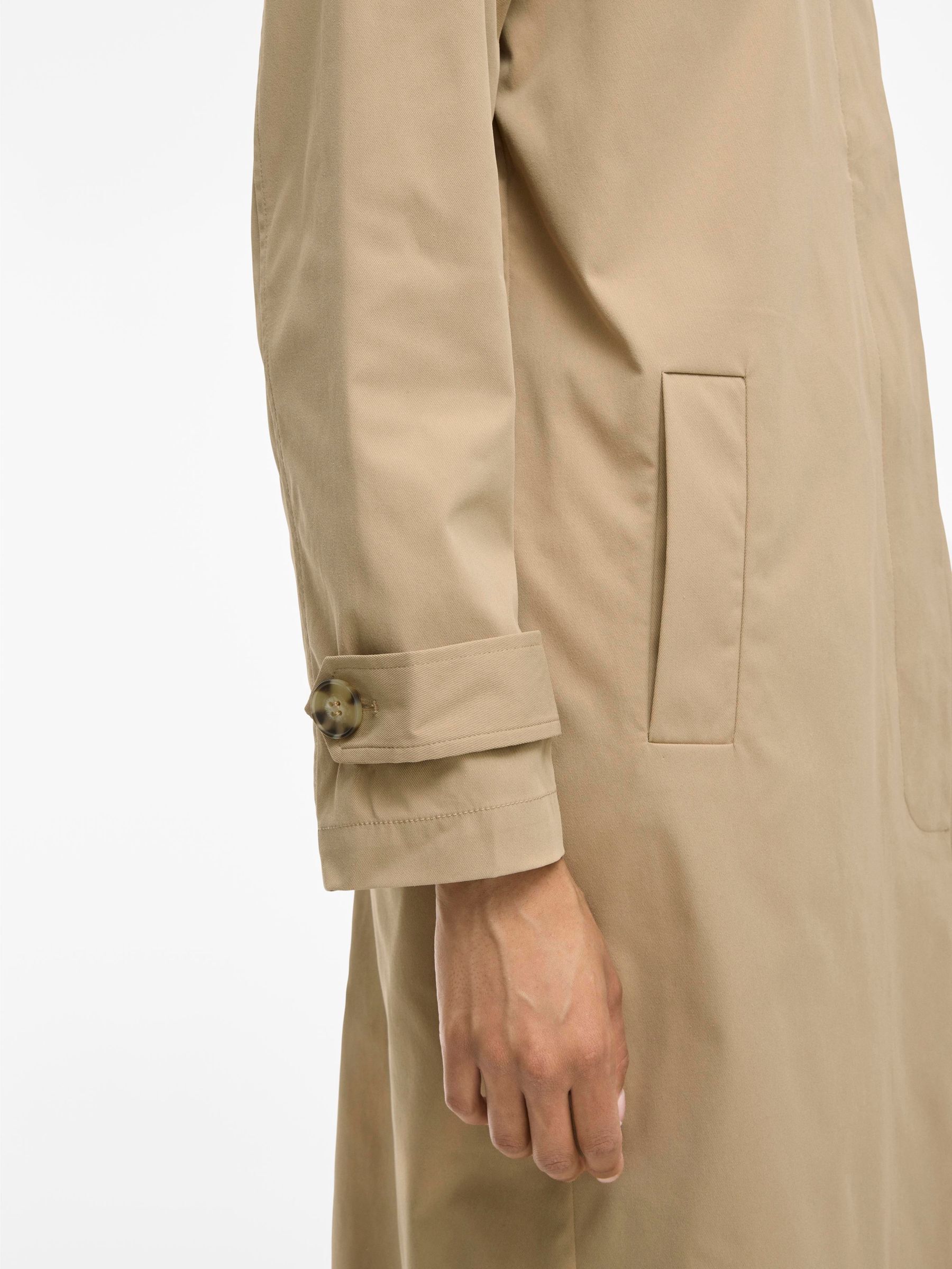 • Classic trenchcoat• Hidden front button fastening• Back slit detail• Belt detail on the sleeves• Side pockets• Regular fit• Length: 114 cm in size 38• Sleeve length: 58 cm in size 38