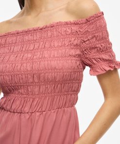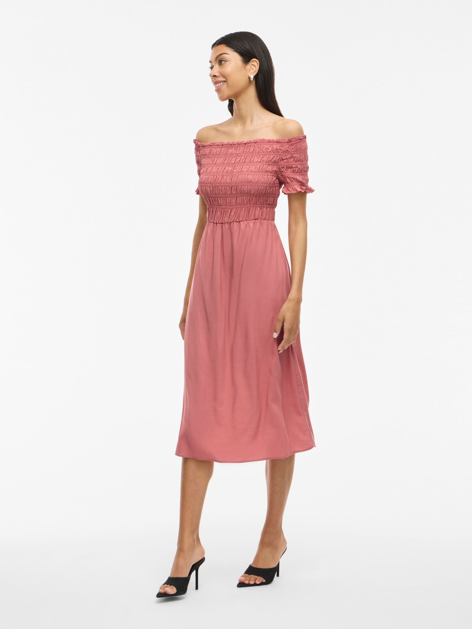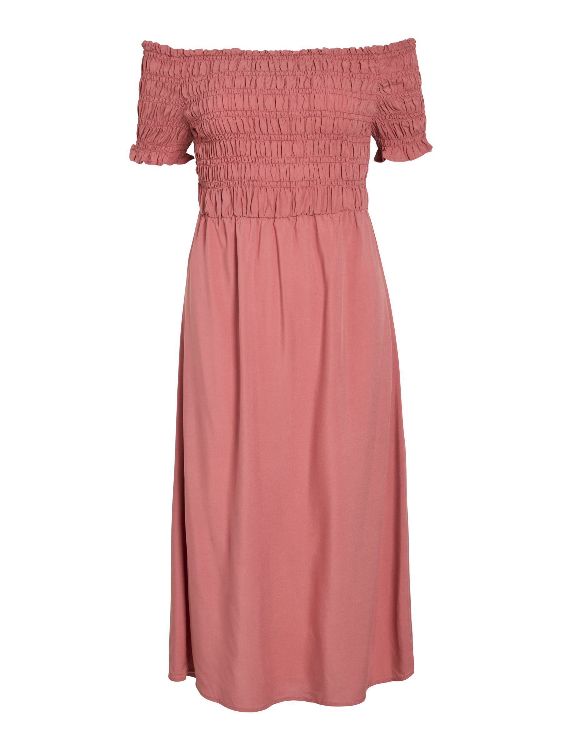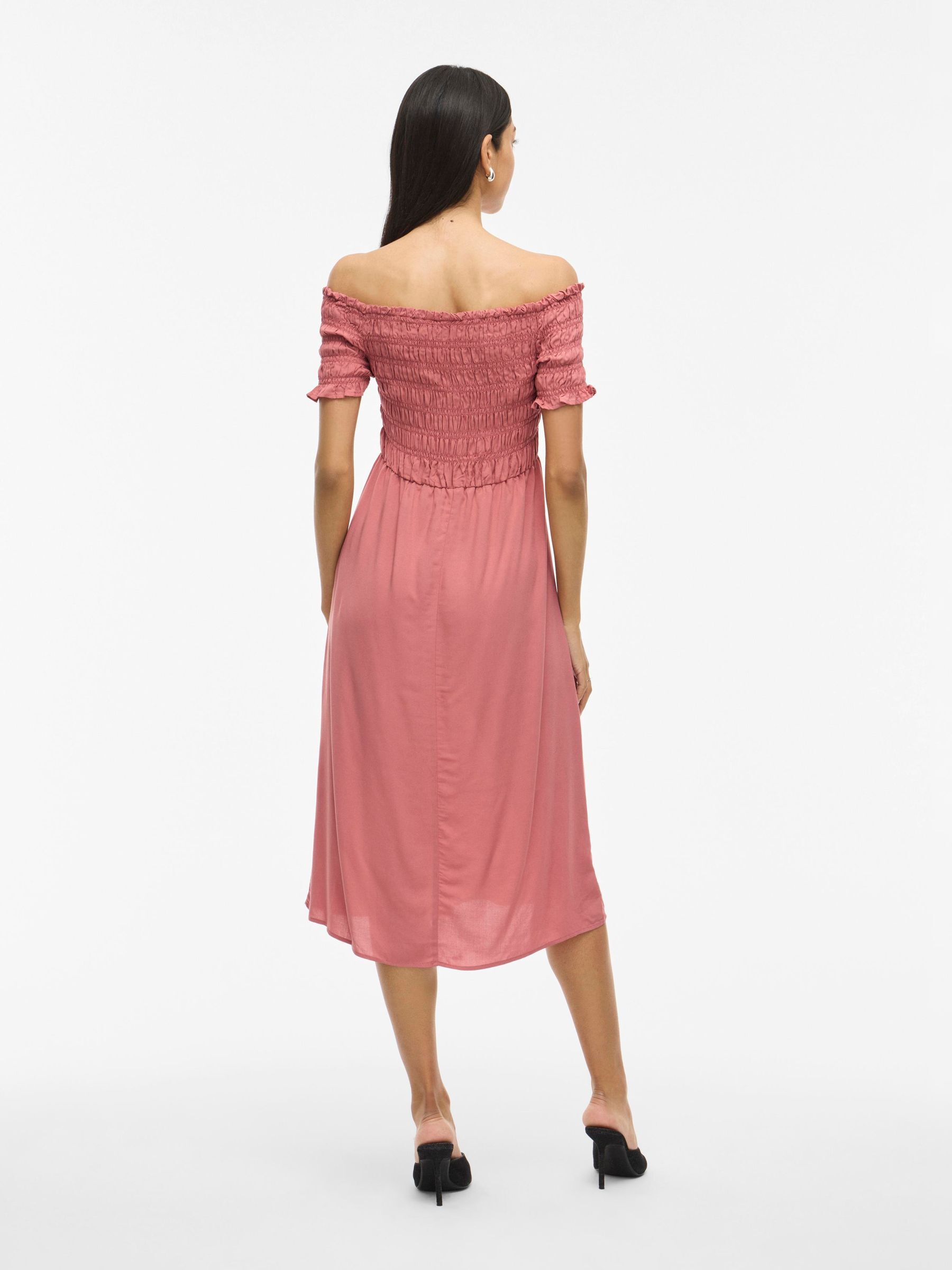 • Midi smock dress• Off-shoulder• Short sleeves• Light, non-stretchable fabric• Regular fit• Length: 106 cm in size 38• Sleeve length: 20 cm in size 38