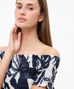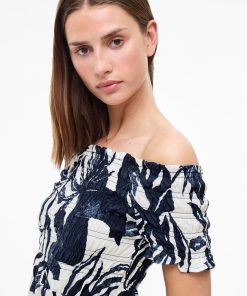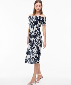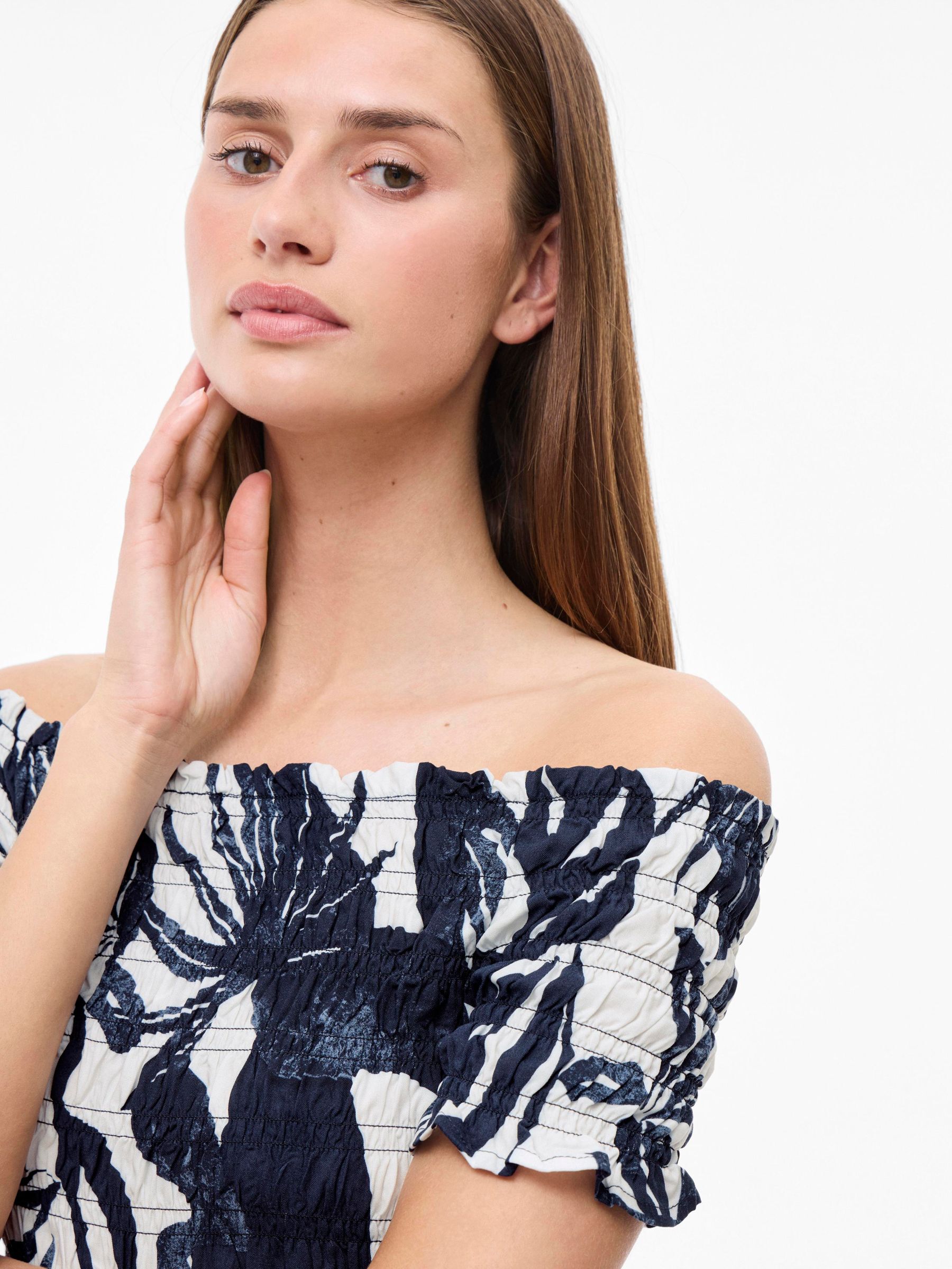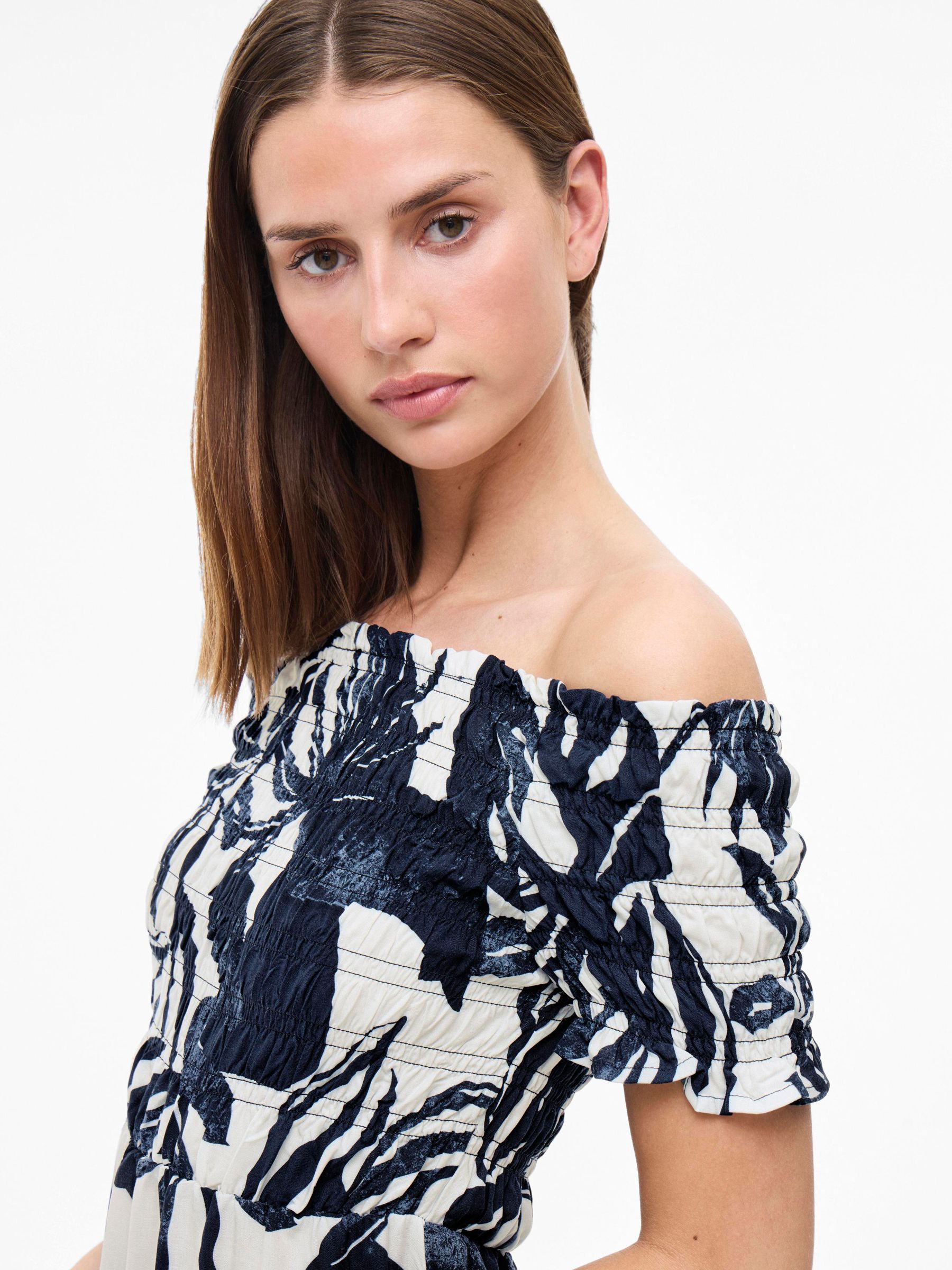 • Midi smock dress• Off-shoulder• Short sleeves• Light, non-stretchable fabric• Regular fit• Length: 106 cm in size 38• Sleeve length: 20 cm in size 38