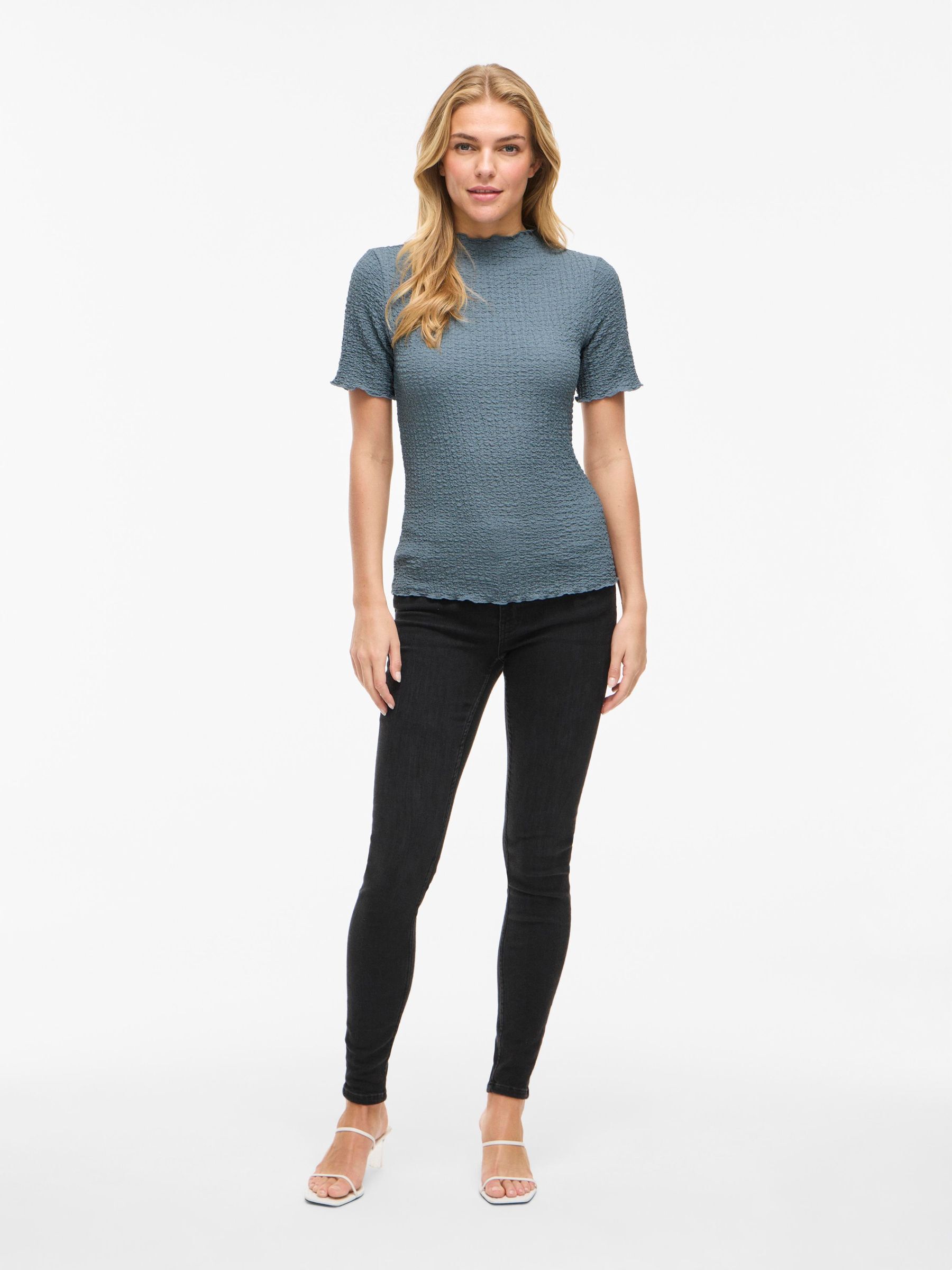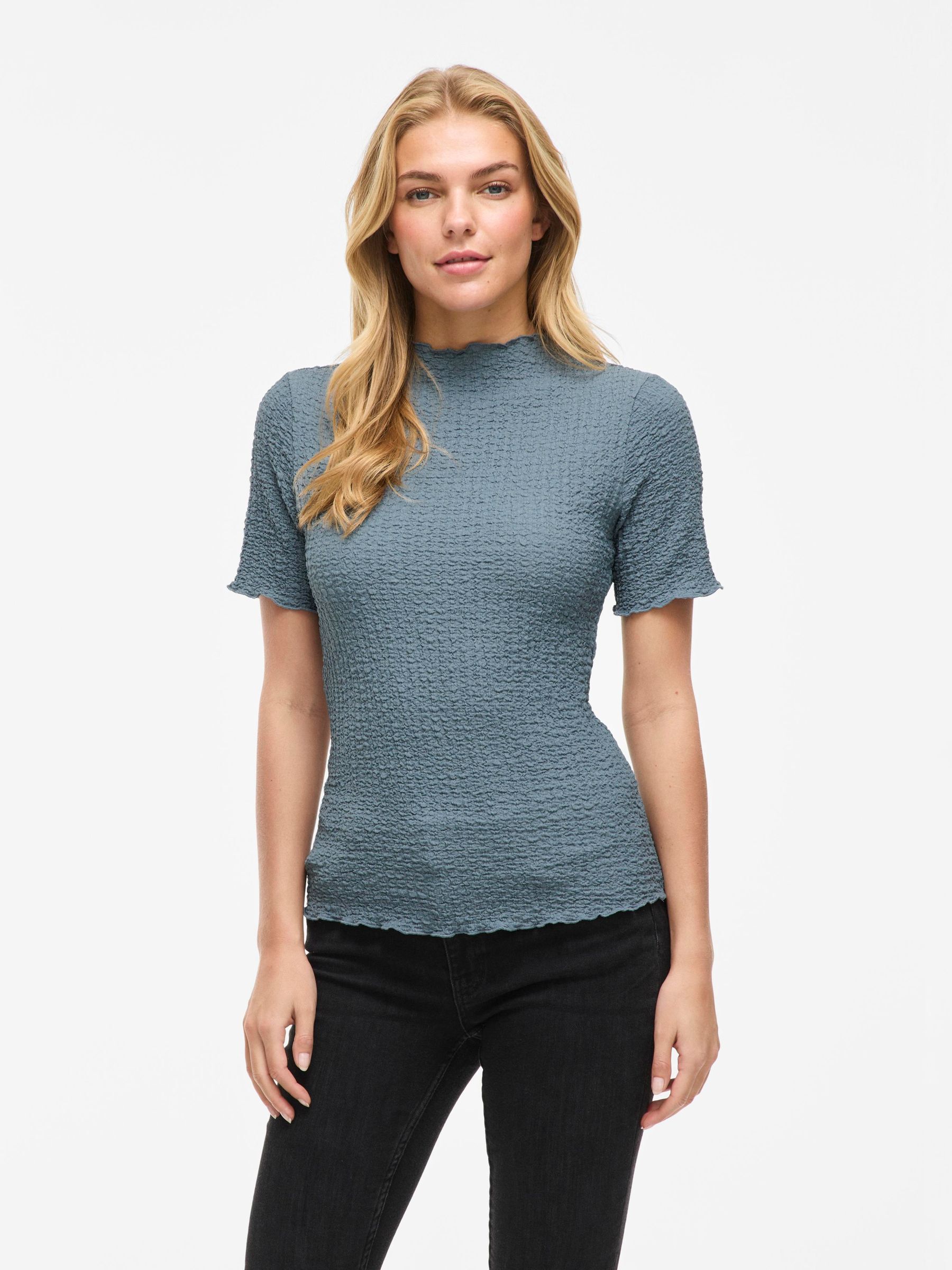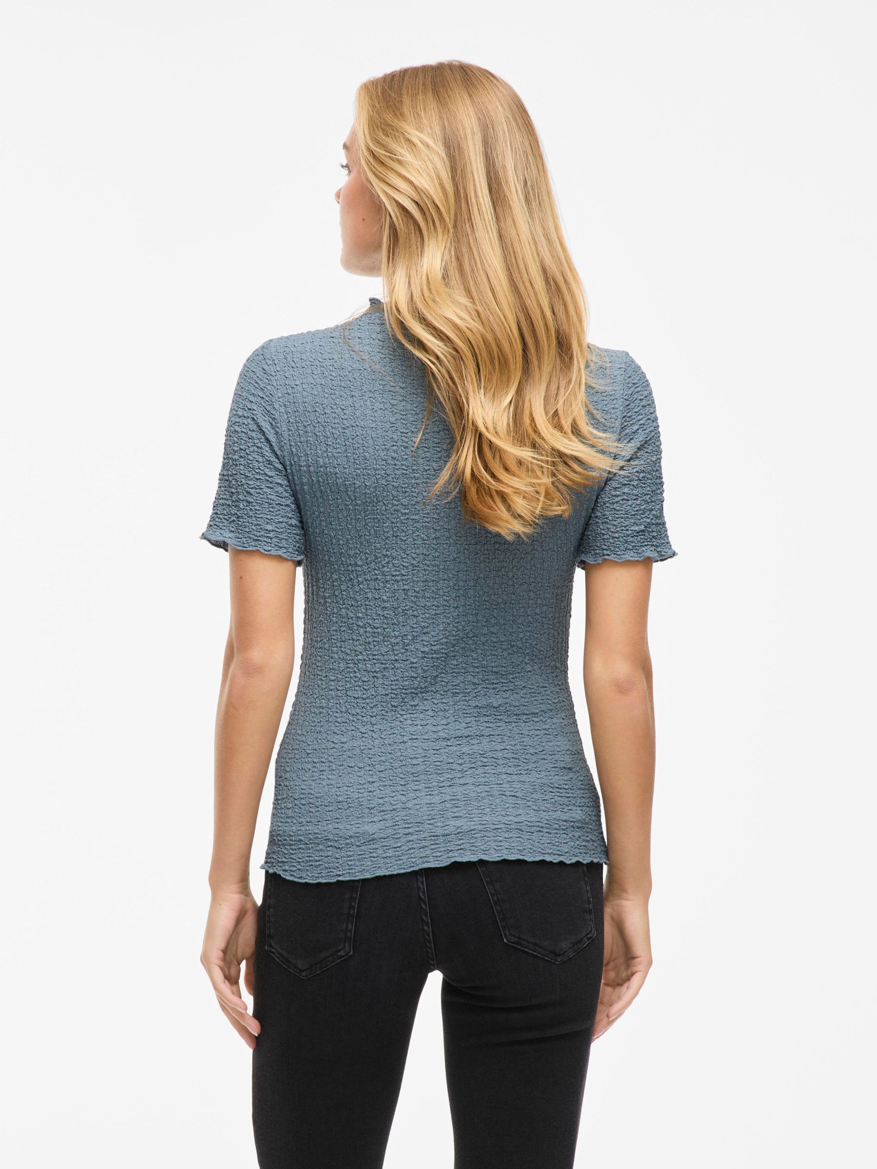 • Short sleeved top• High neck• Textured fabric• Lettuce trim• Regular fit• Length: 60 cm in size 38• Sleeve length: 24 cm in size 38