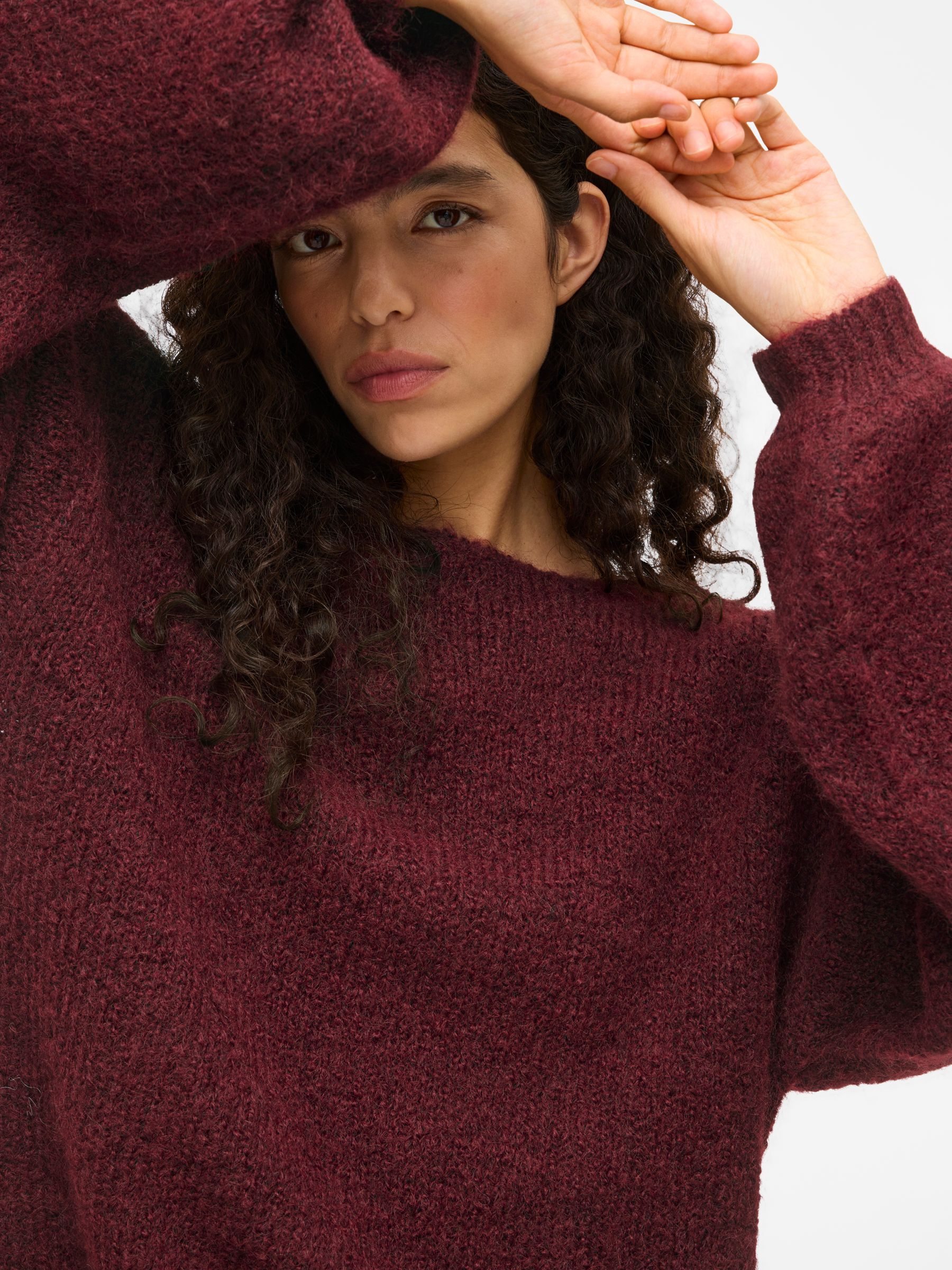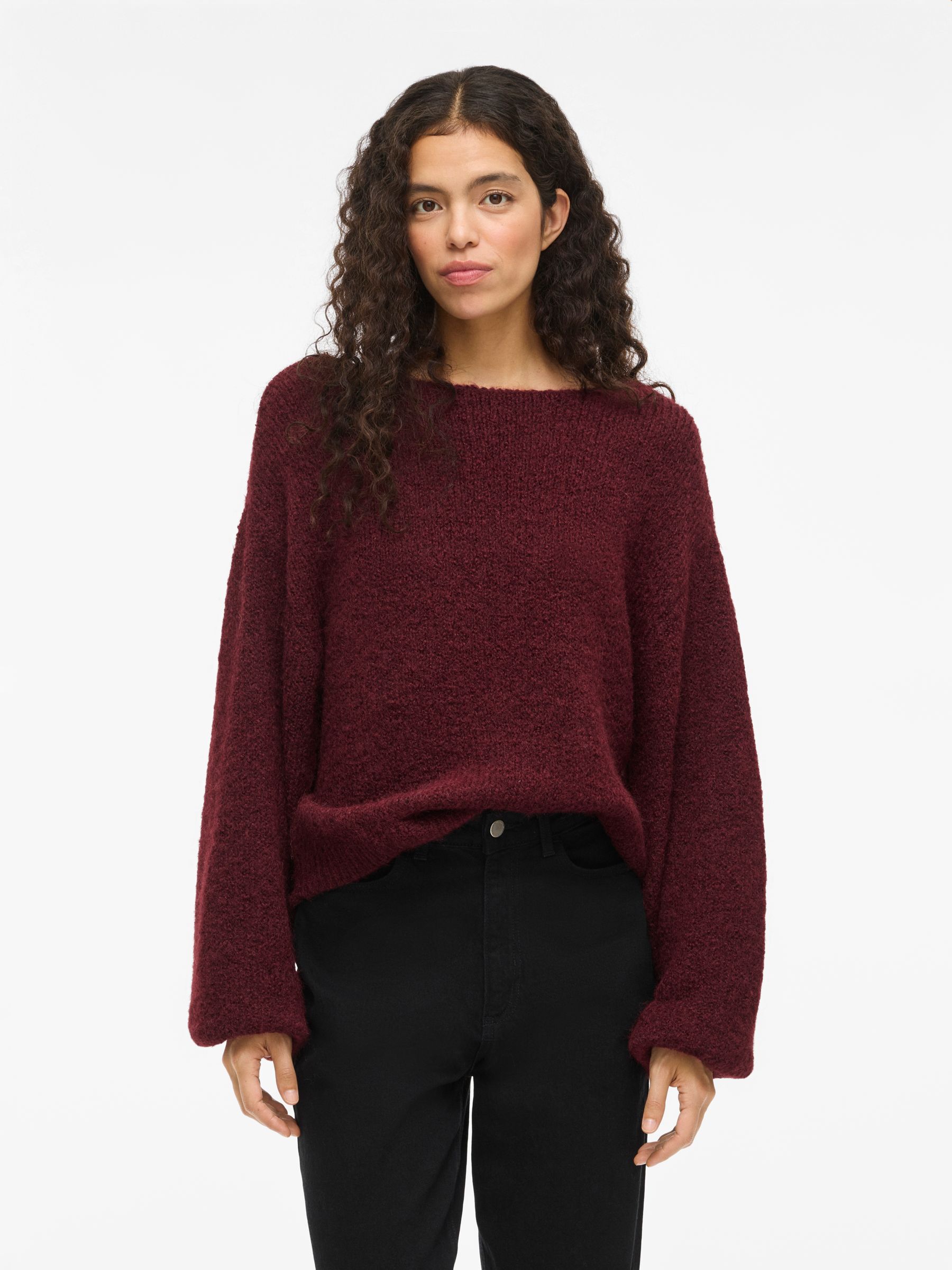 • Comfy knitted jumper• Boatneck• Dropped shoulders• Long, voluminous sleeves• Stretchy knit• Regular fit• Length: 56 cm in size M• Sleeve length: 78 cm in size M