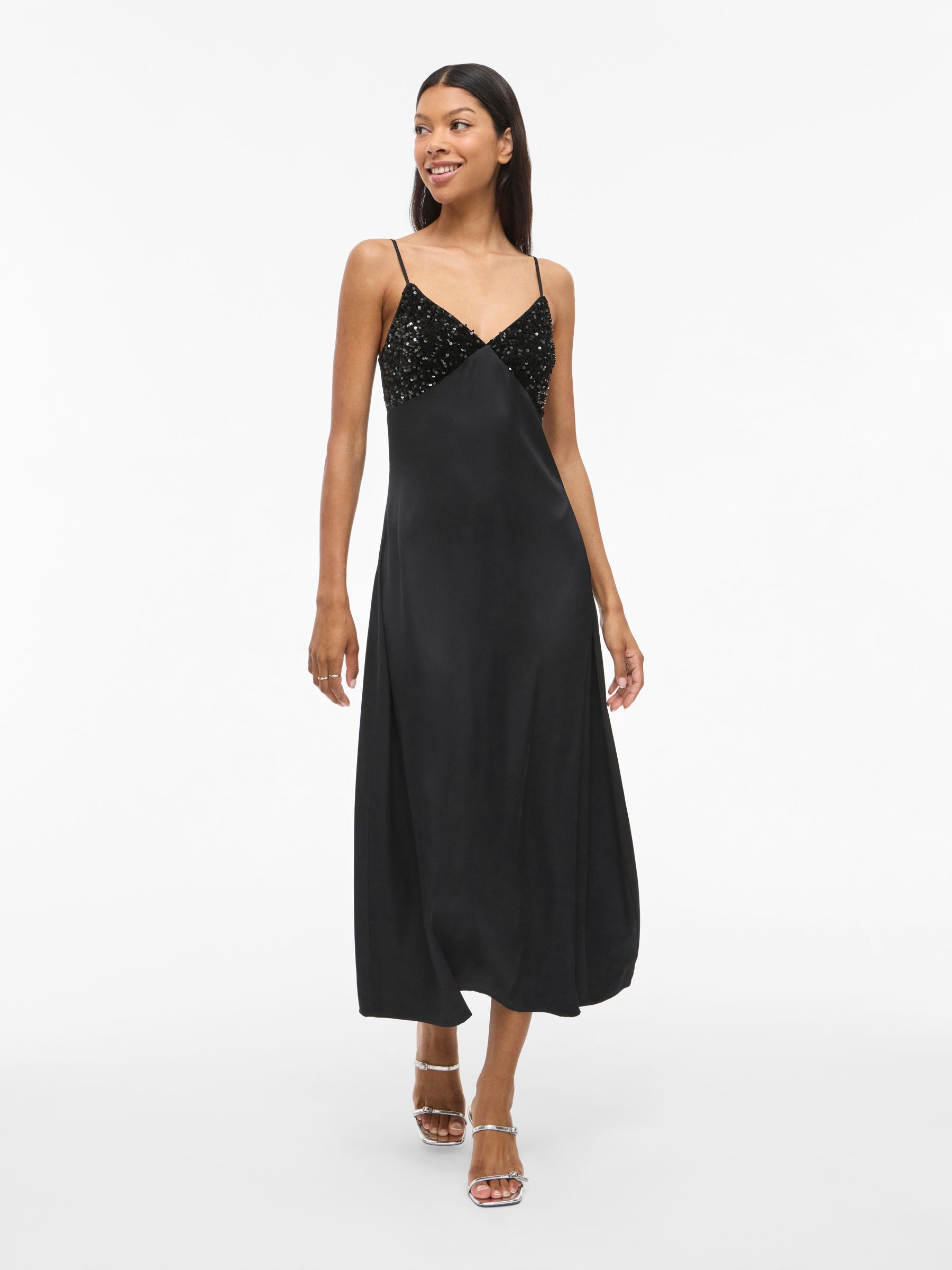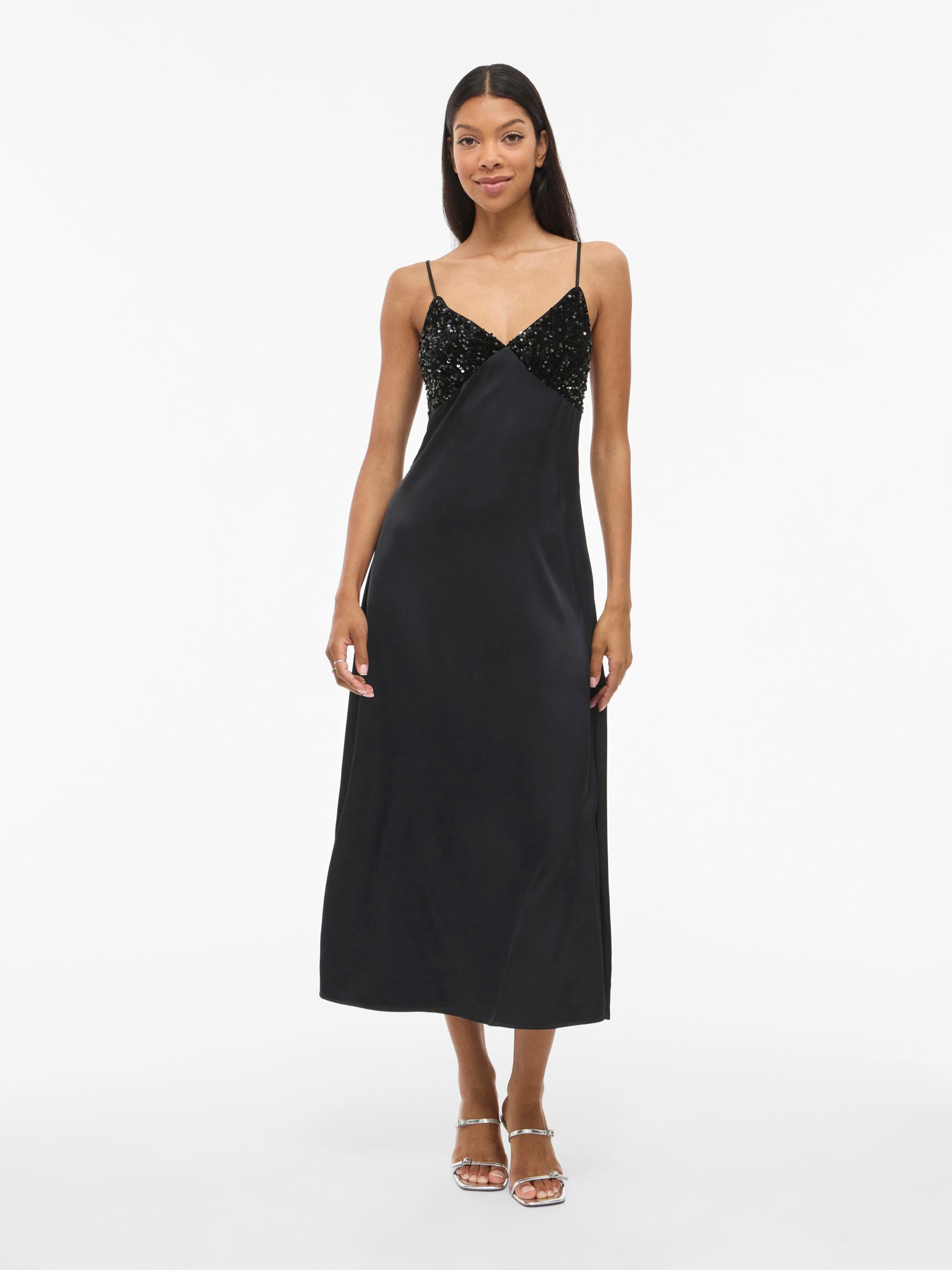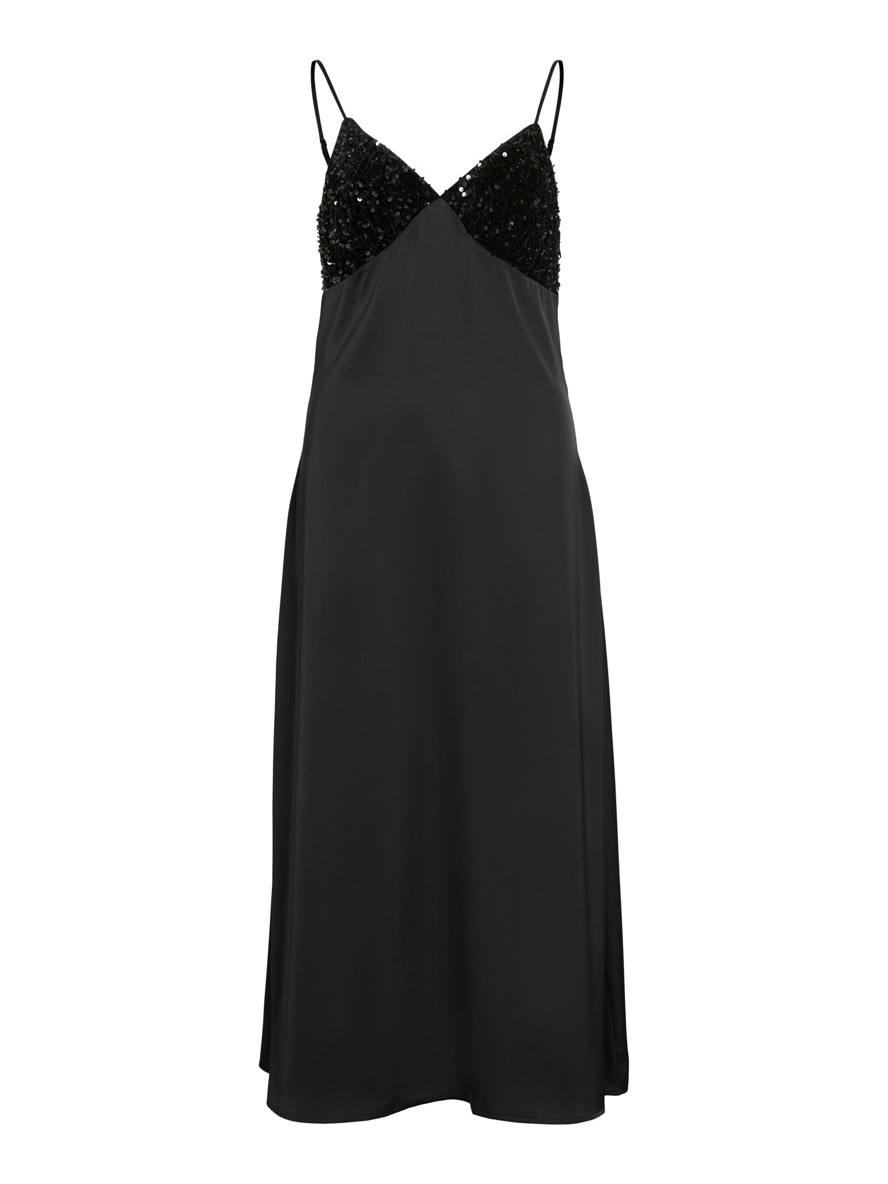 • Sequin party dress• Midi-length• V-neck• Concealed side zip fastening• Adjustable straps• Elegant shiny fabric• Regular fit• Length: 130 cm in size 38