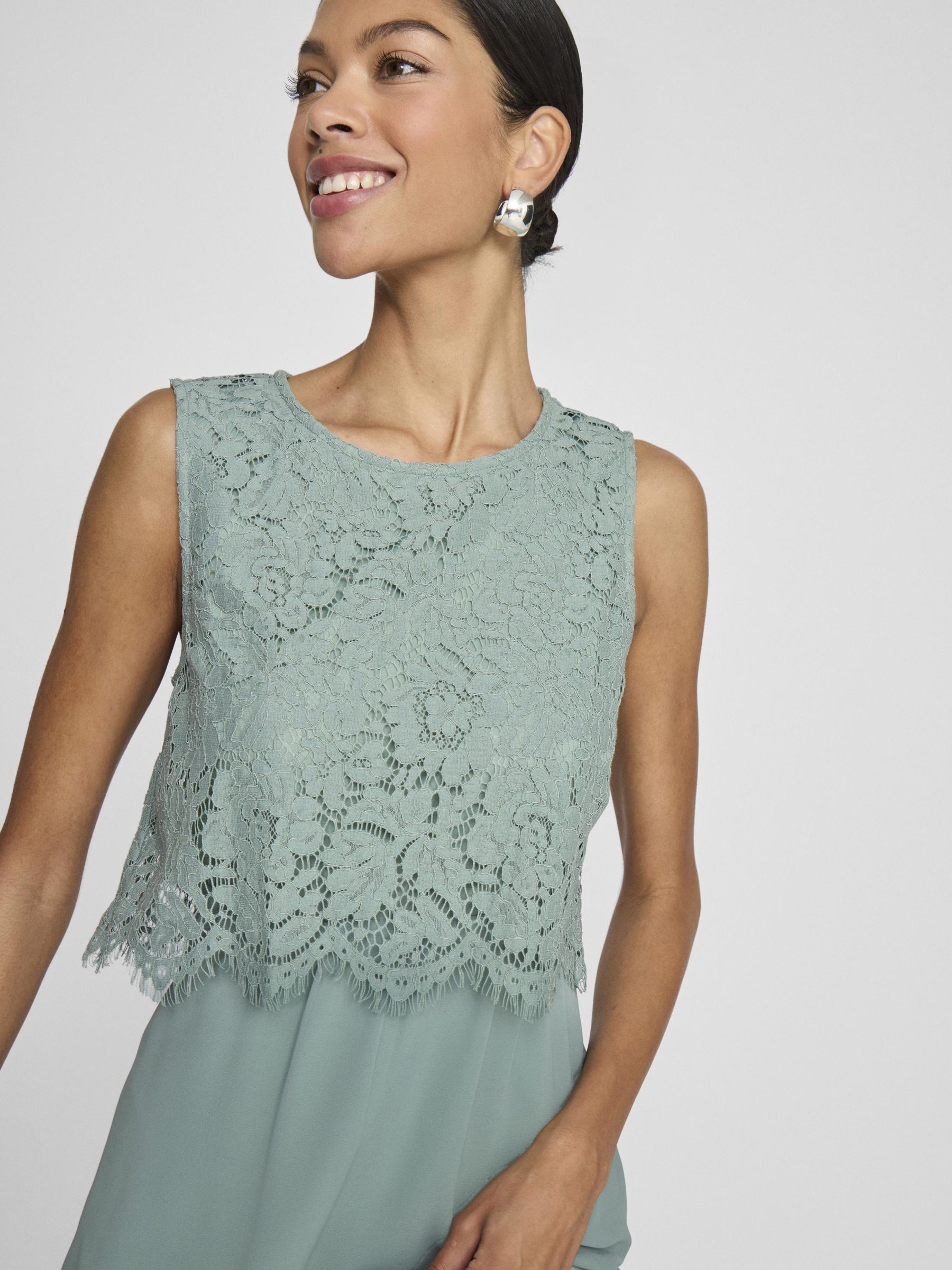 • Sleeveless maxi dress• Lace detail• Round neck with button-keyhole fastening• Elastic cutline at waist• Regular fit• Length: 141 cm in size 38
