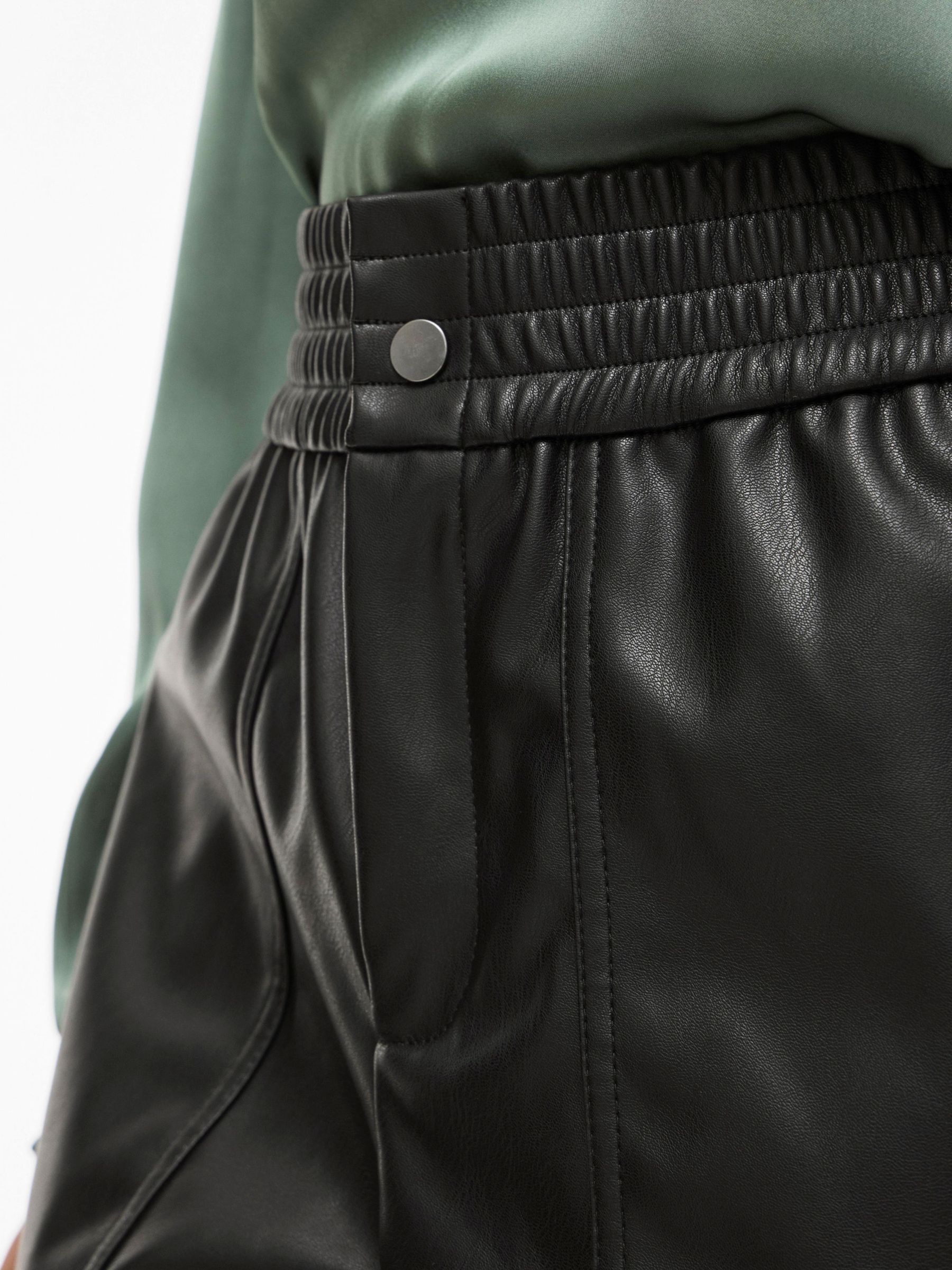 • Coated shorts• High waist• Zip and button fastening• Elastic waistband• Side pockets• Regular fit• Inseam: 15.5 cm in size 38