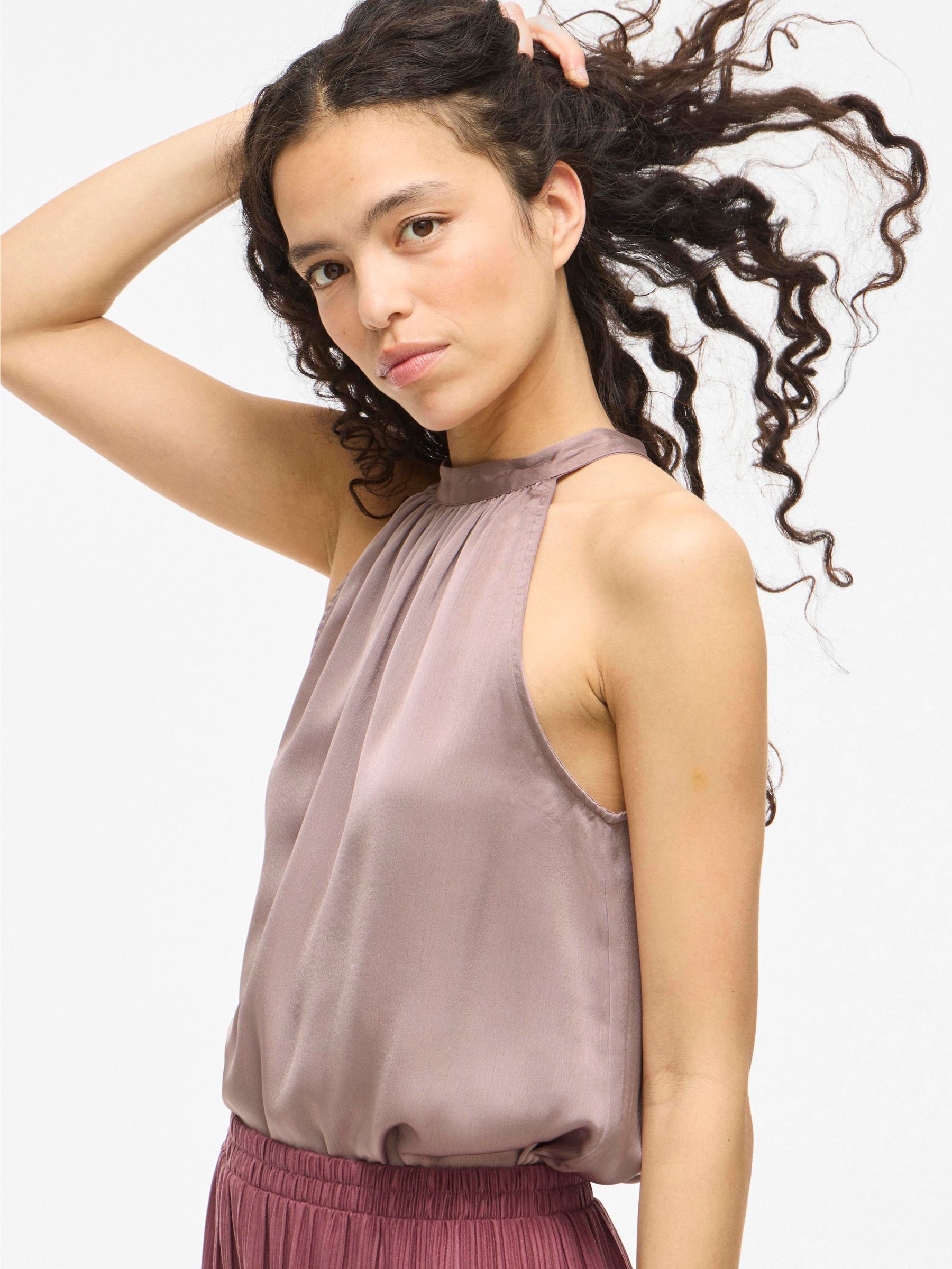 • Halter neck party top• Sleeveless• Elegant shiny fabric• Regular fit• Length: 64 cm in size 38