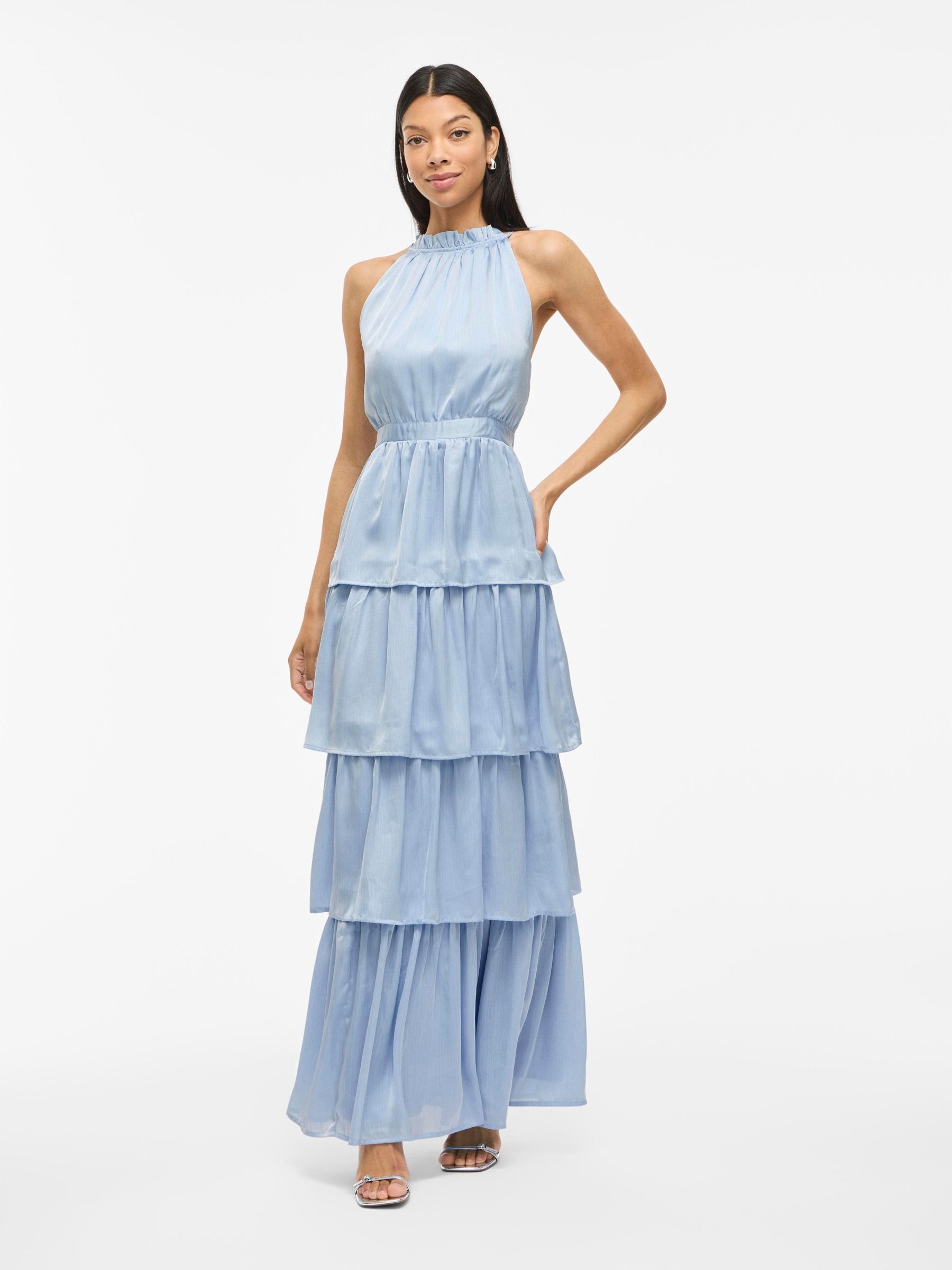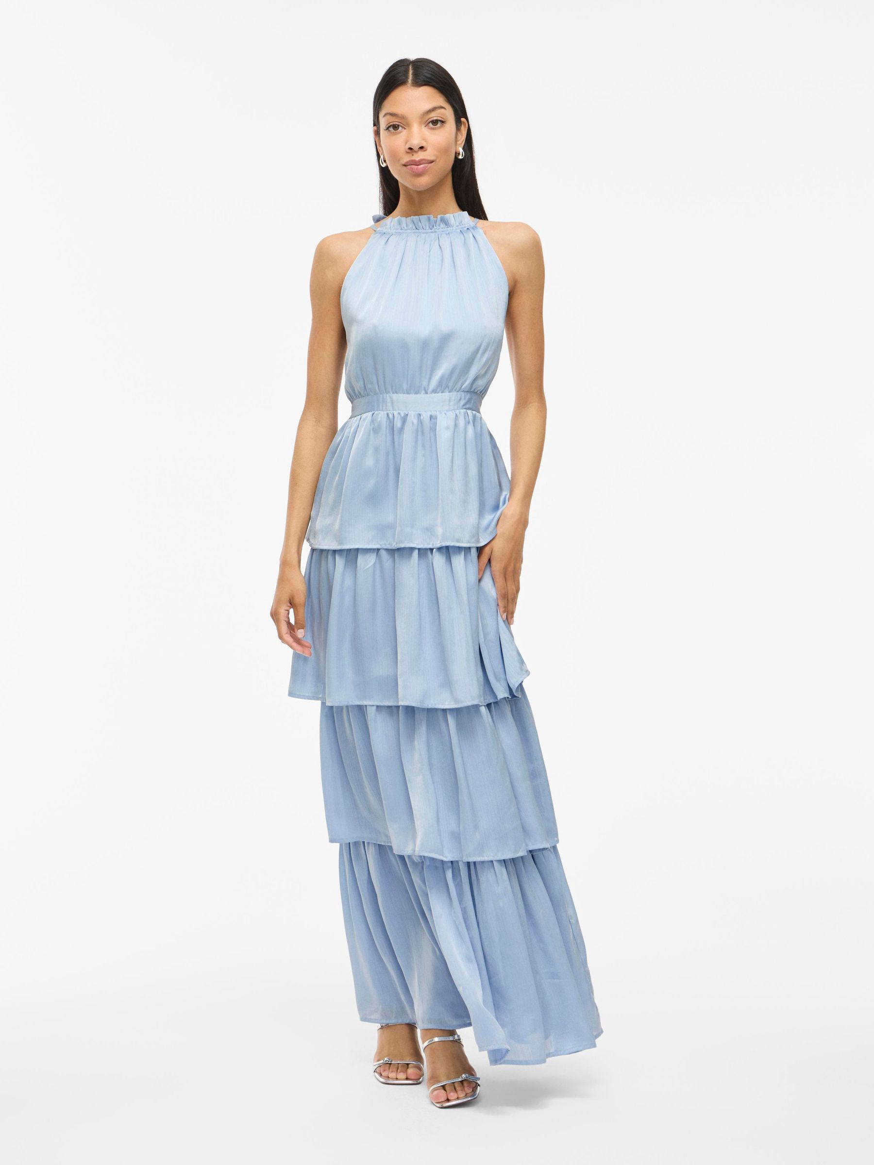 • Maxi dress with halter neck• Elastic cutline at waist• Tiered design• Elegant shiny fabric• Regular fit• Length: 150 cm in size 38